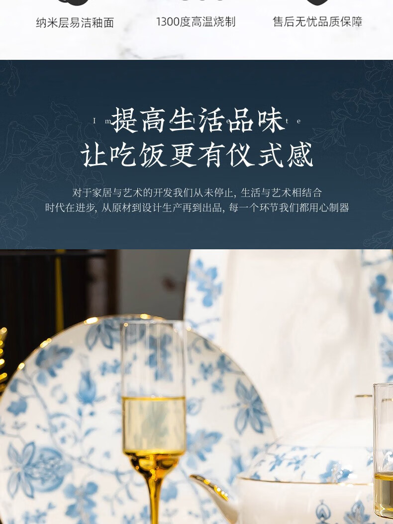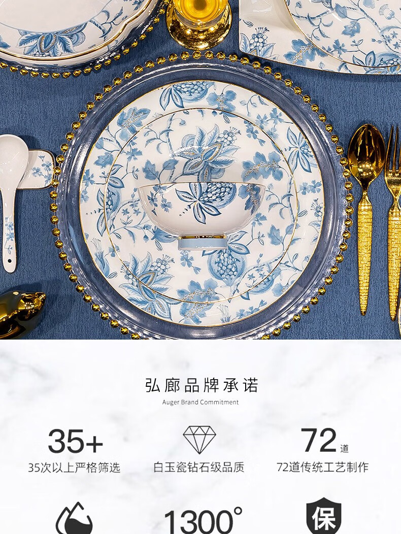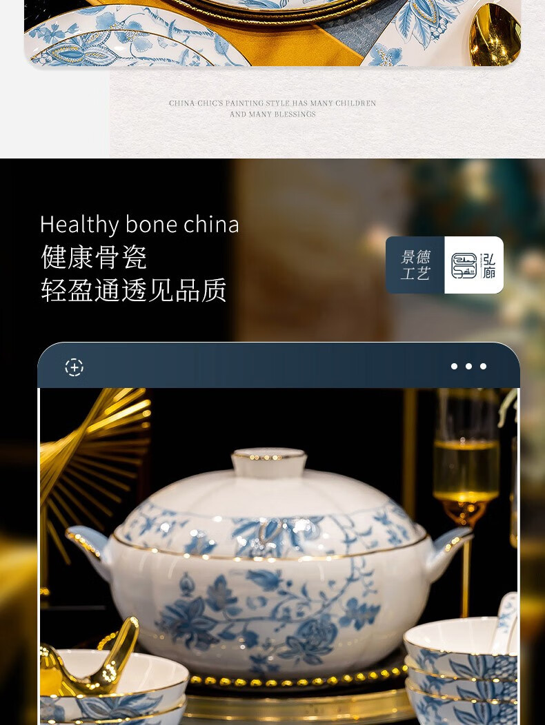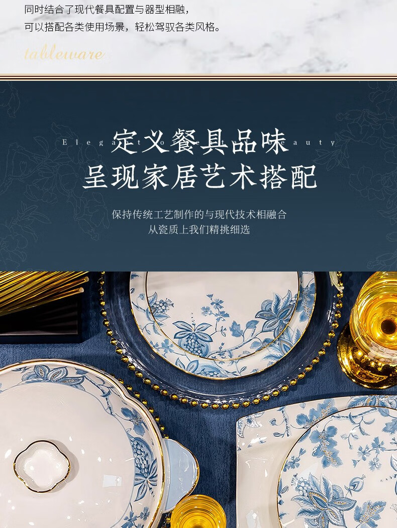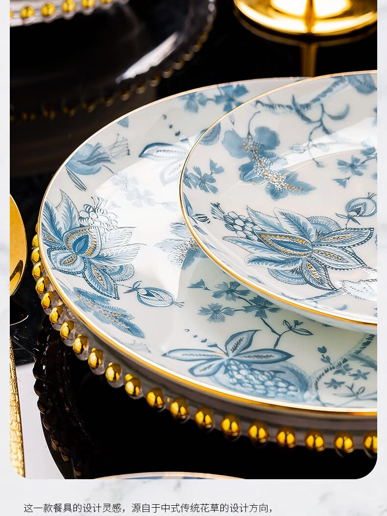 Honglang 2023 new style Chinese tableware and dishes set high-end bone china Jingdezhen new home moving and wedding gift bowls 70 pomegranate flowers (high-end gift packaging)