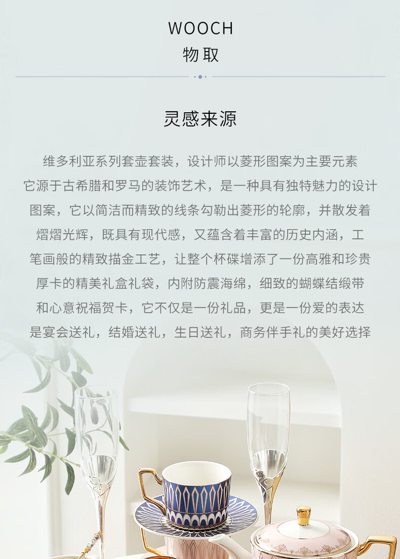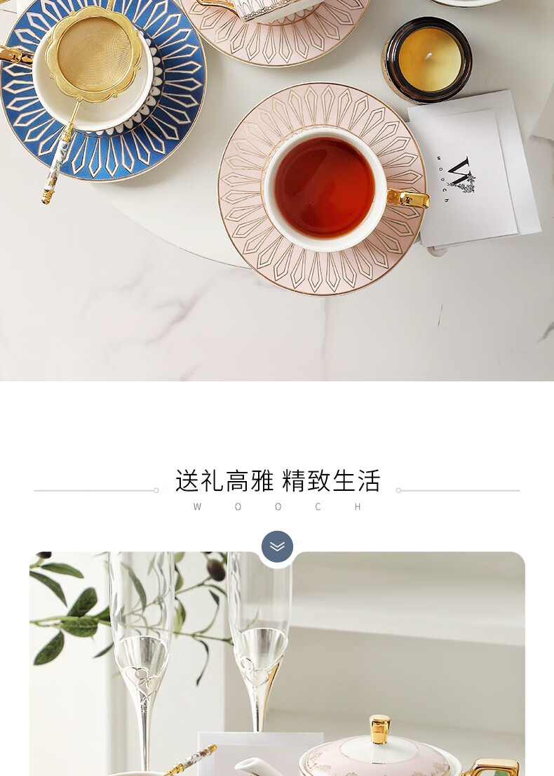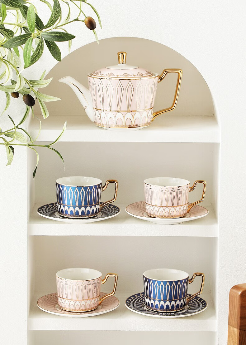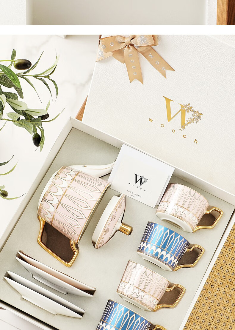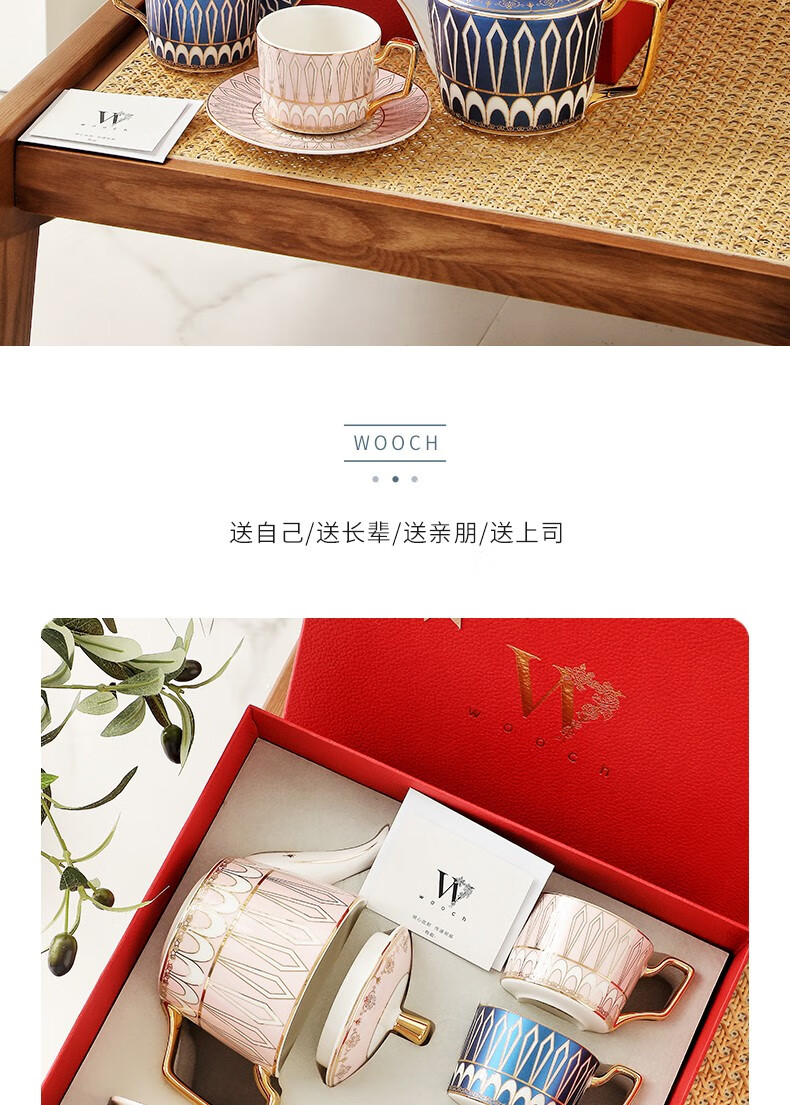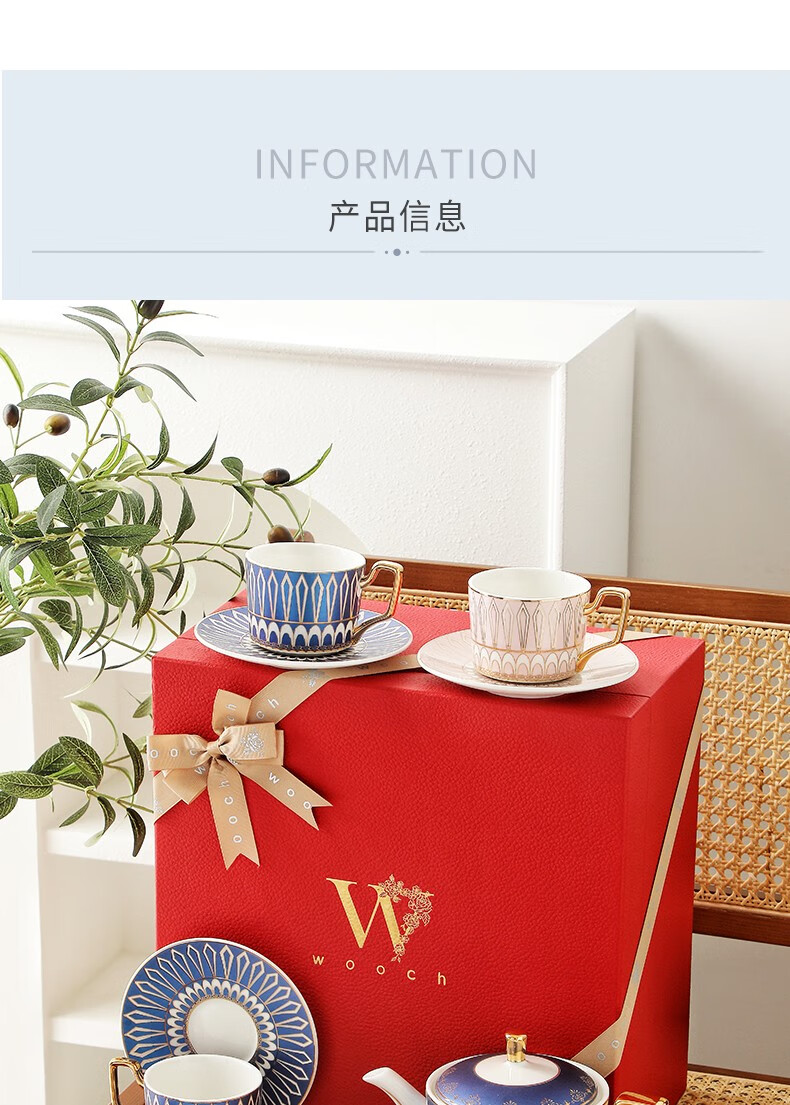 WOOCH Victoria 1 Pot 4 Cups and Saucers Gift Box Light Luxury Afternoon Tea Set New Home Gift Wedding Gift Victoria 1 Pot 4 Cups and Saucers - Brilliant Blue + Red Gift Box