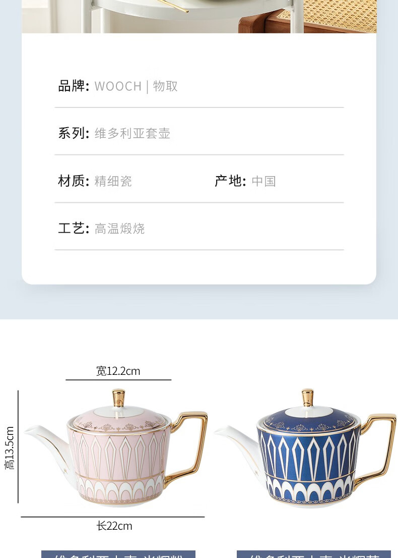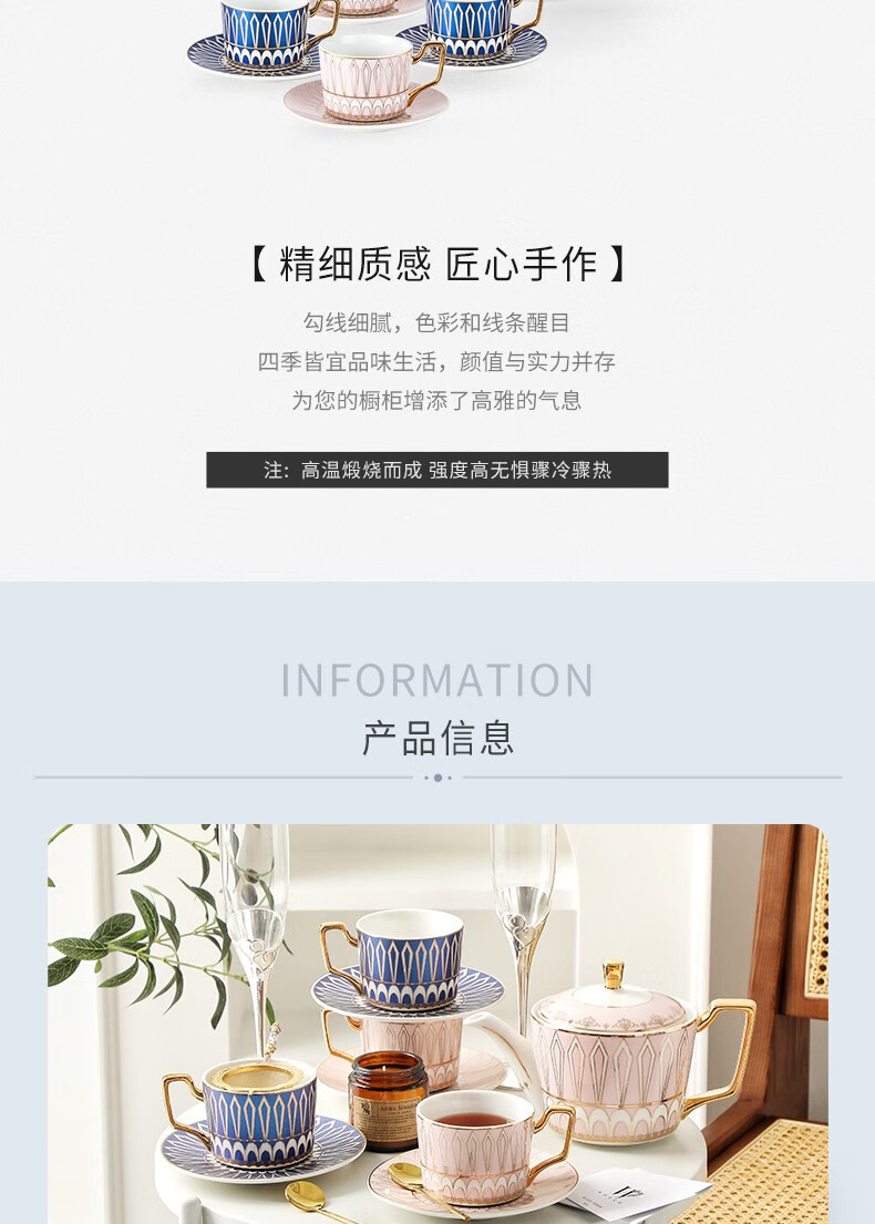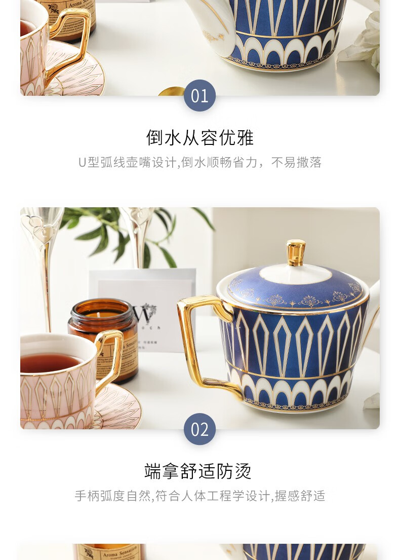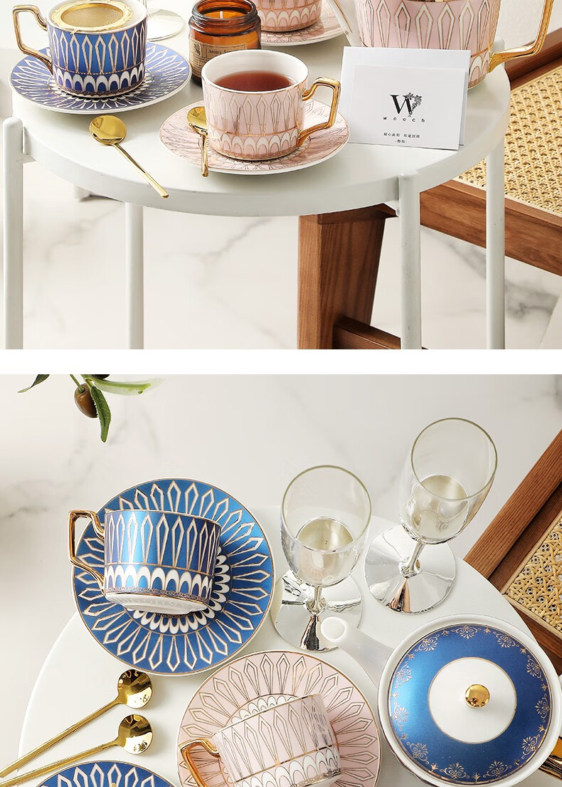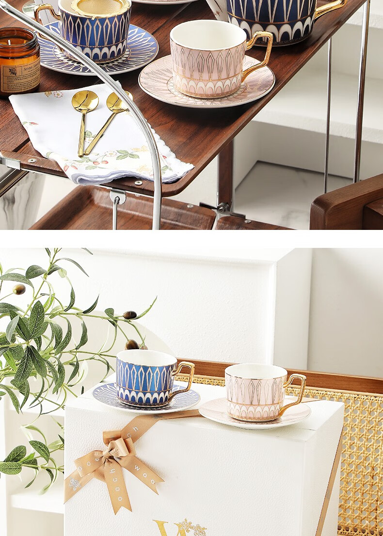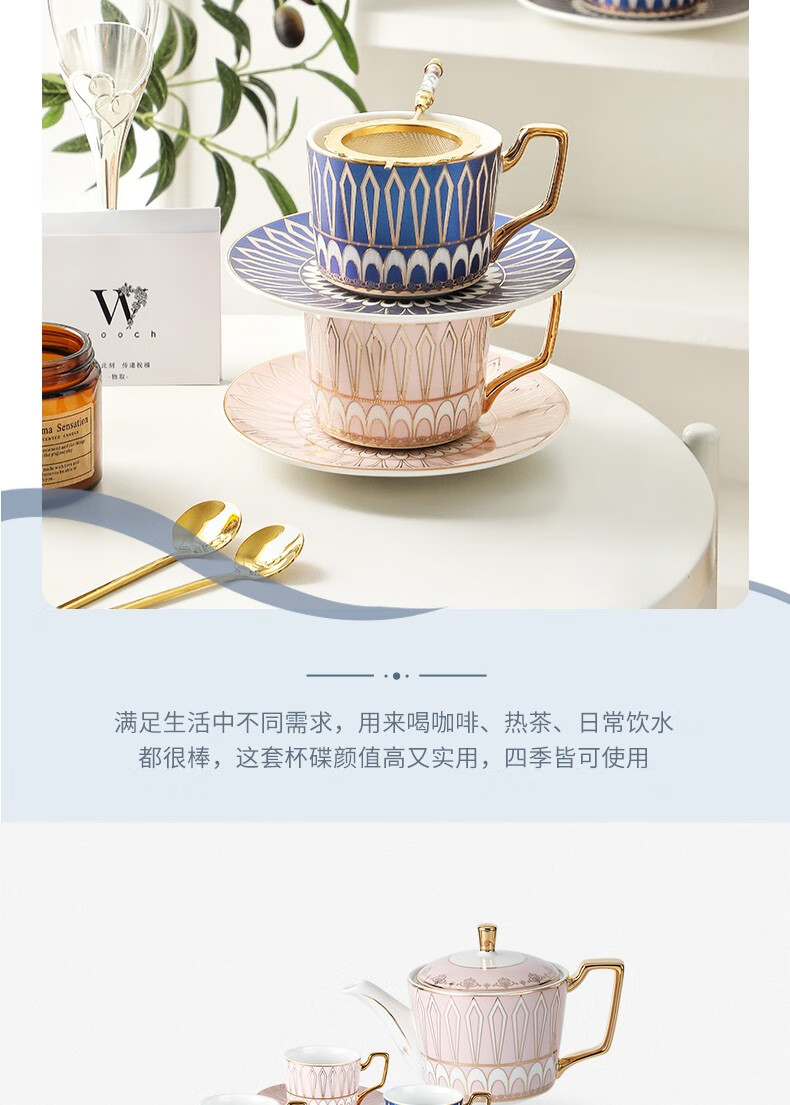 WOOCH Victoria 1 Pot 4 Cups and Saucers Gift Box Light Luxury Afternoon Tea Set New Home Gift Wedding Gift Victoria 1 Pot 4 Cups and Saucers - Brilliant Blue + Red Gift Box