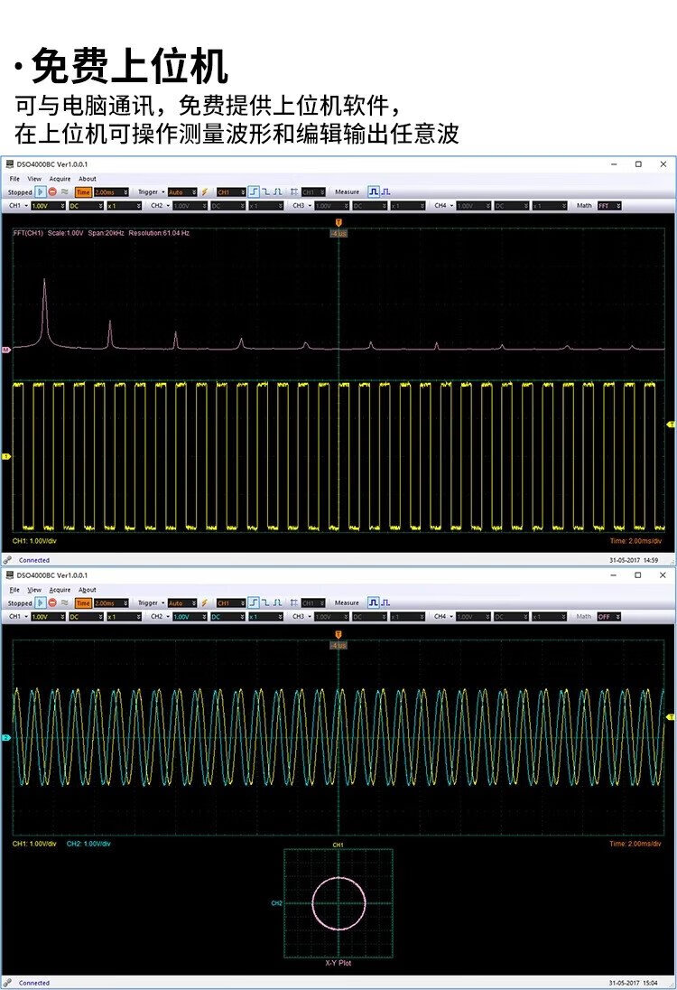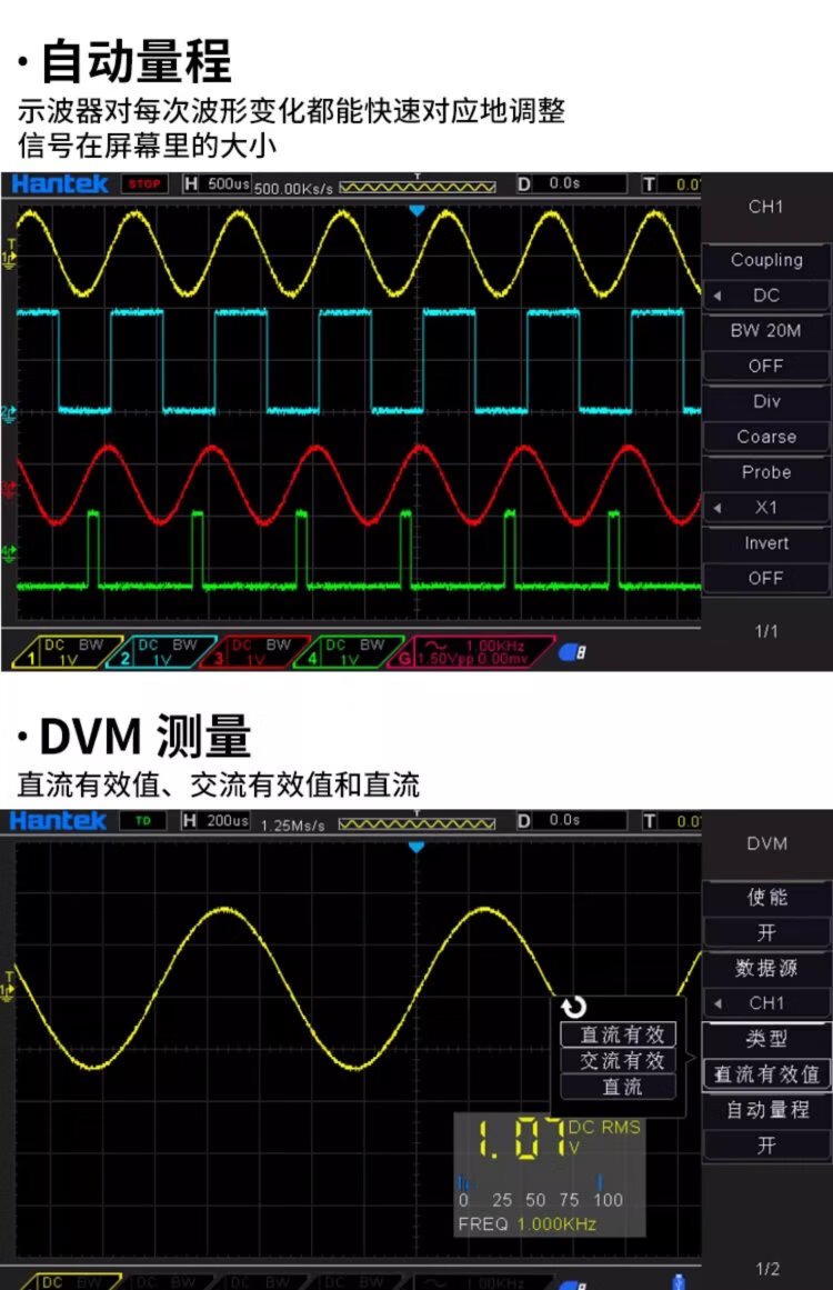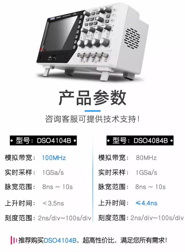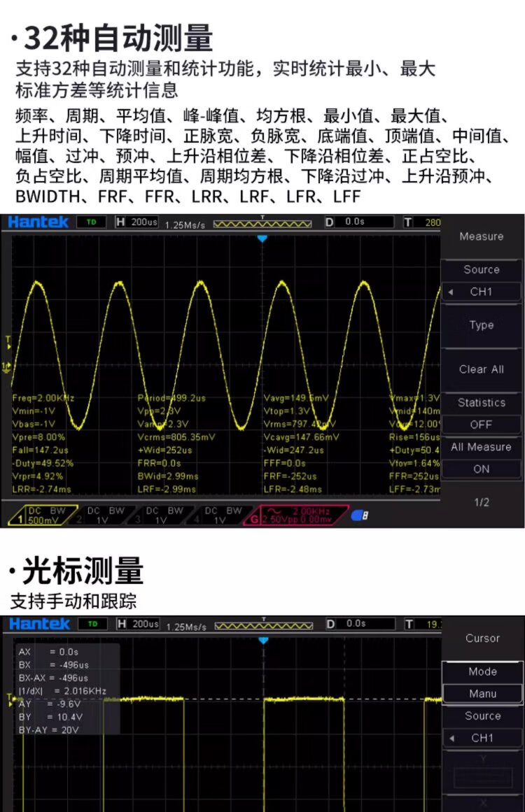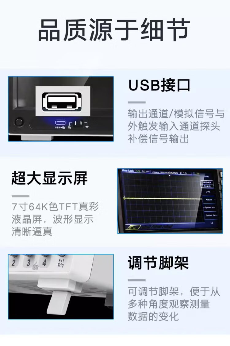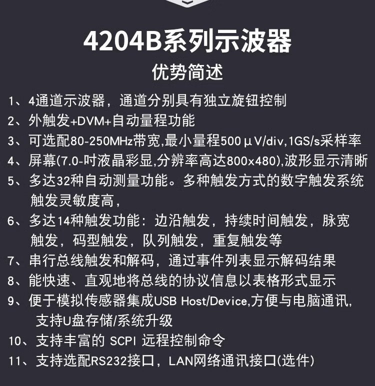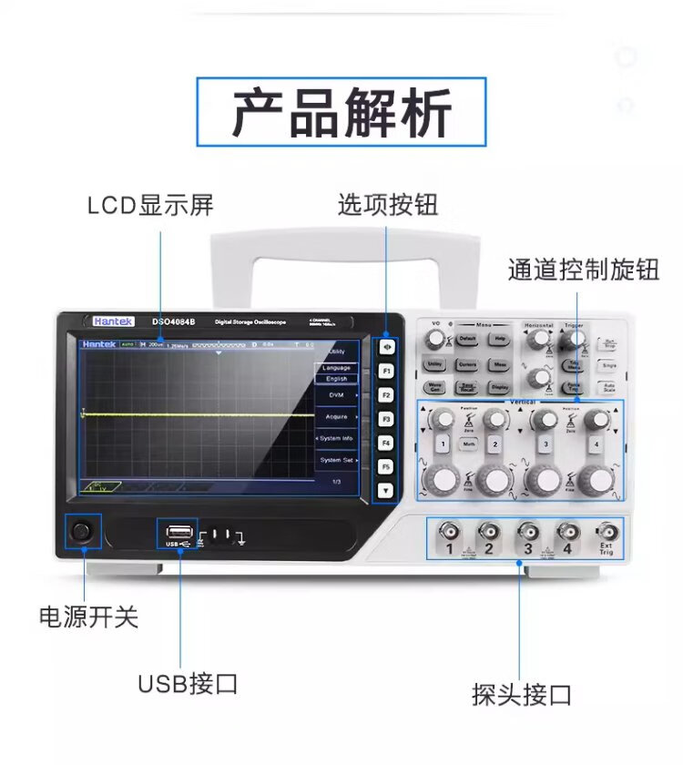 Hantek oscilloscope hantek desktop 4-channel 250MHz bandwidth 1GS/s sampling rate DSO4254/4104/4204B DSO4204B (bandwidth 200MHz) 4-channel