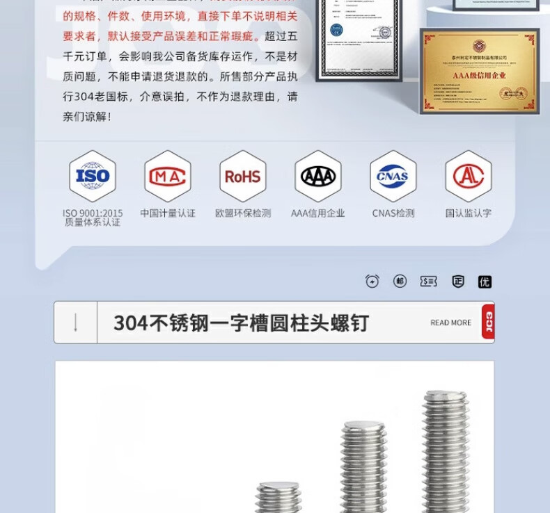 Jinchao 304 stainless steel slotted cylindrical head slotted screws M1.6M2345M6GB65 flat head round head screws M2.5*10 (50 pcs)