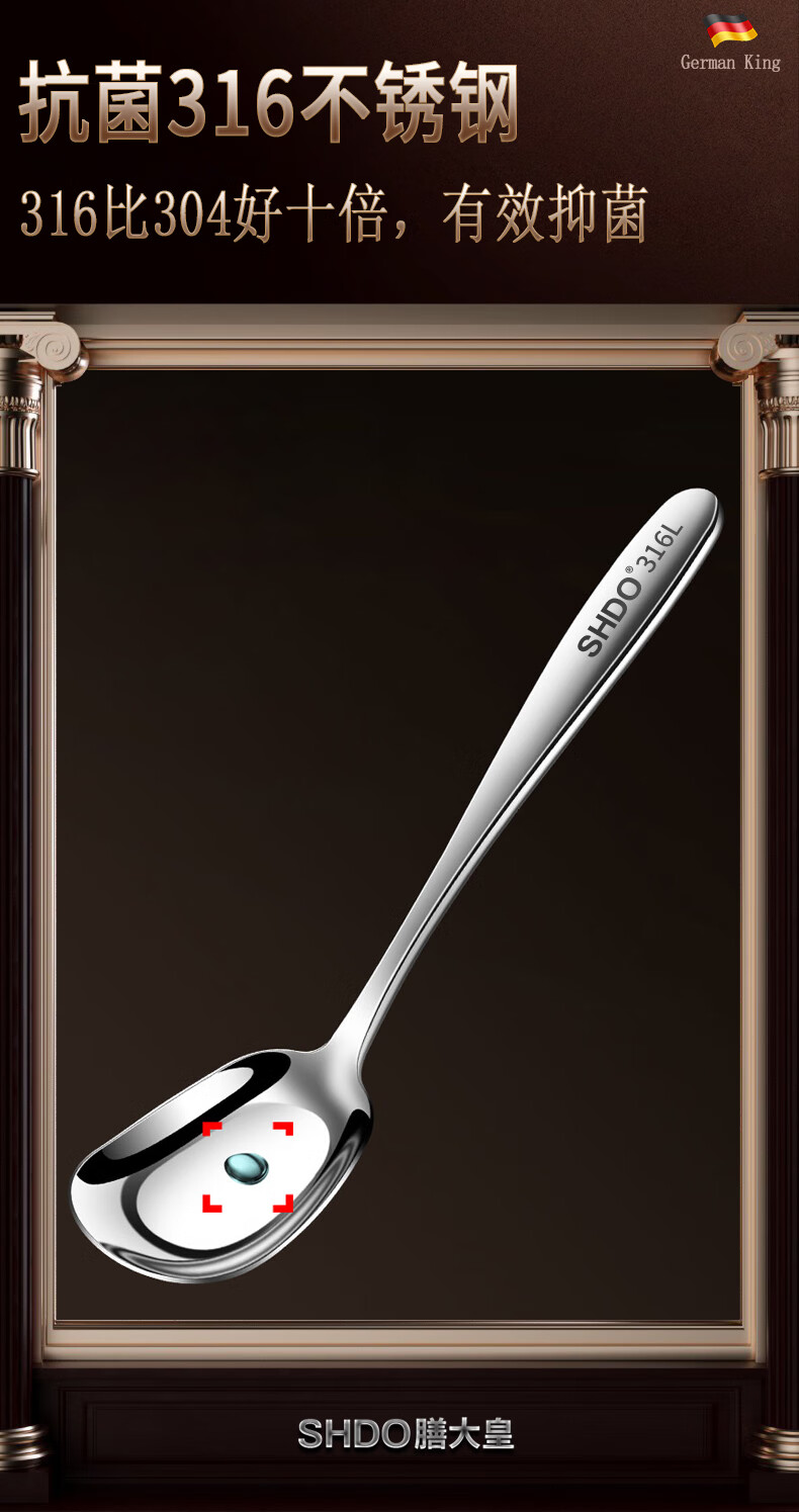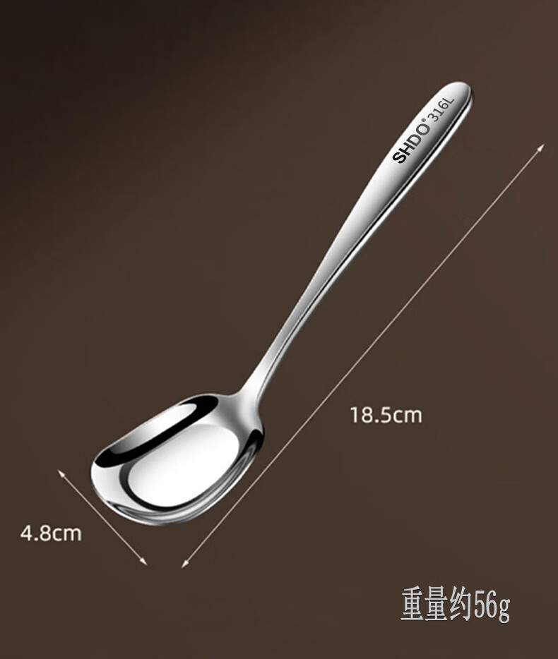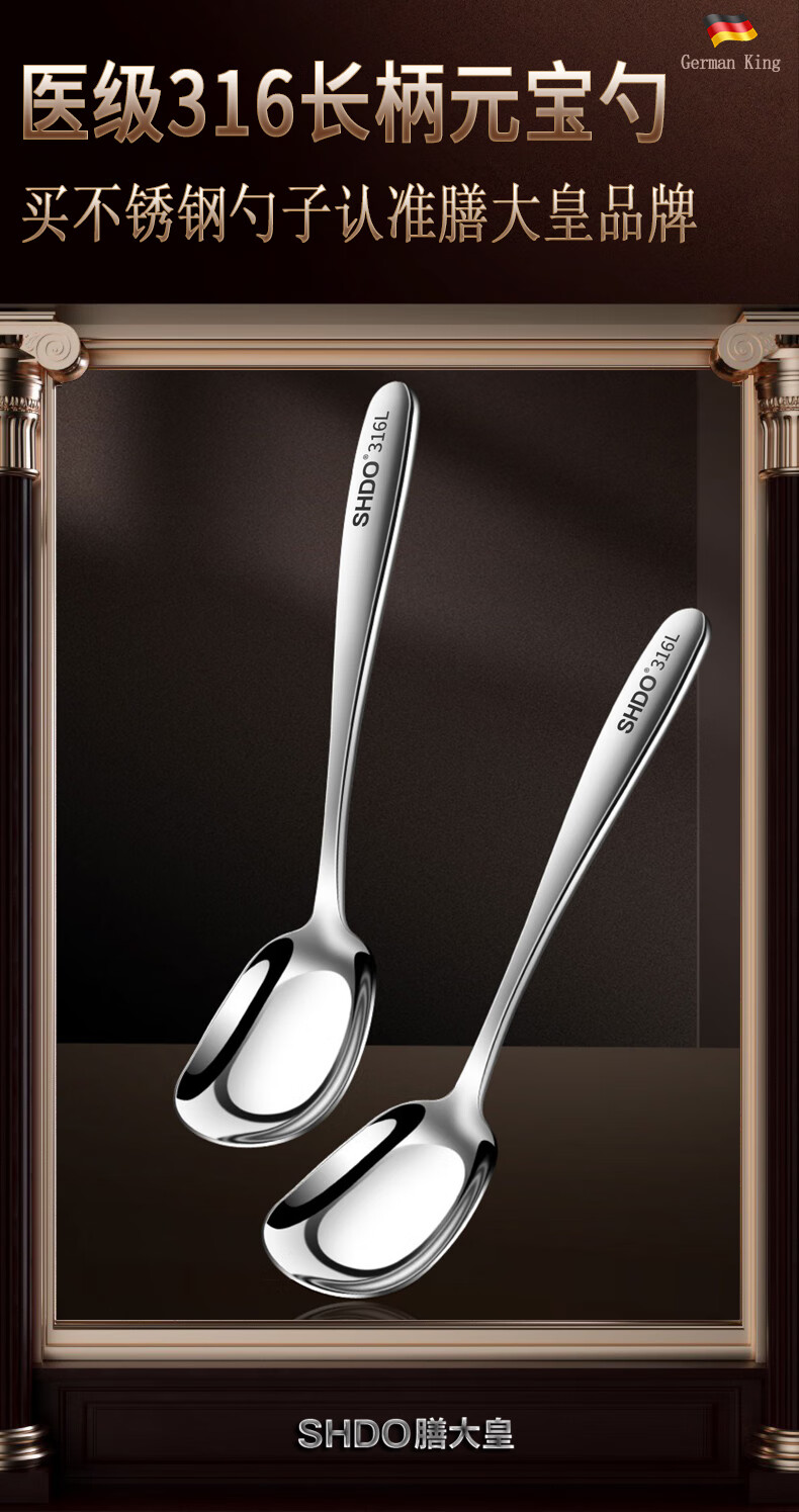 Shanda Huang (SHDO) German 316 stainless steel spoon long handle Yuanbao spoon eating spoon children's spoon adult spoon drinking spoon antibacterial 316L large size 18.5*5cm