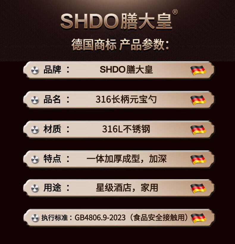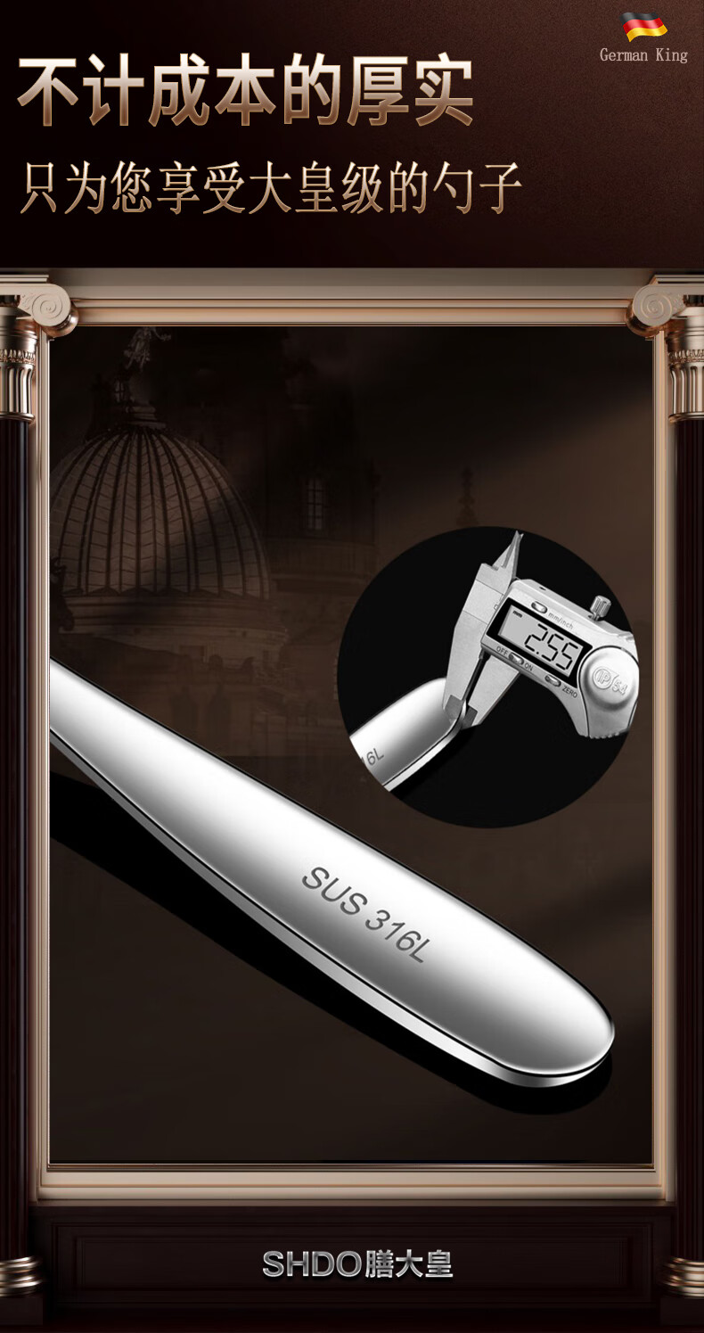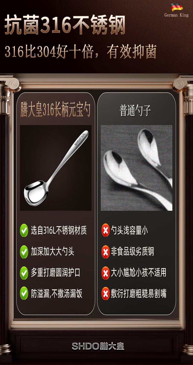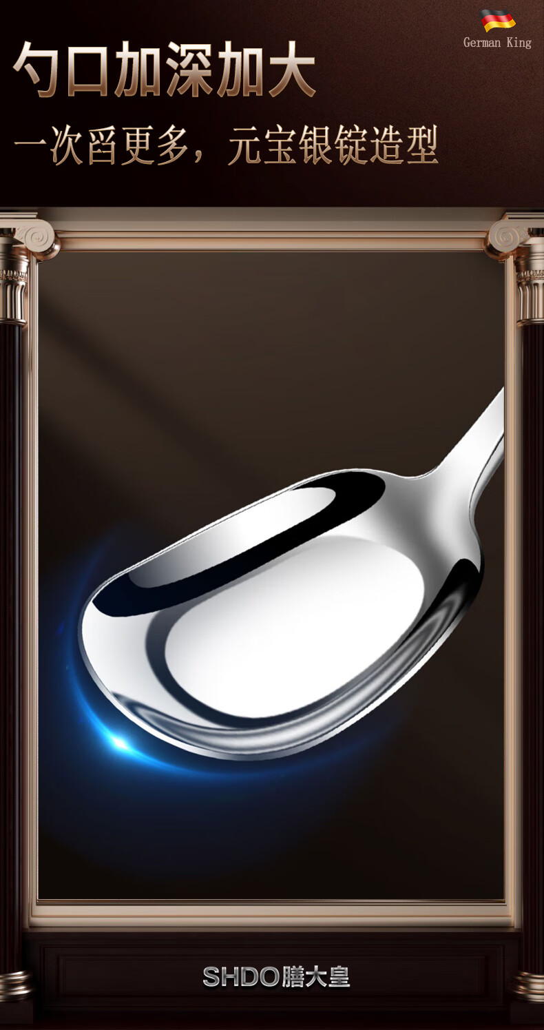Shanda Huang (SHDO) German 316 stainless steel spoon long handle Yuanbao spoon eating spoon children's spoon adult spoon drinking spoon antibacterial 316L large size 18.5*5cm