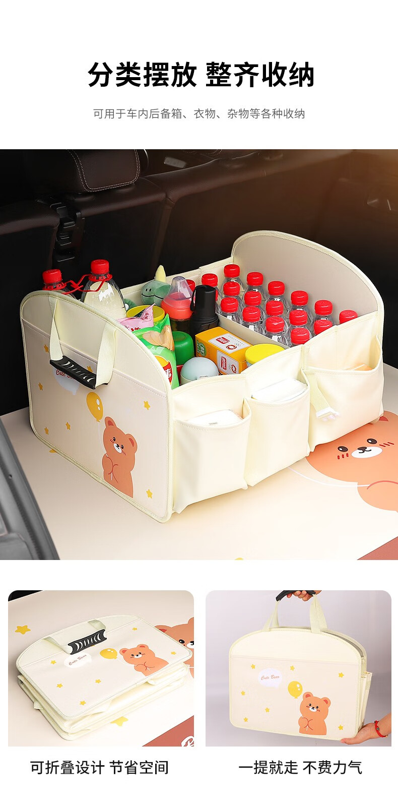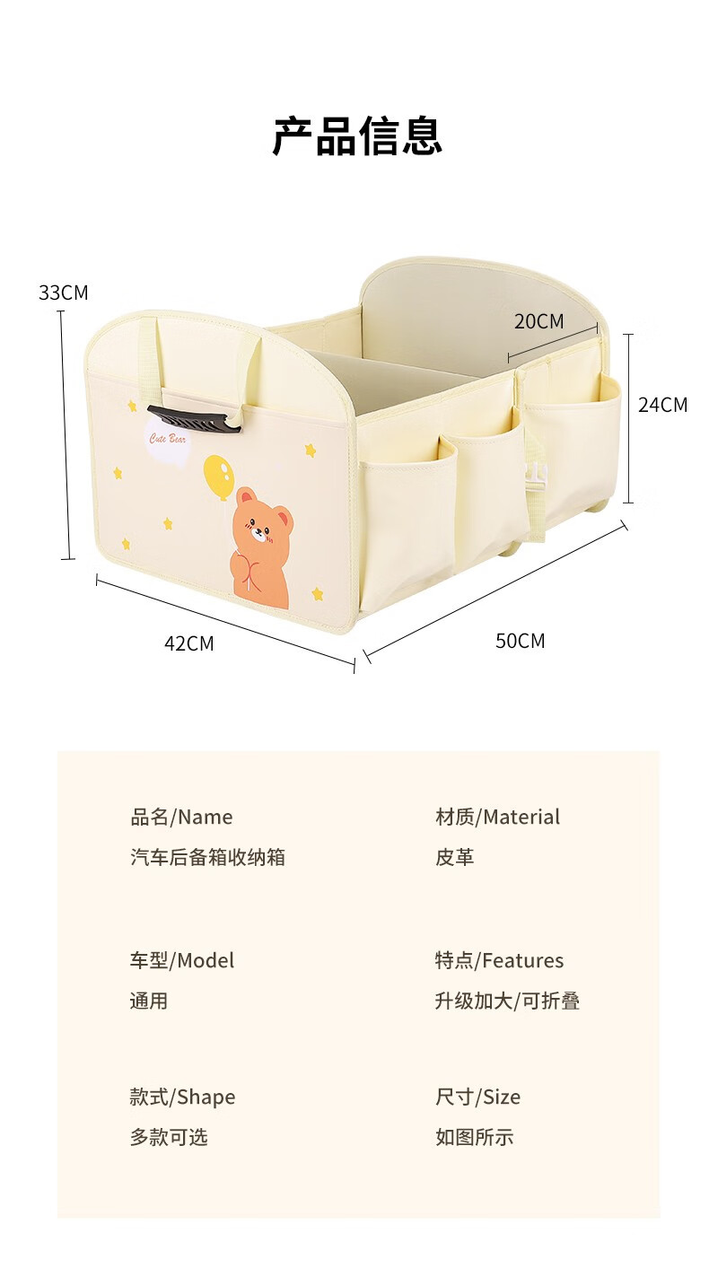 Huizhixing car trunk storage box, car foldable storage box, car trunk, car sundry storage box, car accessories, balloon bear, washable/foldable
