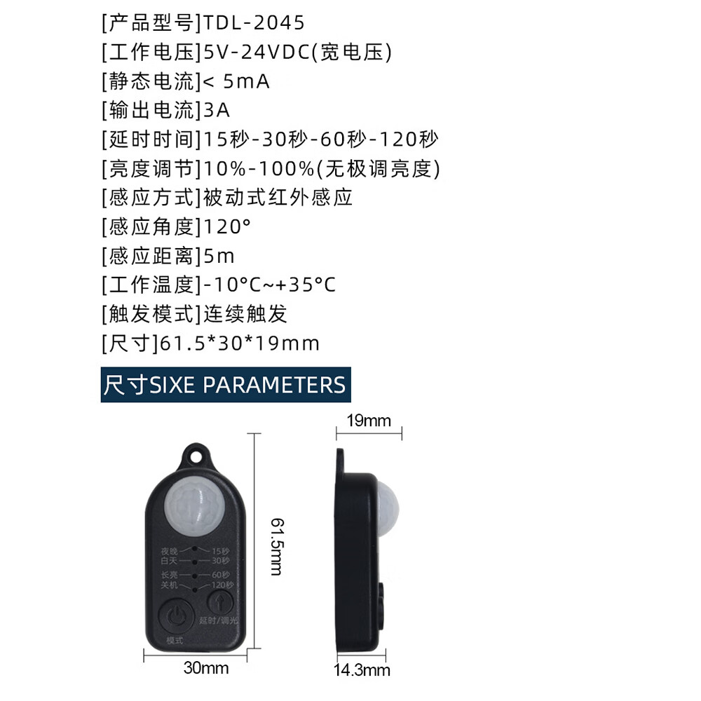 DC5-24V Intelligent Human Body Infrared Induction Switch Time Light Control Stepless Dimming Cabinet LED Light Sensor USB_White