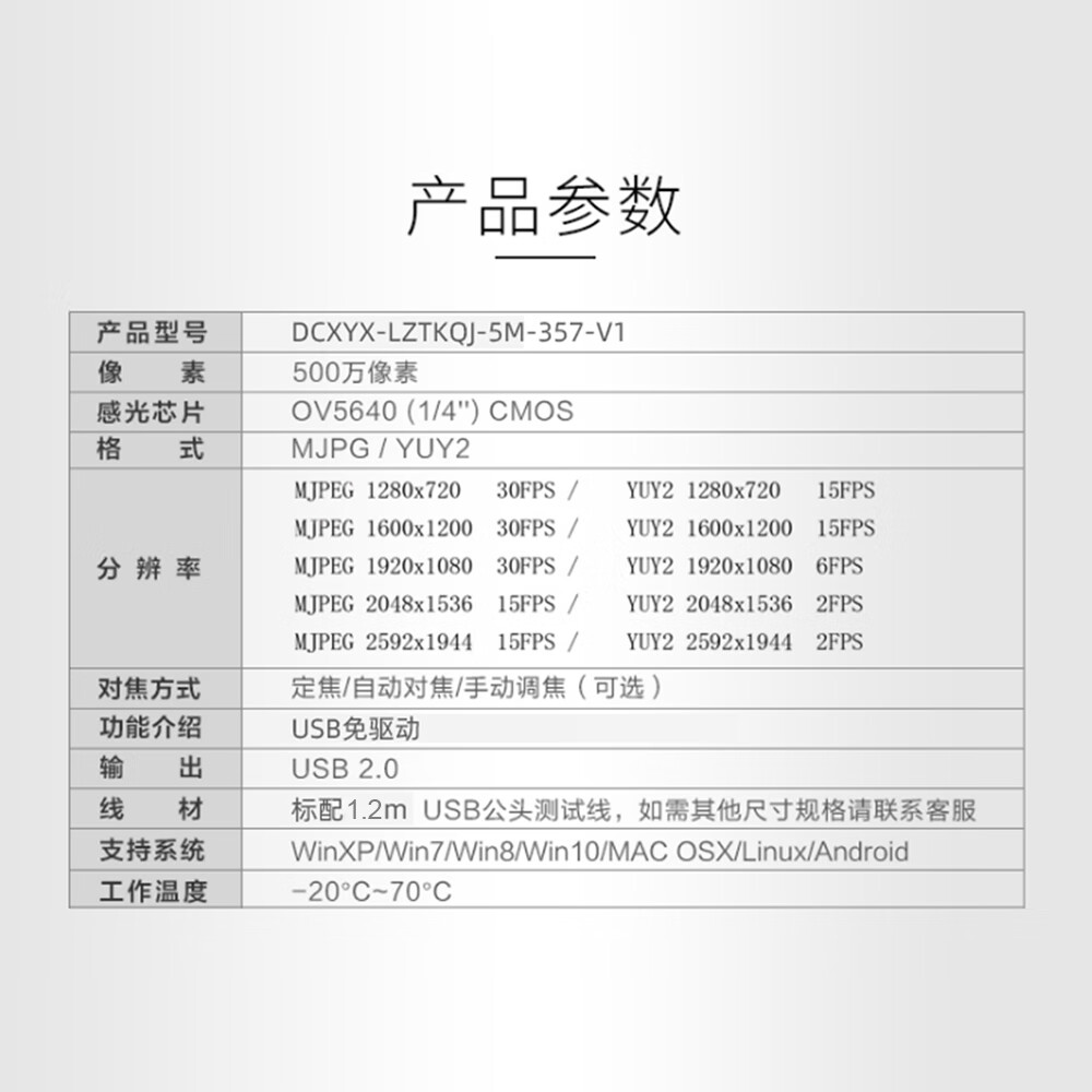 OV5640 camera module 5 million pixel all-in-one laptop USB driver-free module auto focus fixed focus 72 degree auto focus lens + USB cable 1.2 meters