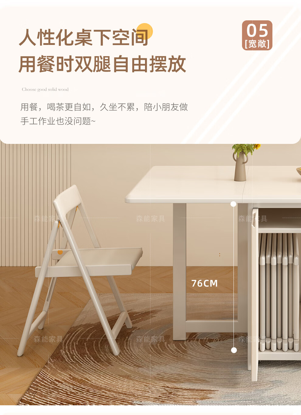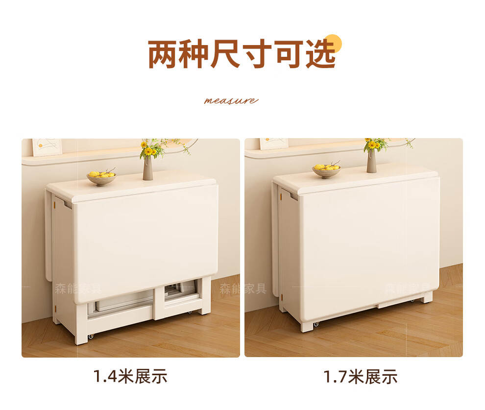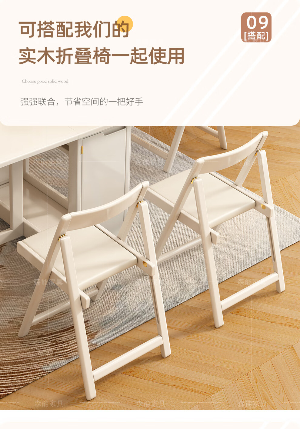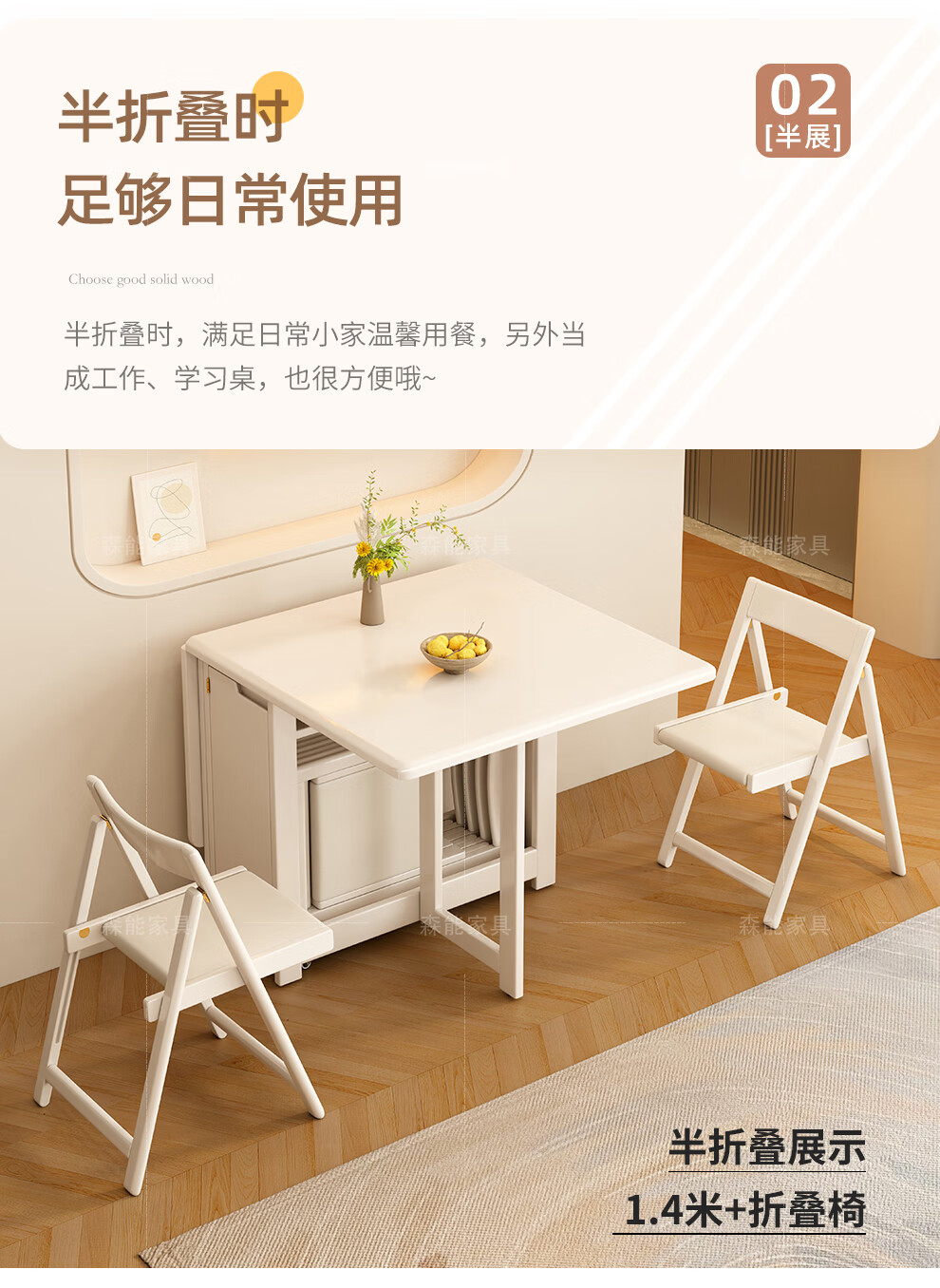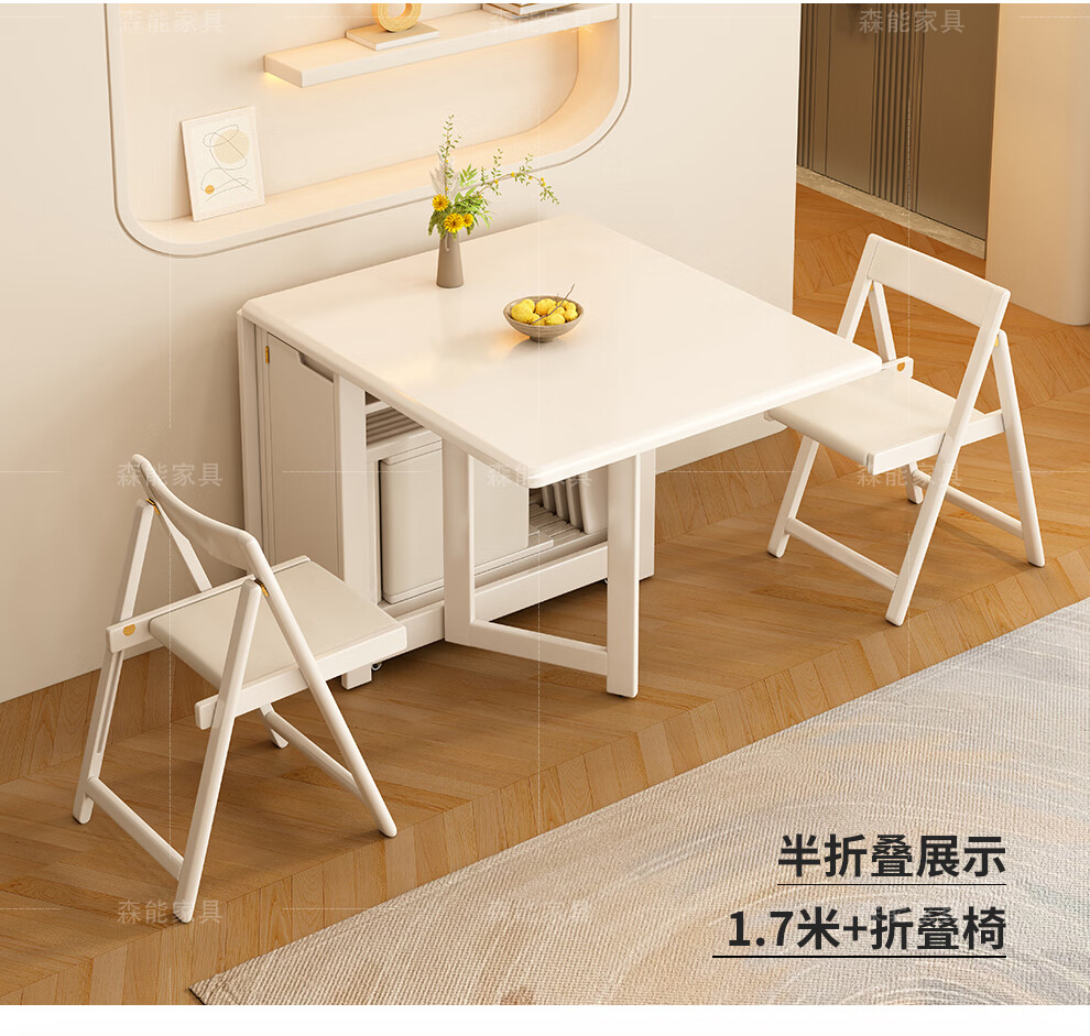 Senneng solid wood folding dining table and chair combination small apartment retractable dining table multi-functional cream style white stowable folding table 1.4m single dining table + sideboard + chair *2