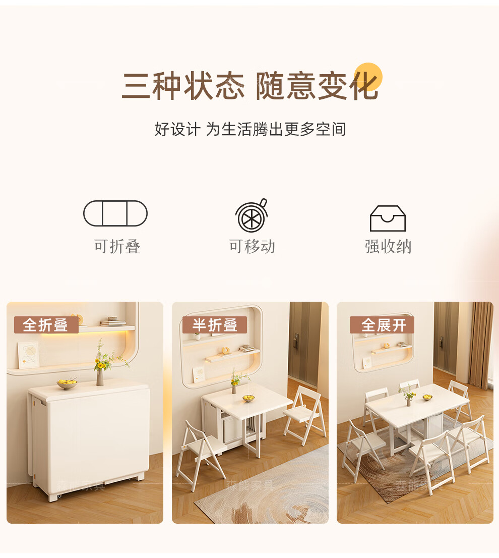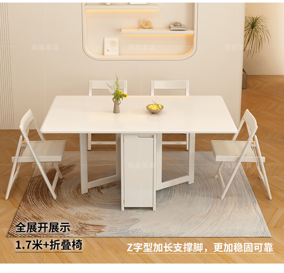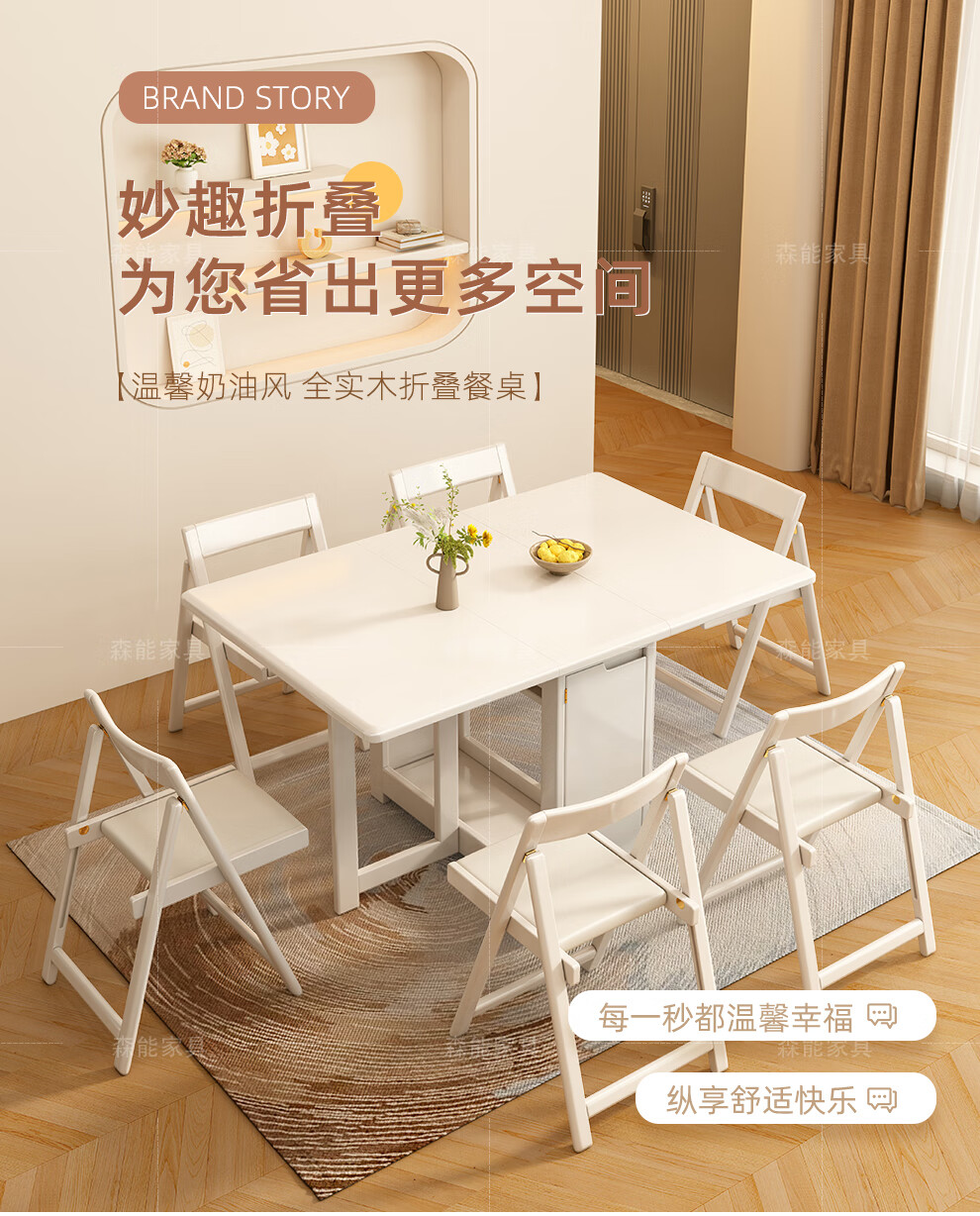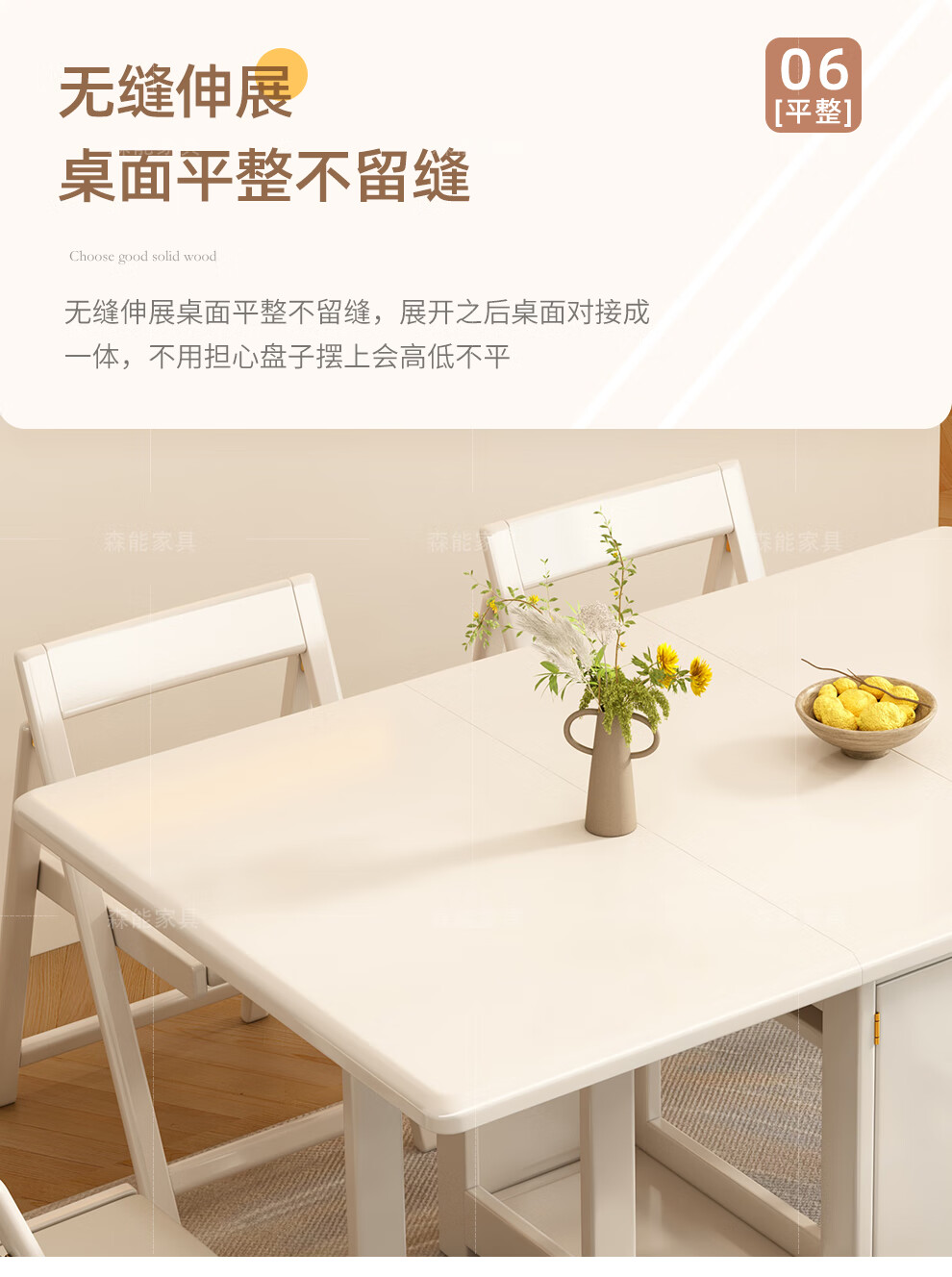 Senneng solid wood folding dining table and chair combination small apartment retractable dining table multi-functional cream style white stowable folding table 1.4m single dining table + sideboard + chair *2