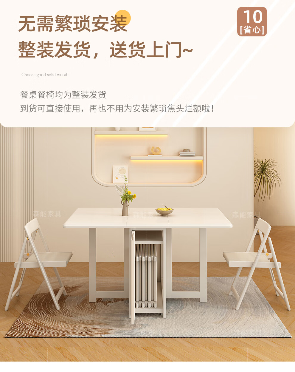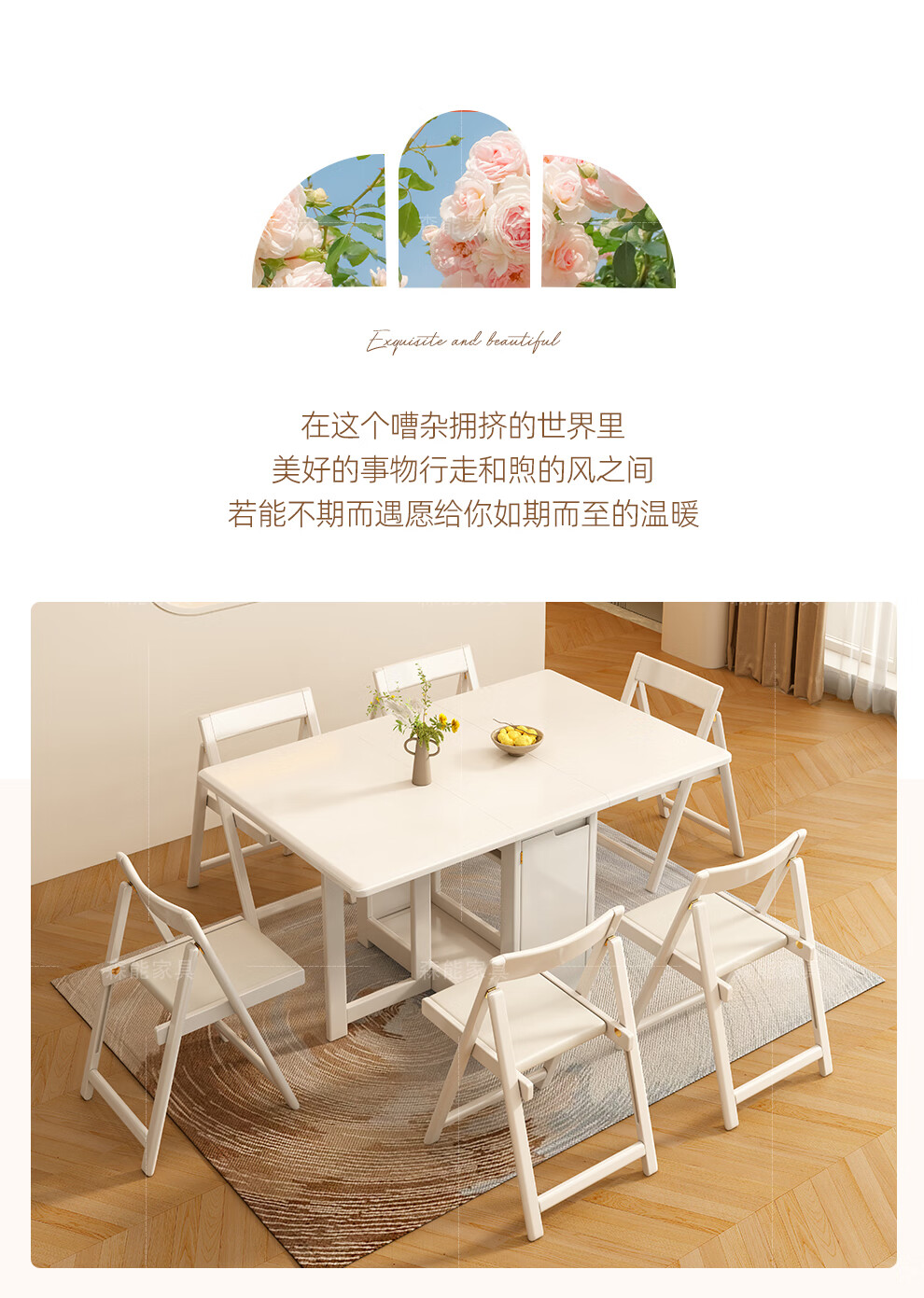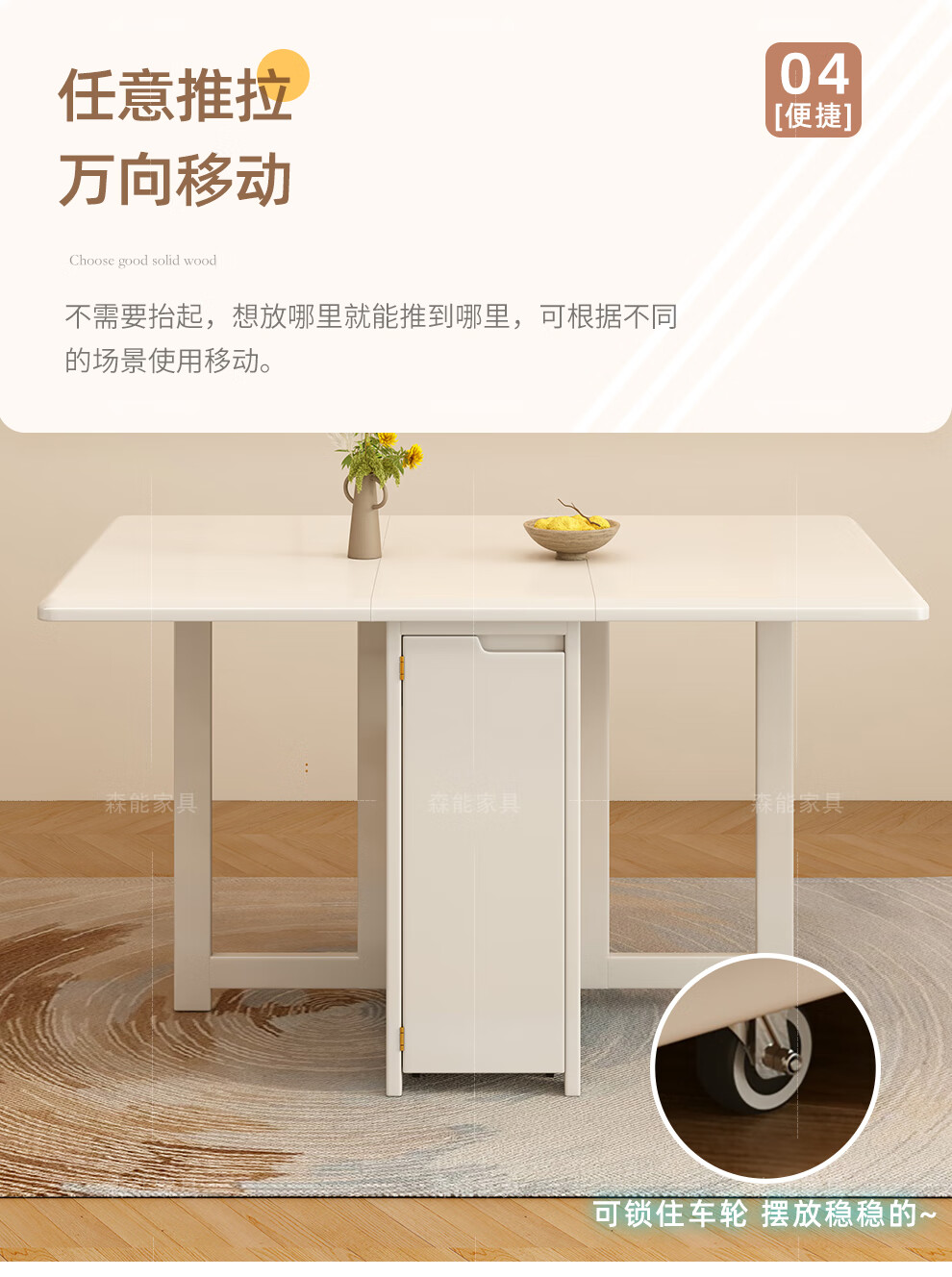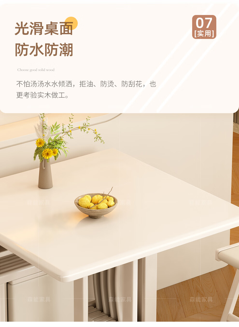 Senneng solid wood folding dining table and chair combination small apartment retractable dining table multi-functional cream style white stowable folding table 1.4m single dining table + sideboard + chair *2
