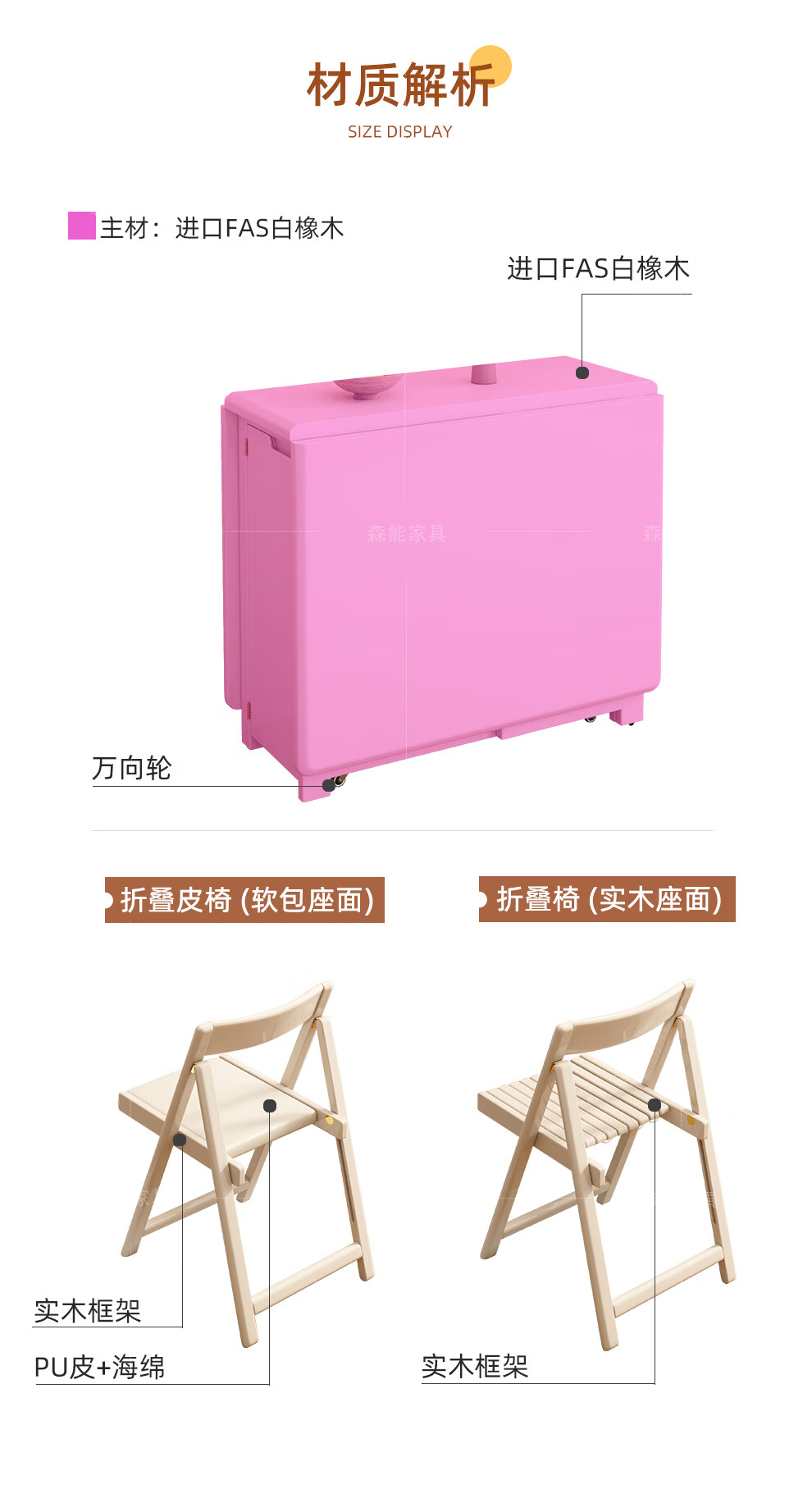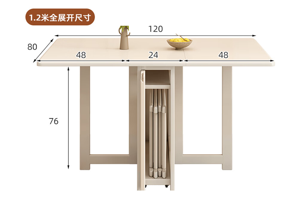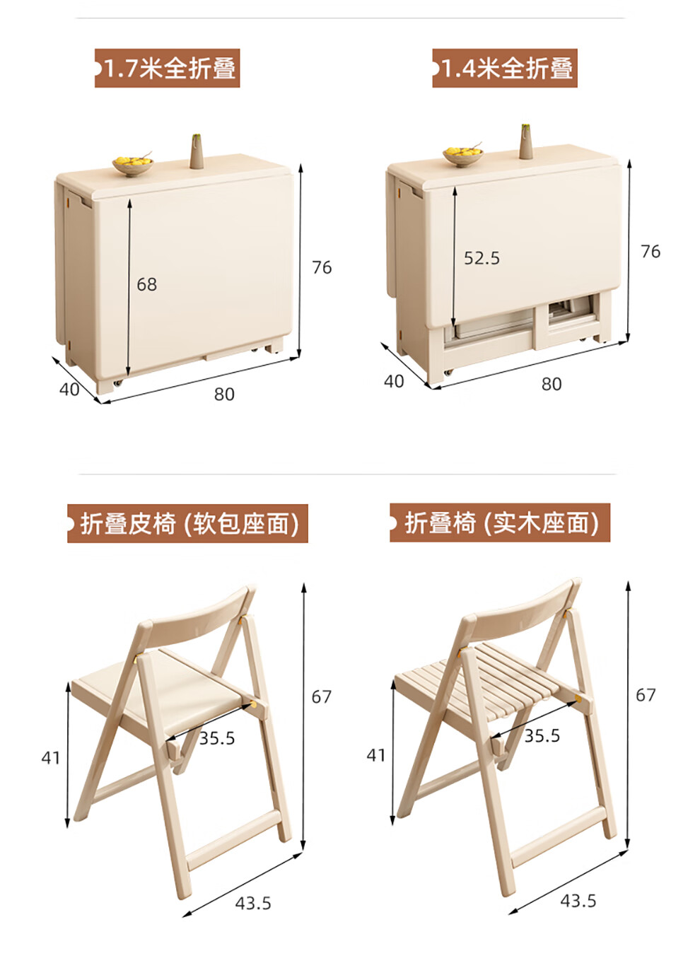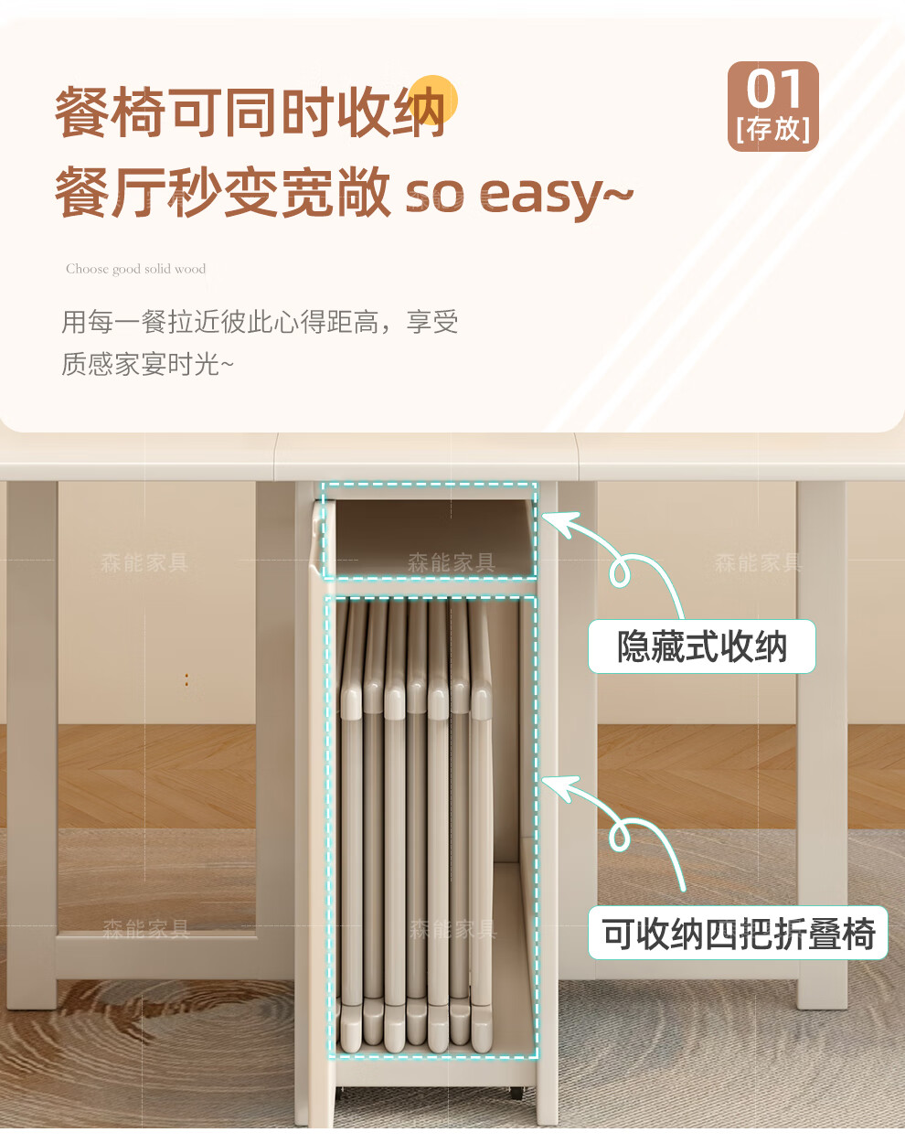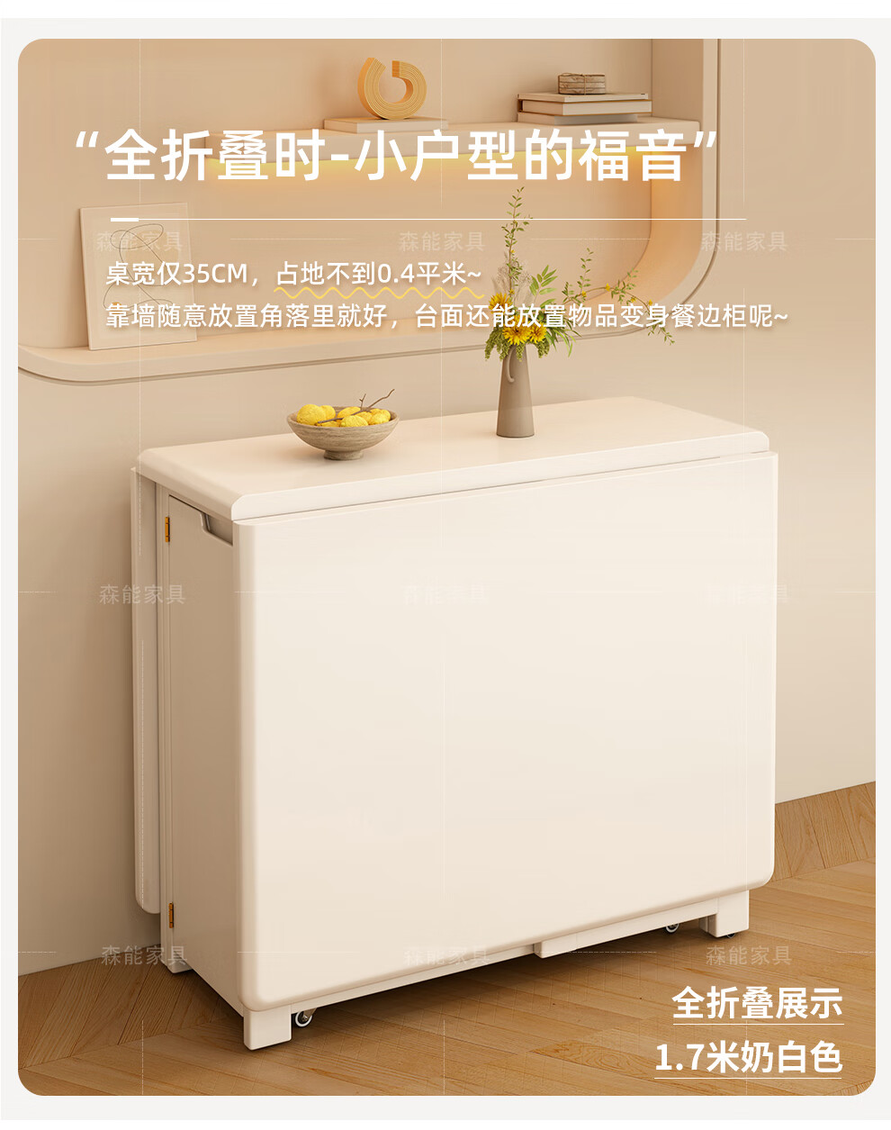 Senneng solid wood folding dining table and chair combination small apartment retractable dining table multi-functional cream style white stowable folding table 1.4m single dining table + sideboard + chair *2