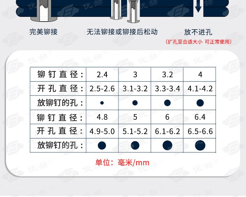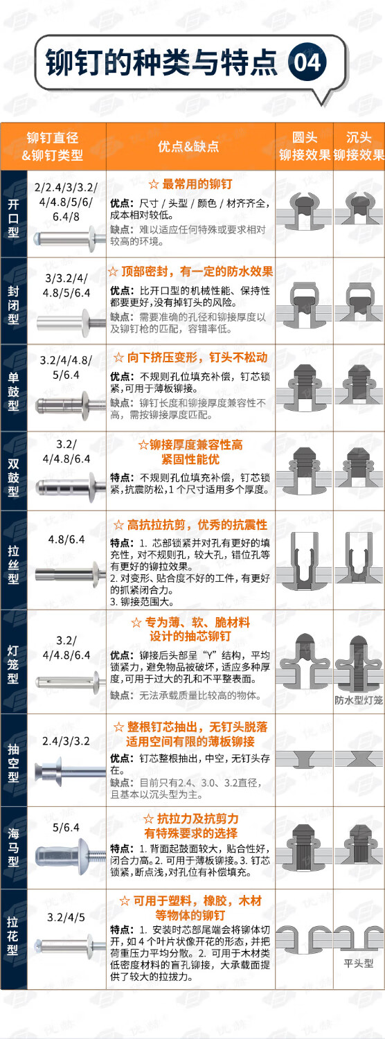 Youhe rivets Yuan head blind rivets 304 stainless steel round head stainless steel pull rivets cap nails pull nails 4.8*8 (50 pieces)
