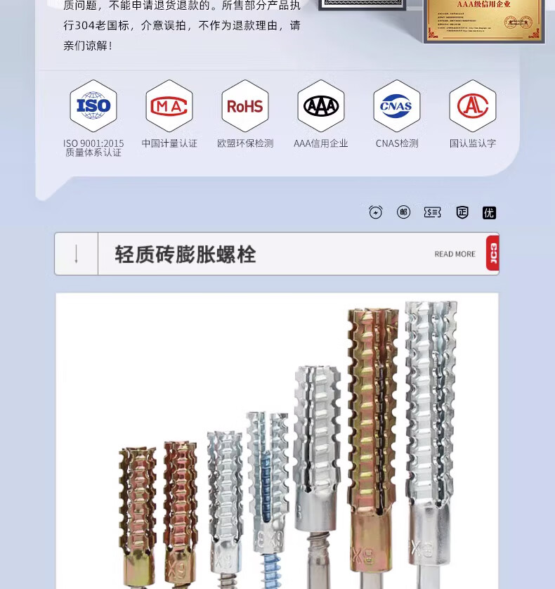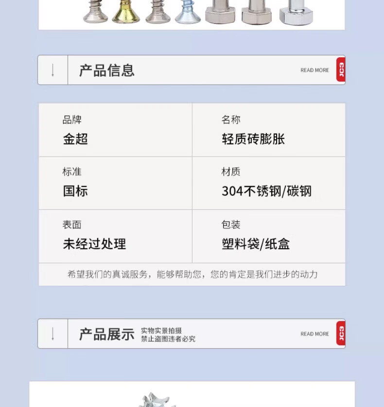 Jinchao sawtooth gecko expansion screws complete set of bolts lightweight brick anti-loosening cement wall hollow brick concrete metal pipe nails M5*30 (blue and white zinc single tube + cross self-tapping) 20 sets