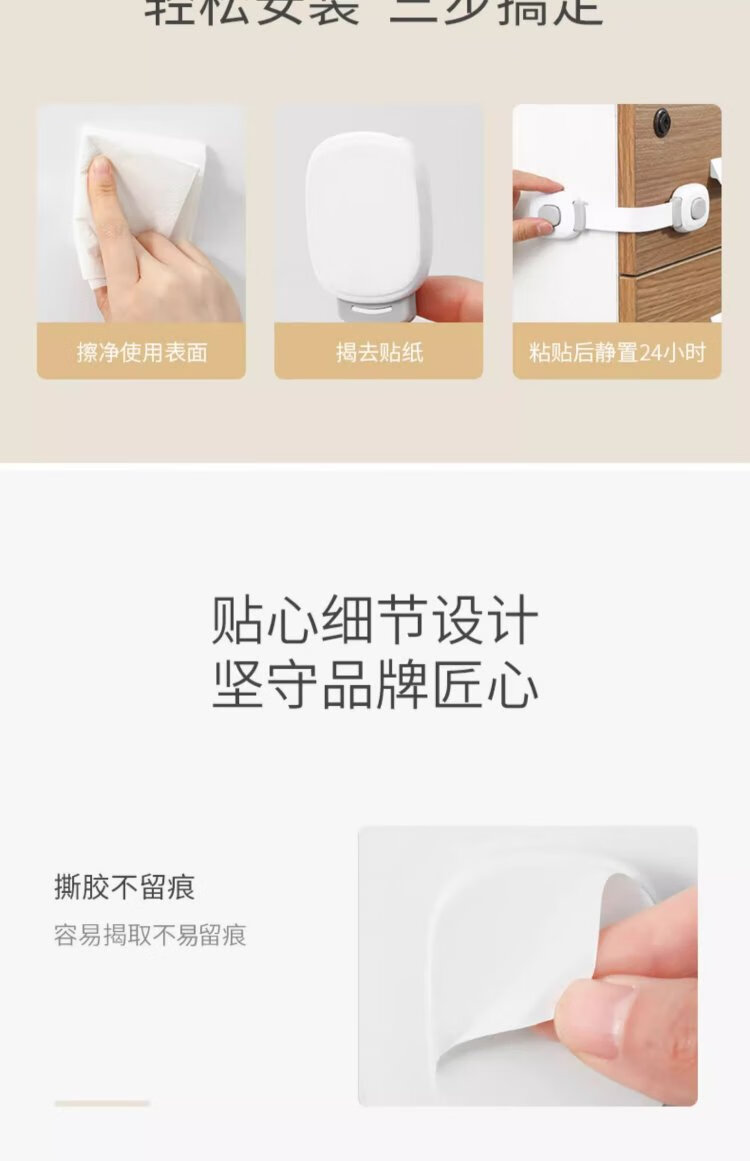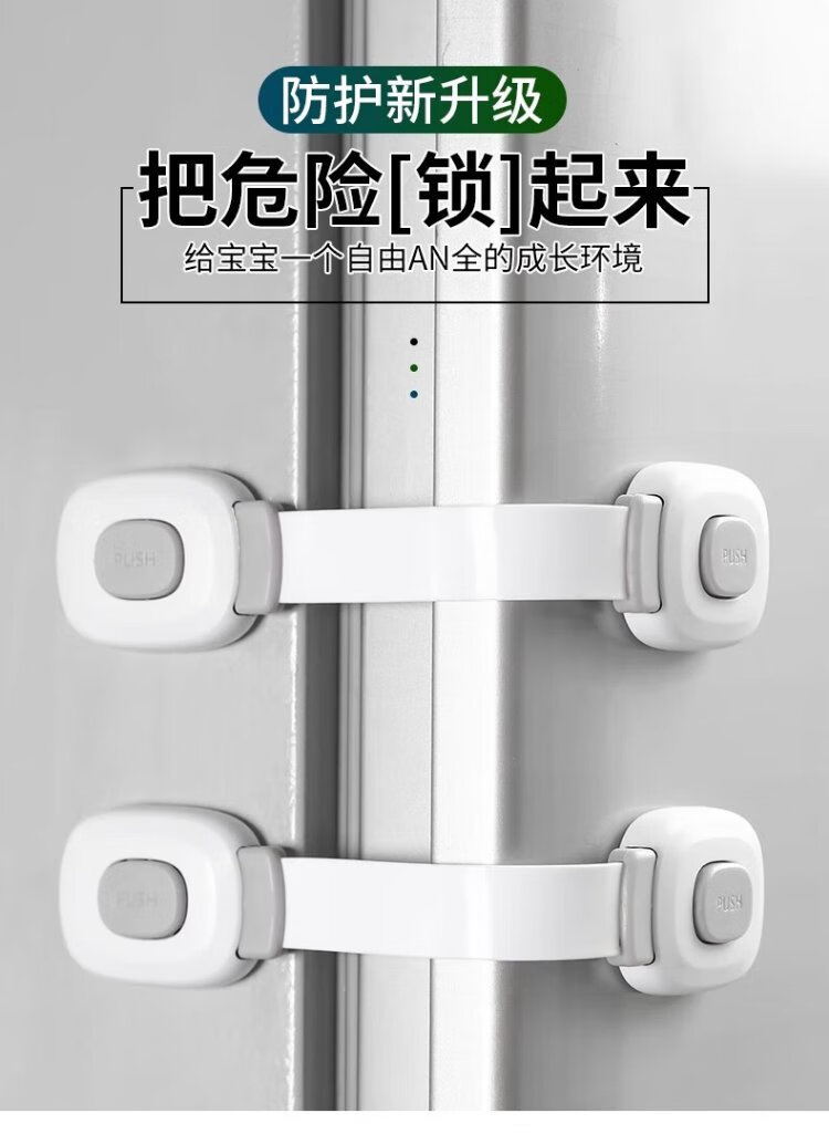 Shuang lock buckle white door bolt fixed lock door artifact simple plastic door buckle adhesive type punch-free snap latch light gray 2 pack