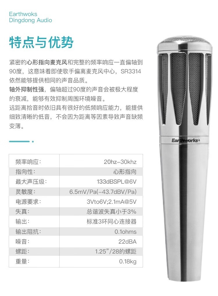 EARTHWORKSEarthWorks SR3314 cardioid wireless handheld large diaphragm microphone pickup head Zhao Tiezhu with professional live broadcast stage microphone AD2/SR3314 one-to-one dual channel