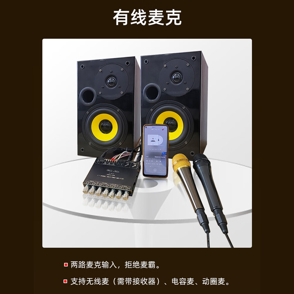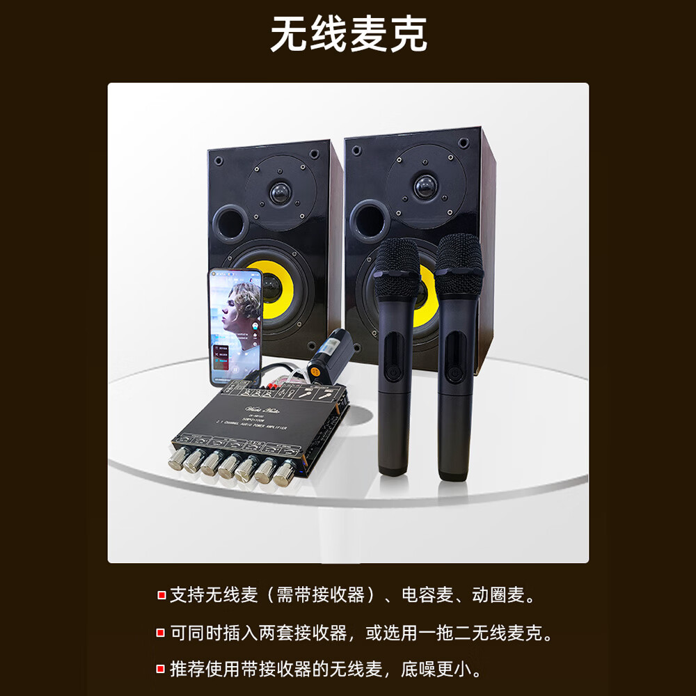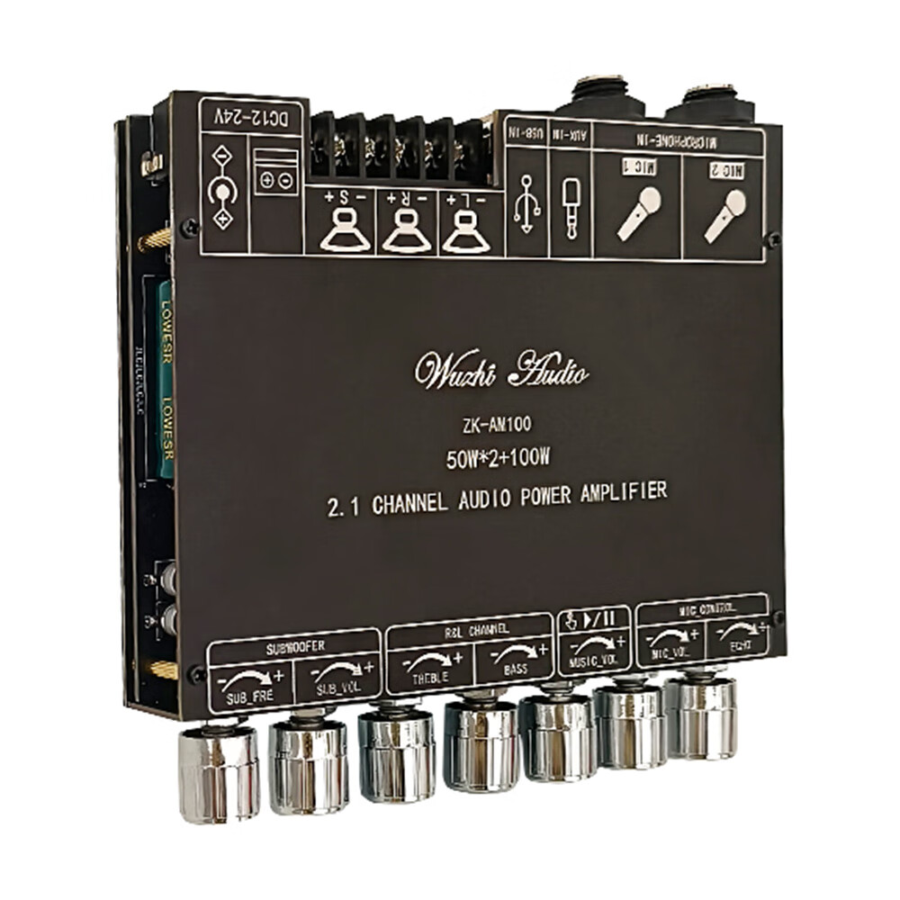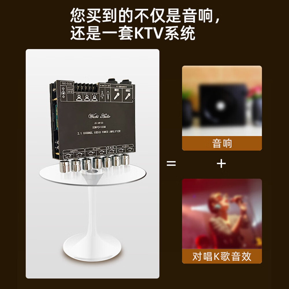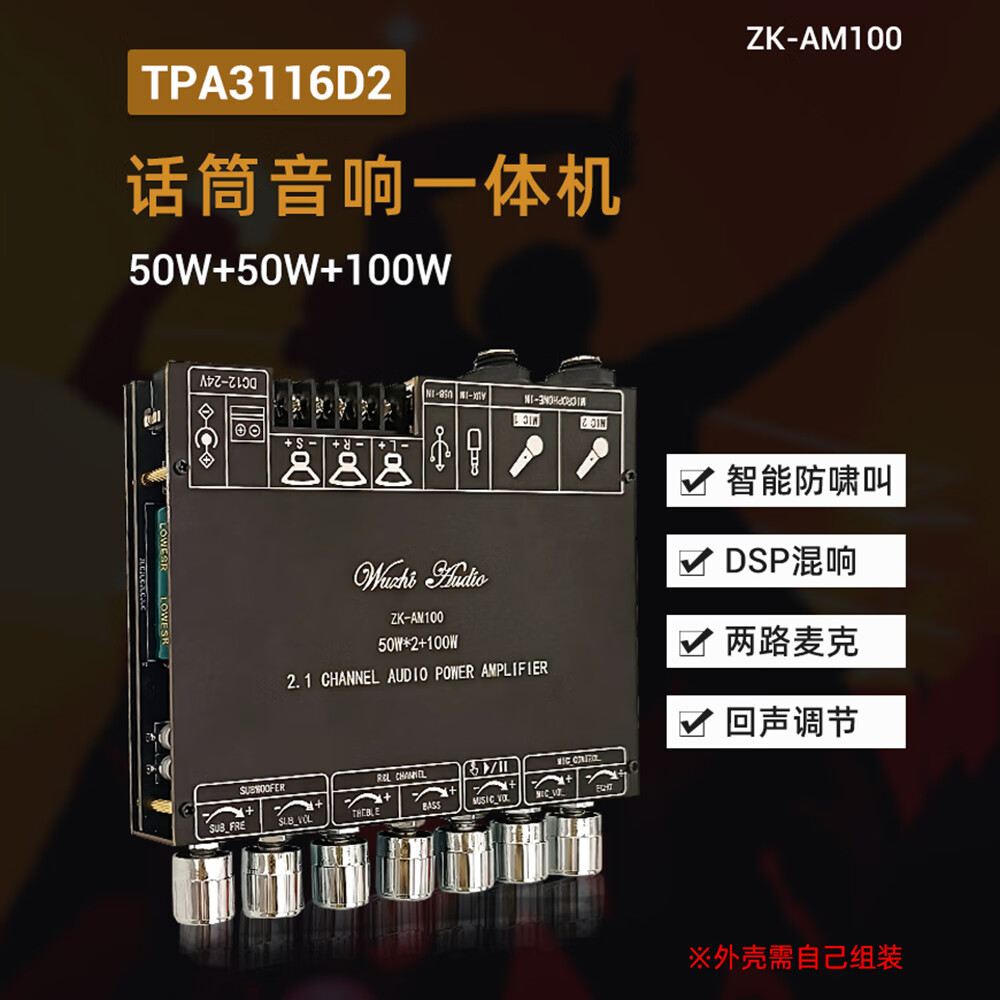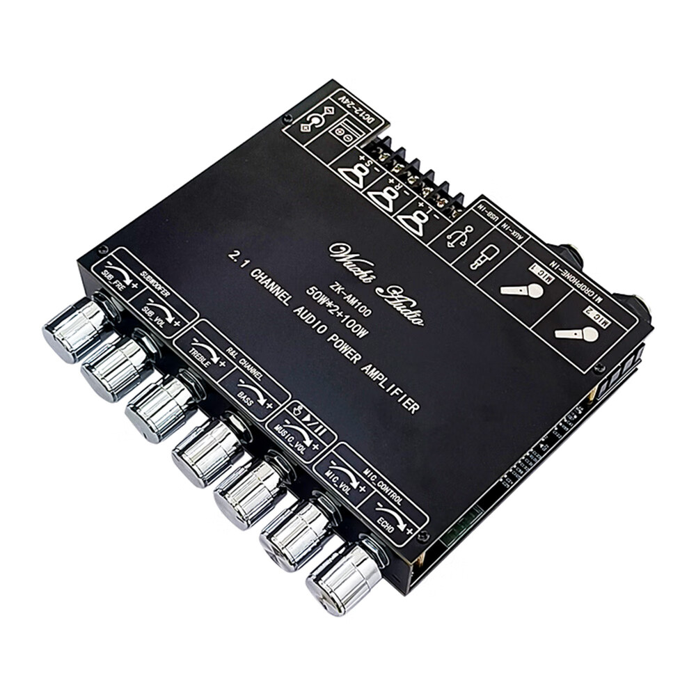 High-power Bluetooth amplifier board ZK-AM100KTV microphone and audio all-in-one machine 2.1 channel TPA3116D2 with shell