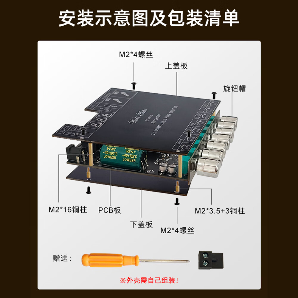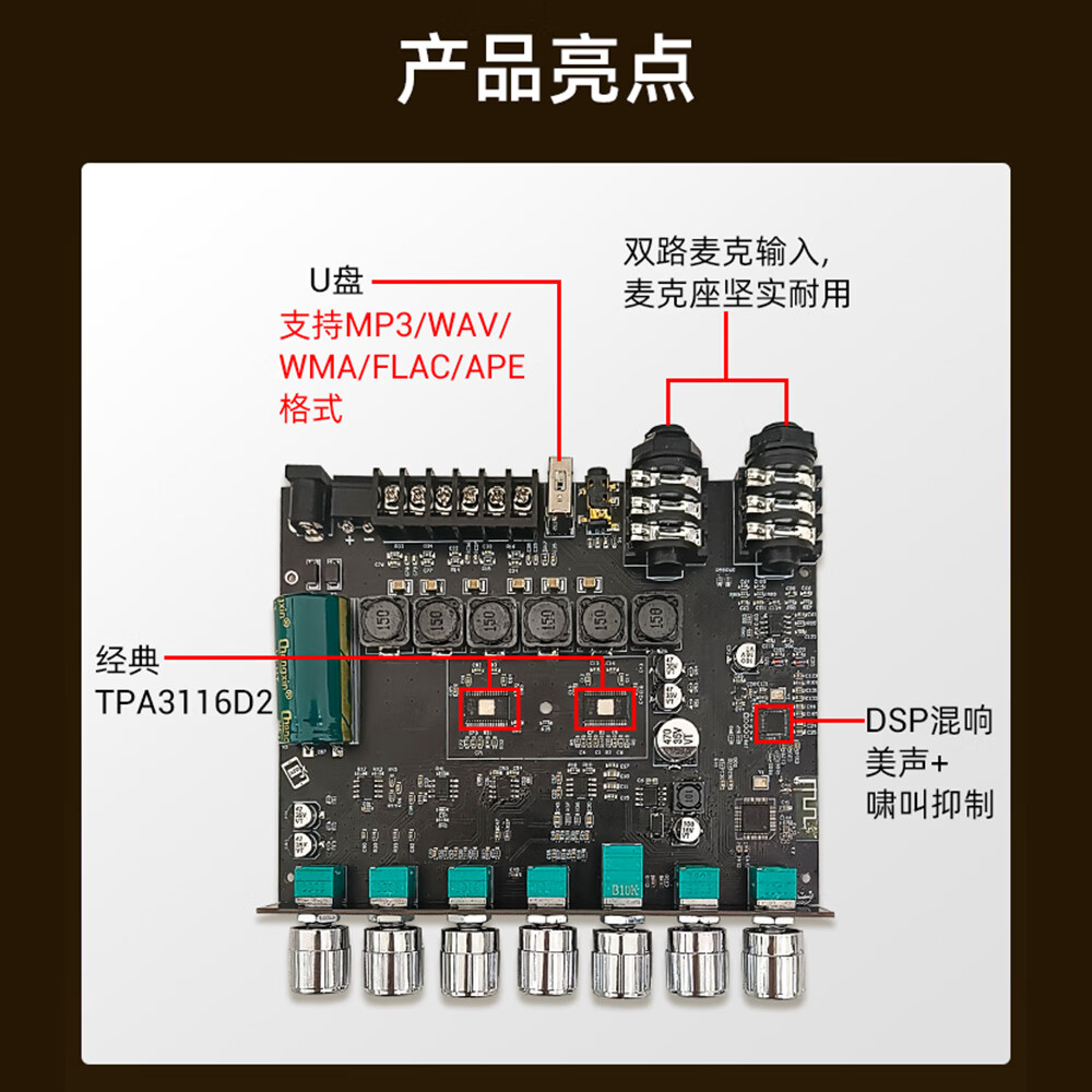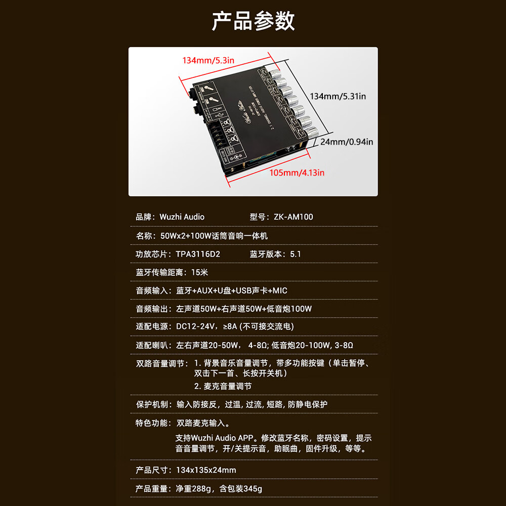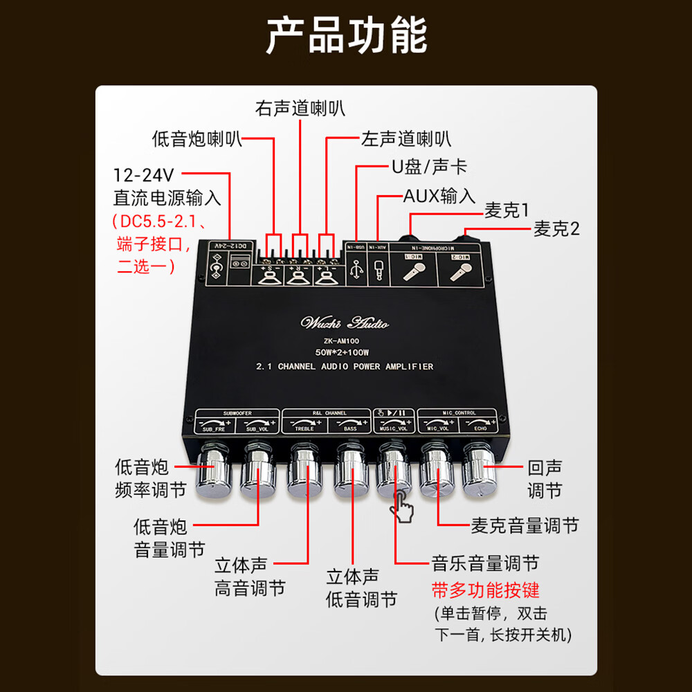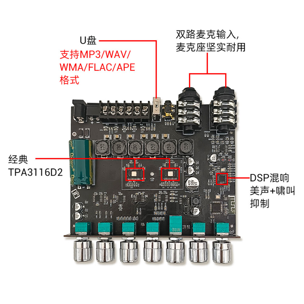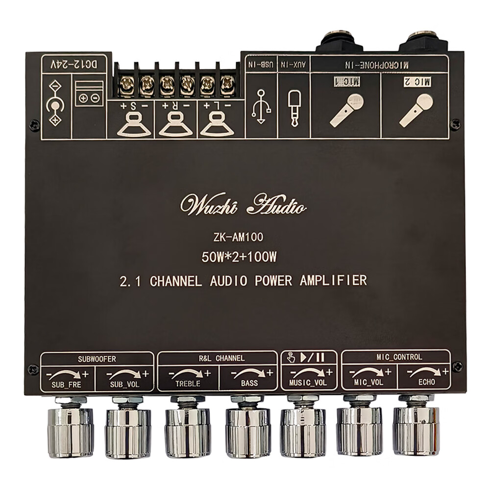 High-power Bluetooth amplifier board ZK-AM100KTV microphone and audio all-in-one machine 2.1 channel TPA3116D2 with shell