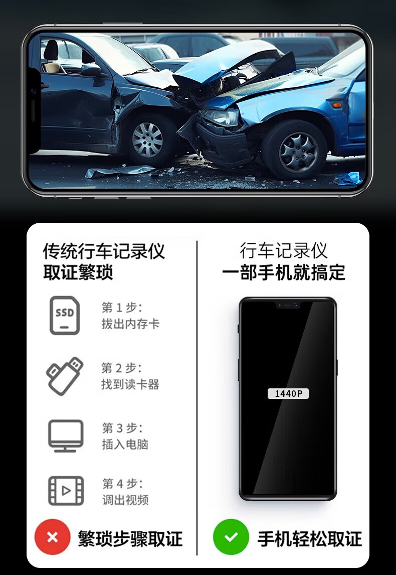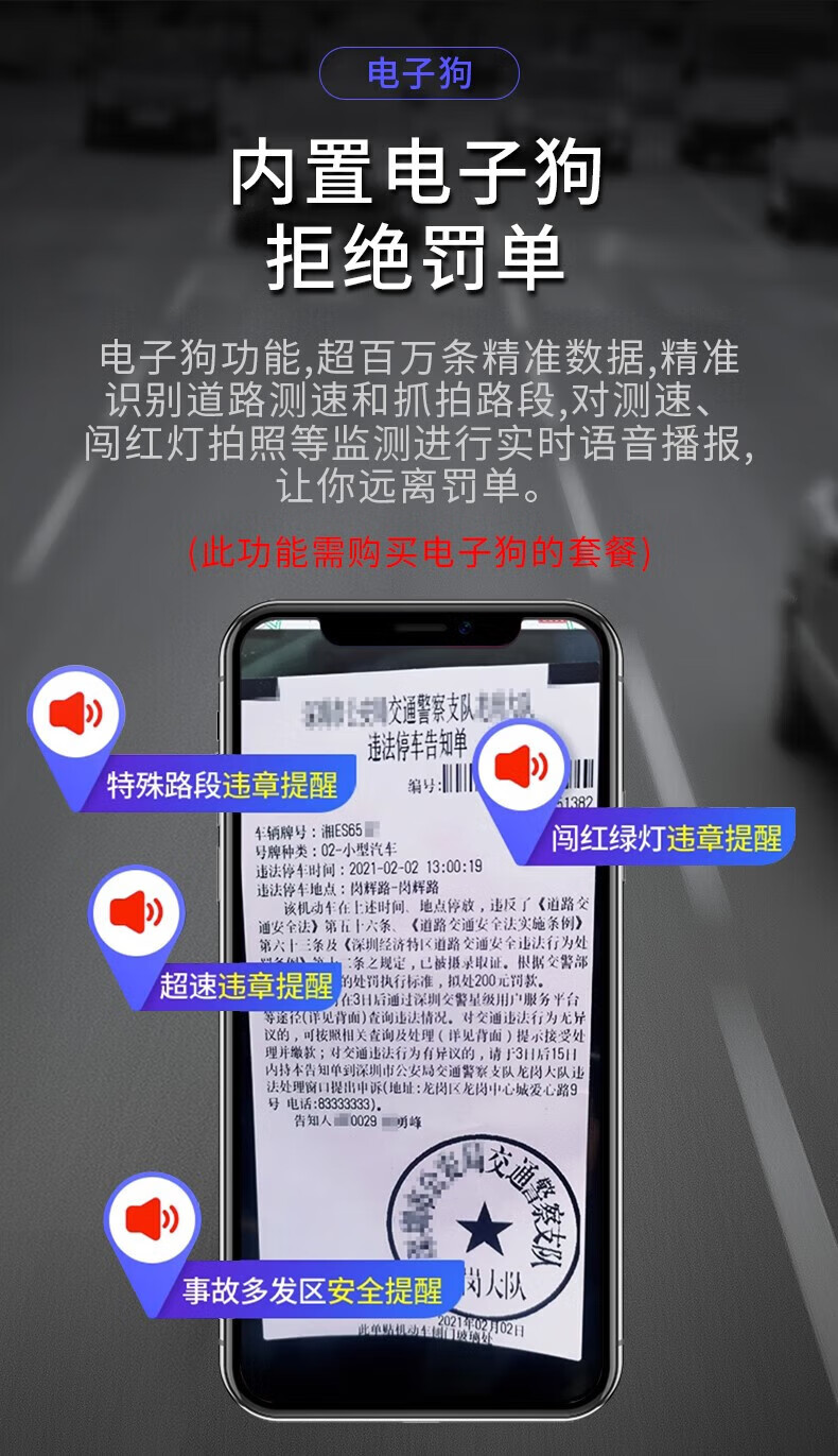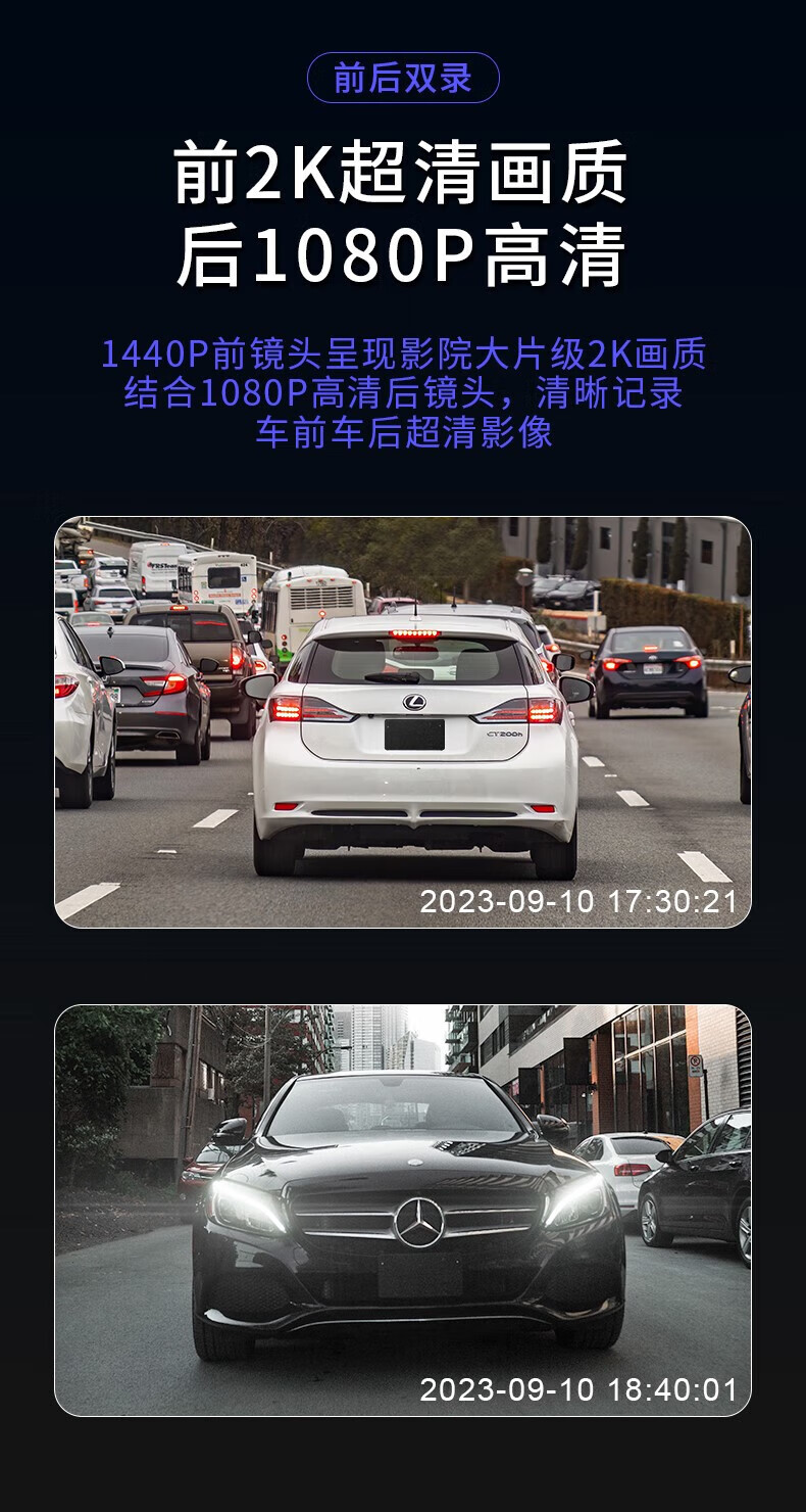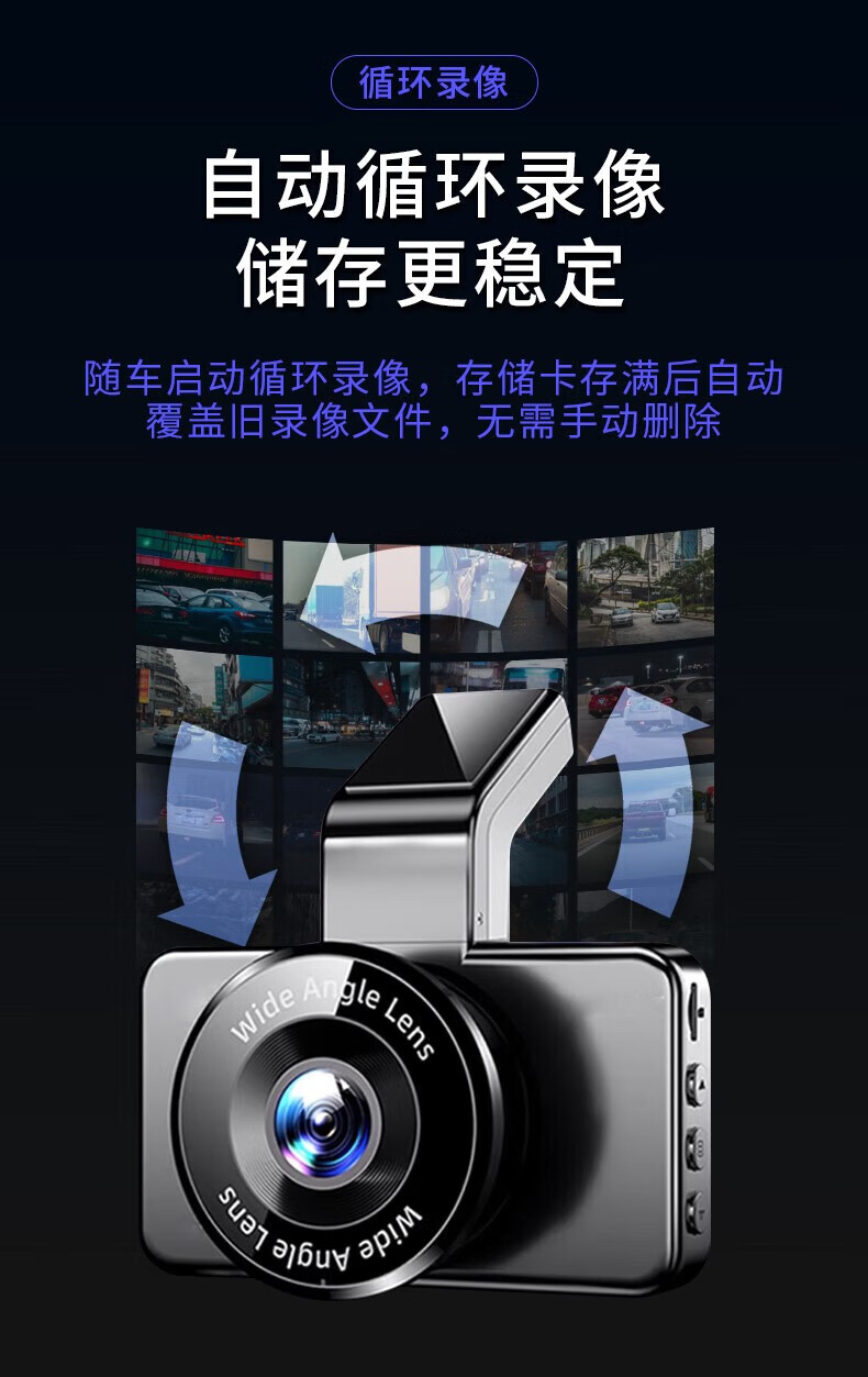 Xiaomi mobile phone universal new driving recorder ultra-high definition night vision APP interconnection front and rear dual recording 360 panoramic single lens high-definition standard version does not come with a card