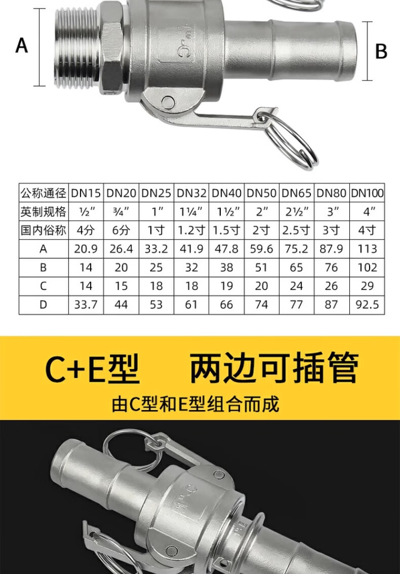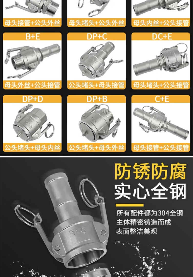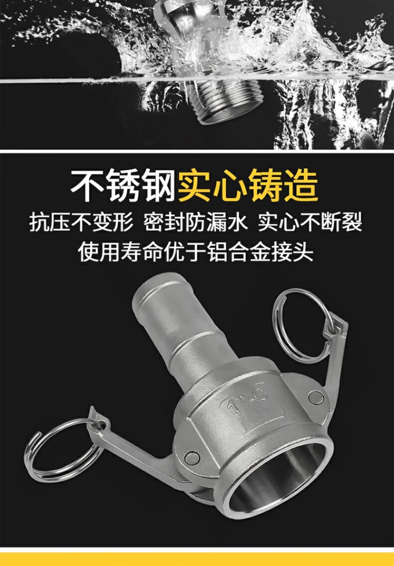 Jinchao 304 stainless steel quick connector snap-on union 4/6 points 1/2/3 inch water pump water pipe joint collection A+B type DN80/3 inch-304 material