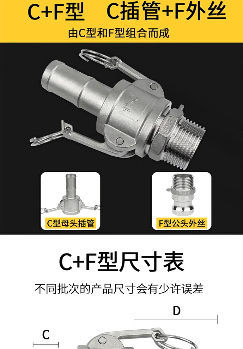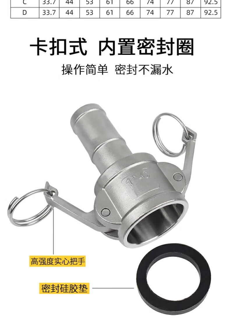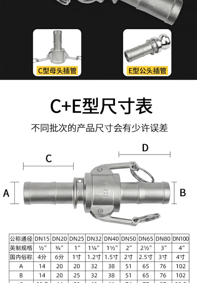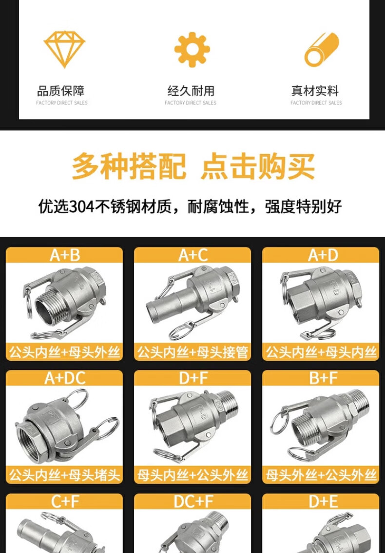 Jinchao 304 stainless steel quick connector snap-on union 4/6 points 1/2/3 inch water pump water pipe joint collection A+B type DN80/3 inch-304 material
