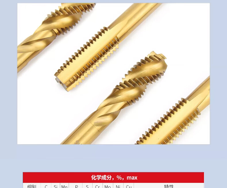 Gold super straight flute screw machine with cobalt threaded stainless steel special tap machine tapping drill bit m2m3m4m5m6m8 straight flute tap M4*0.7 (cobalt-containing titanium plating)