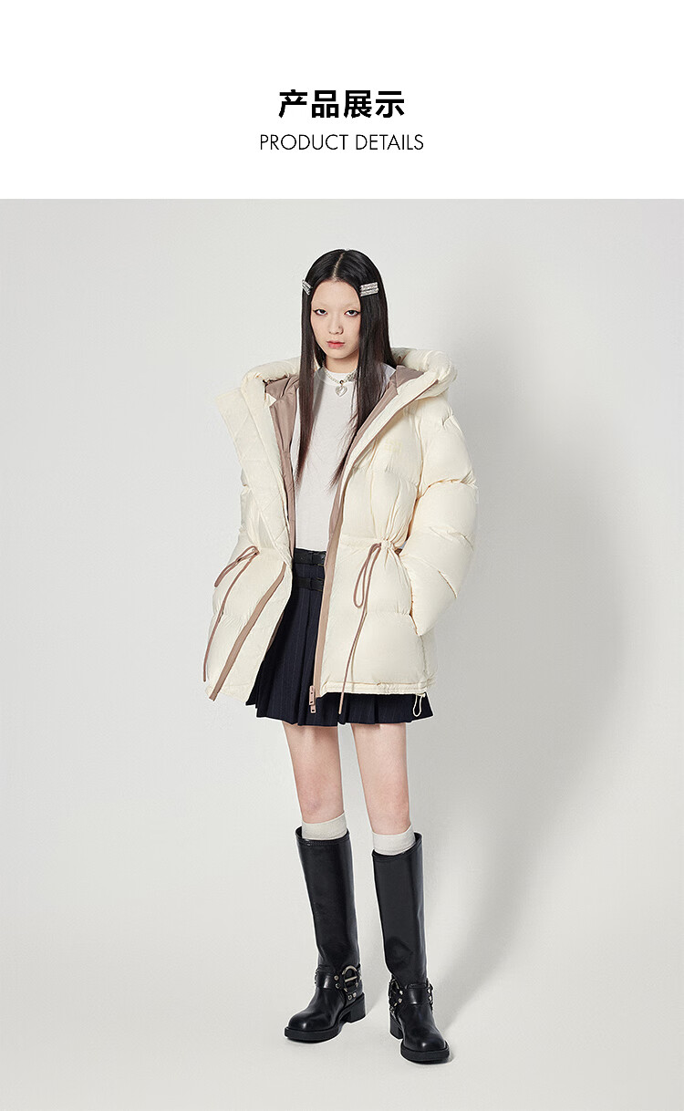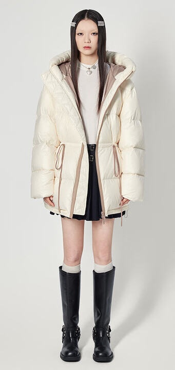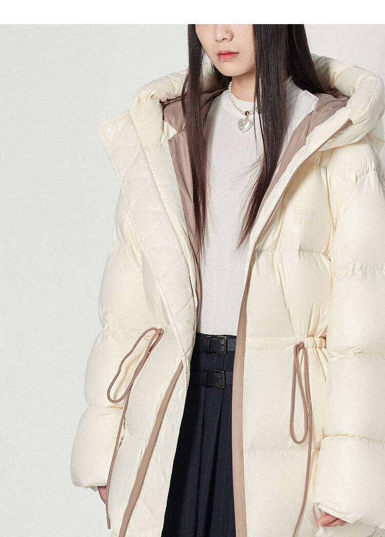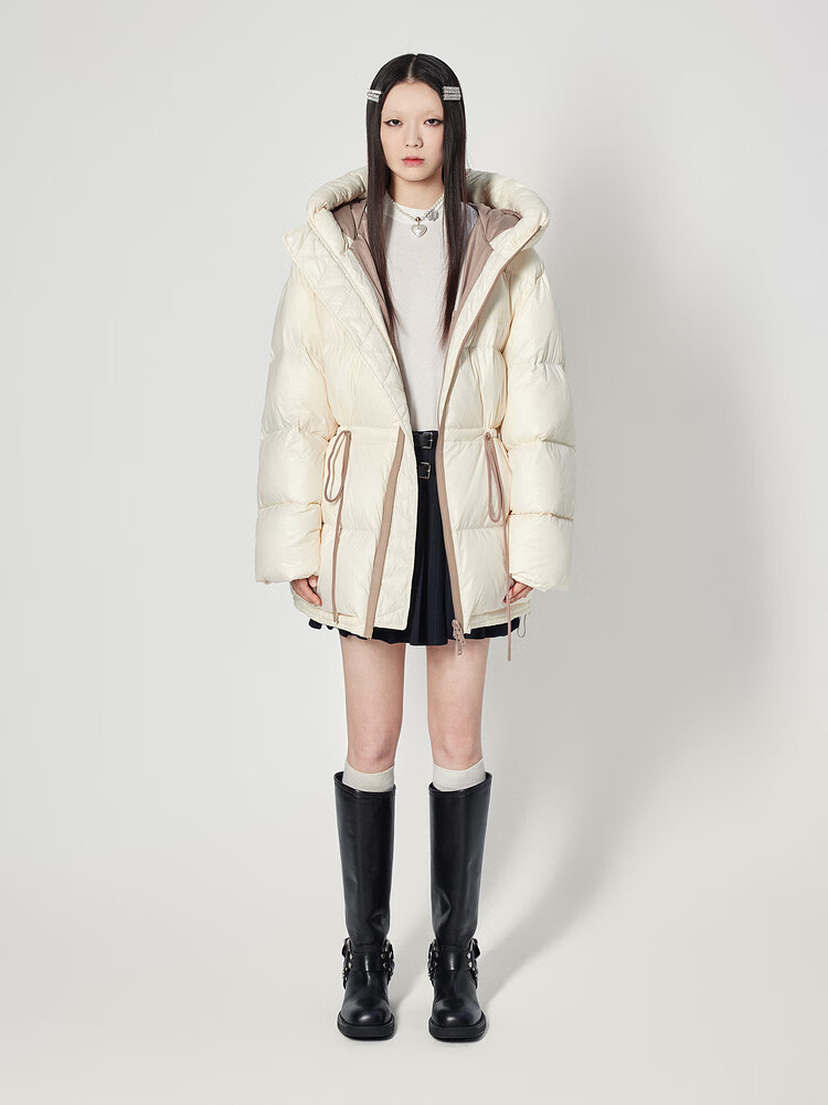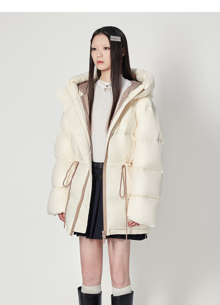 DZZIT mid-length down jacket autumn and winter puff down contrast drawstring design for women white XS