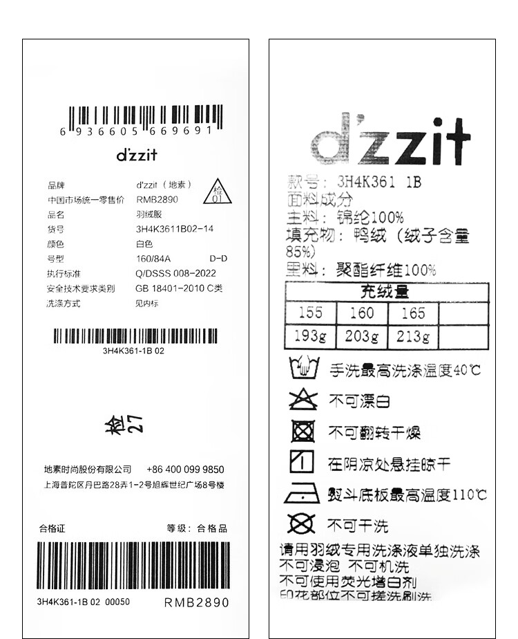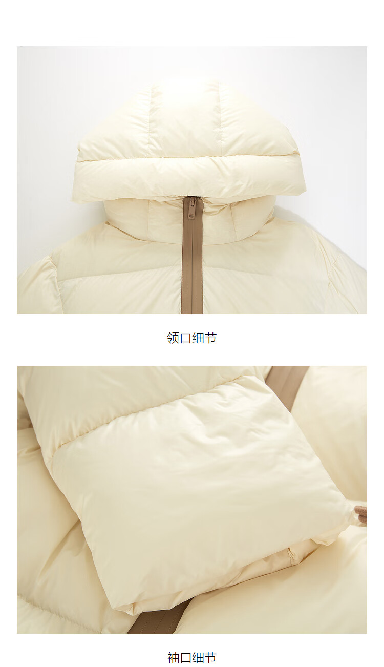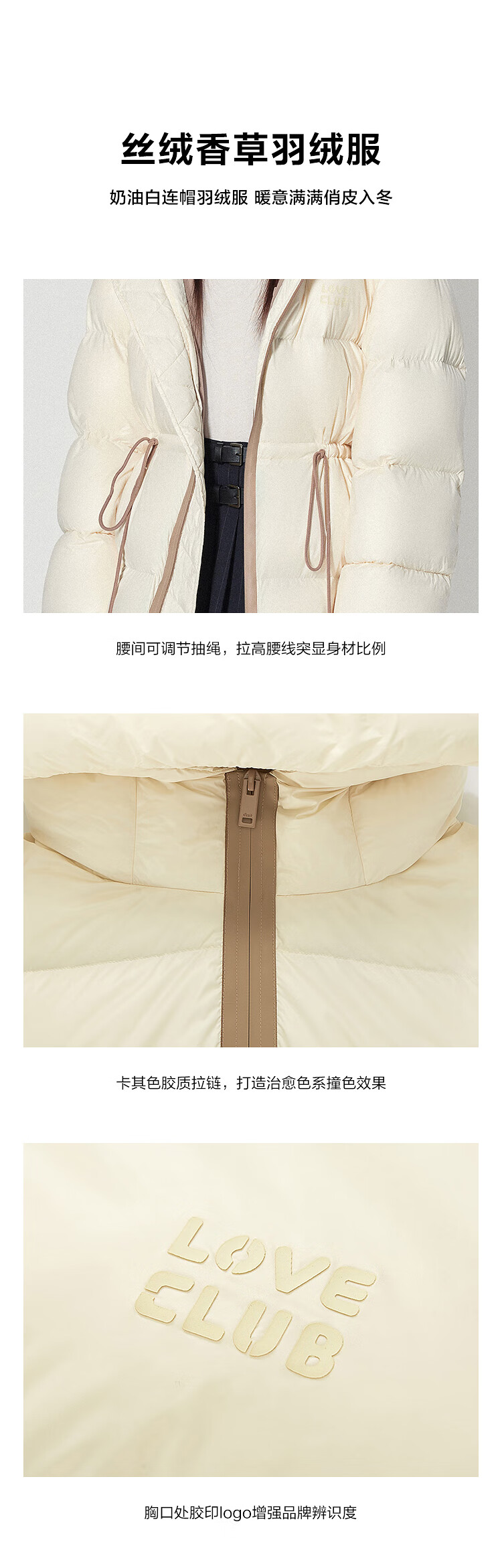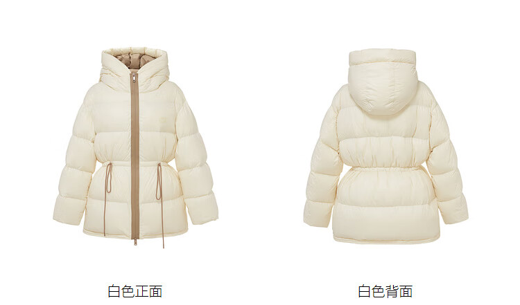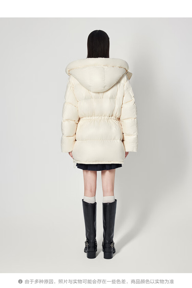 DZZIT mid-length down jacket autumn and winter puff down contrast drawstring design for women white XS