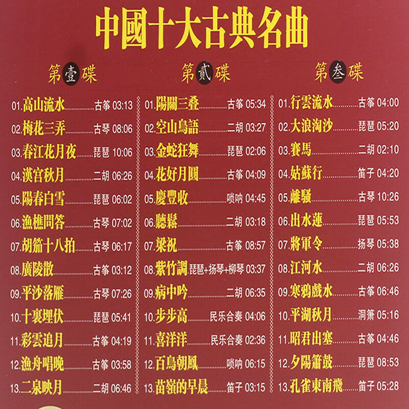 Genuine records, China's top ten classical music, pure music of the national instrument Guqin and Guzheng, car CDs, lossless music, 3CD discs, 24K gold discs