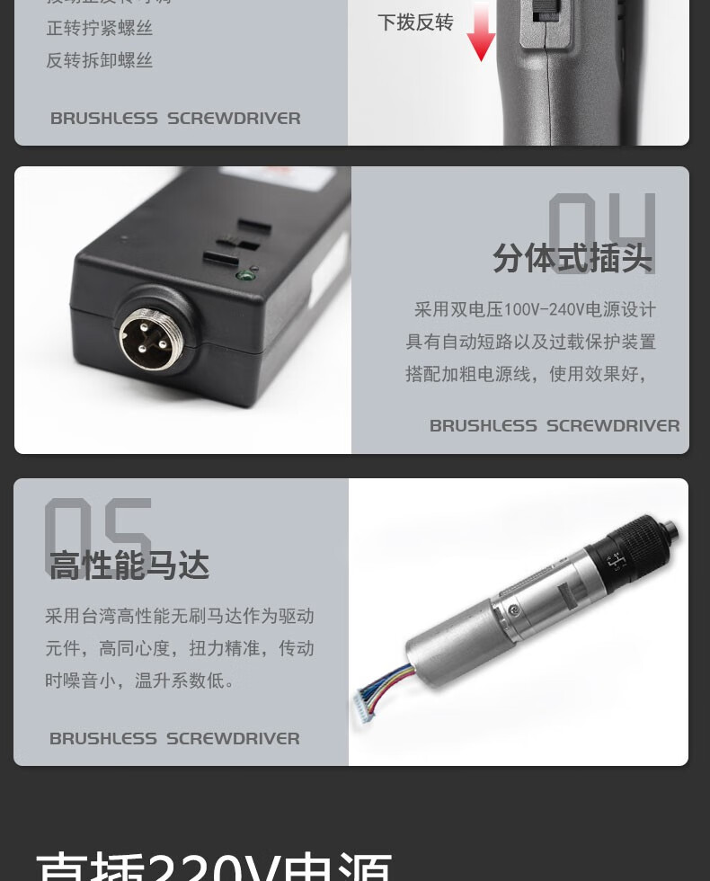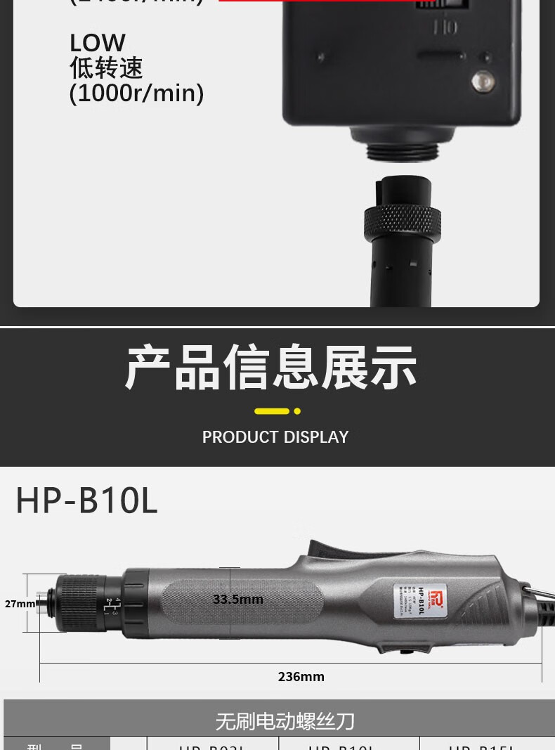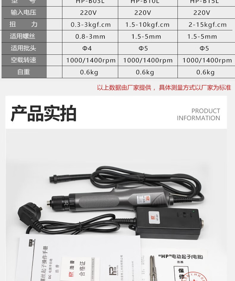 HP factory electric screwdriver brushless motor adjustable fully automatic electric batch industrial grade 220V plug-in electric screwdriver HP-B10L (1.5-10 kg hand model)