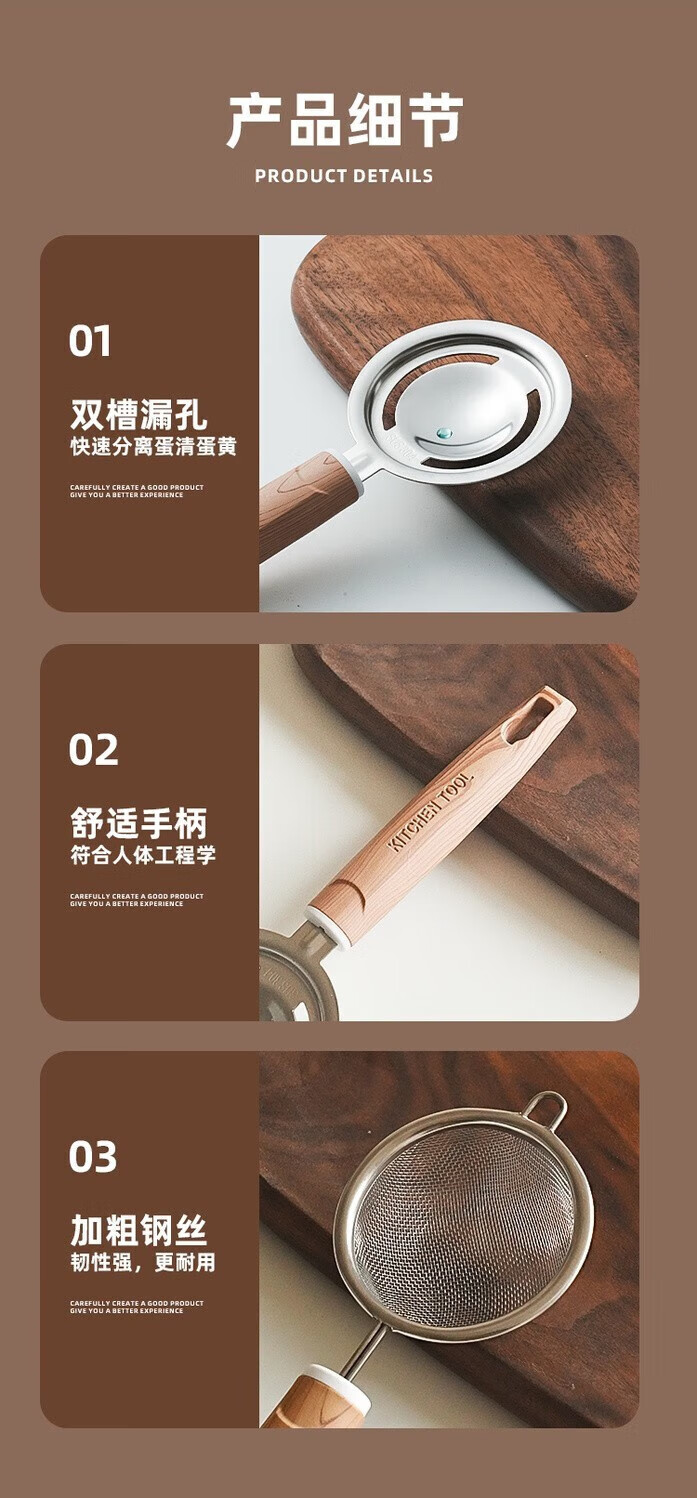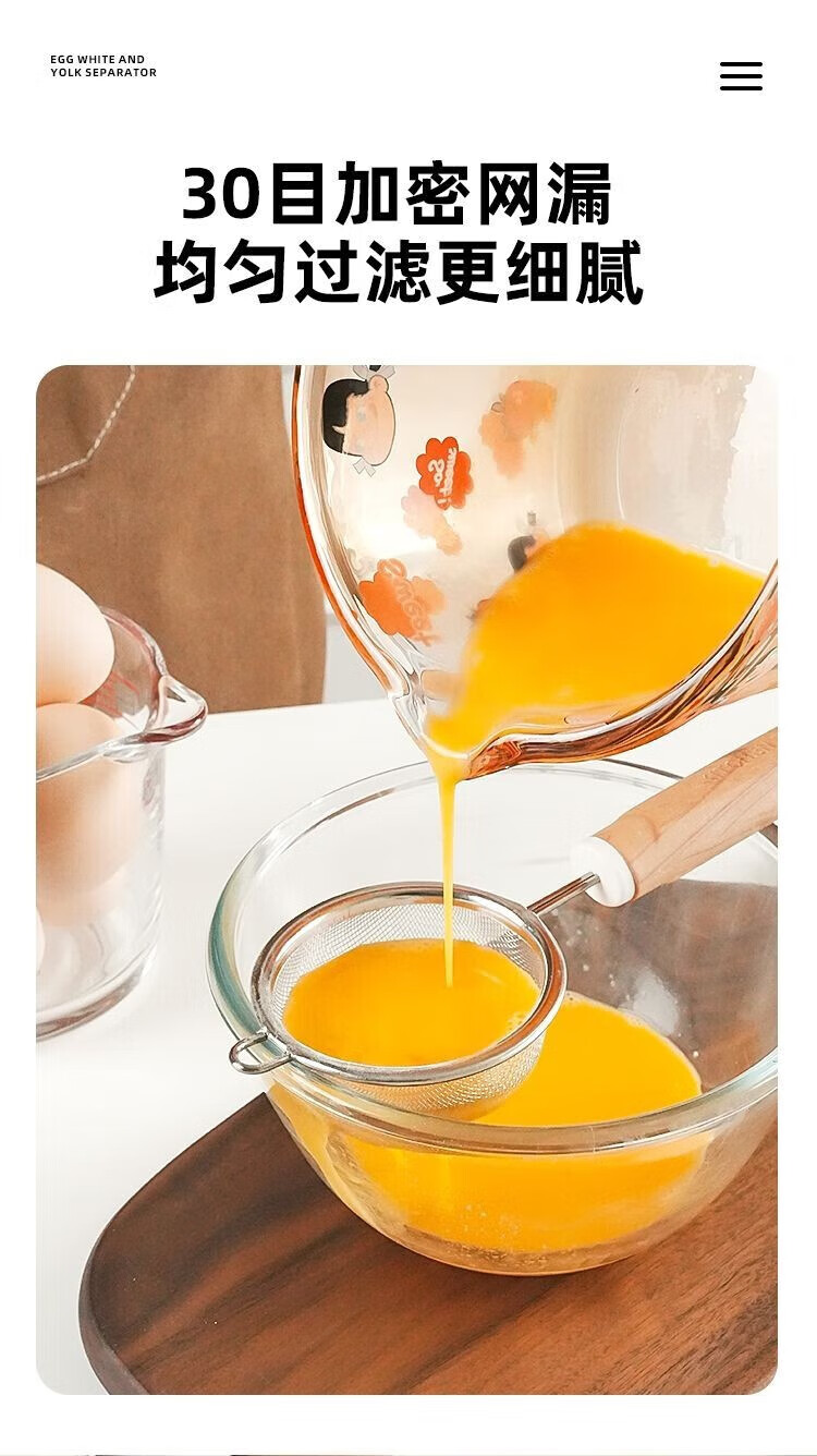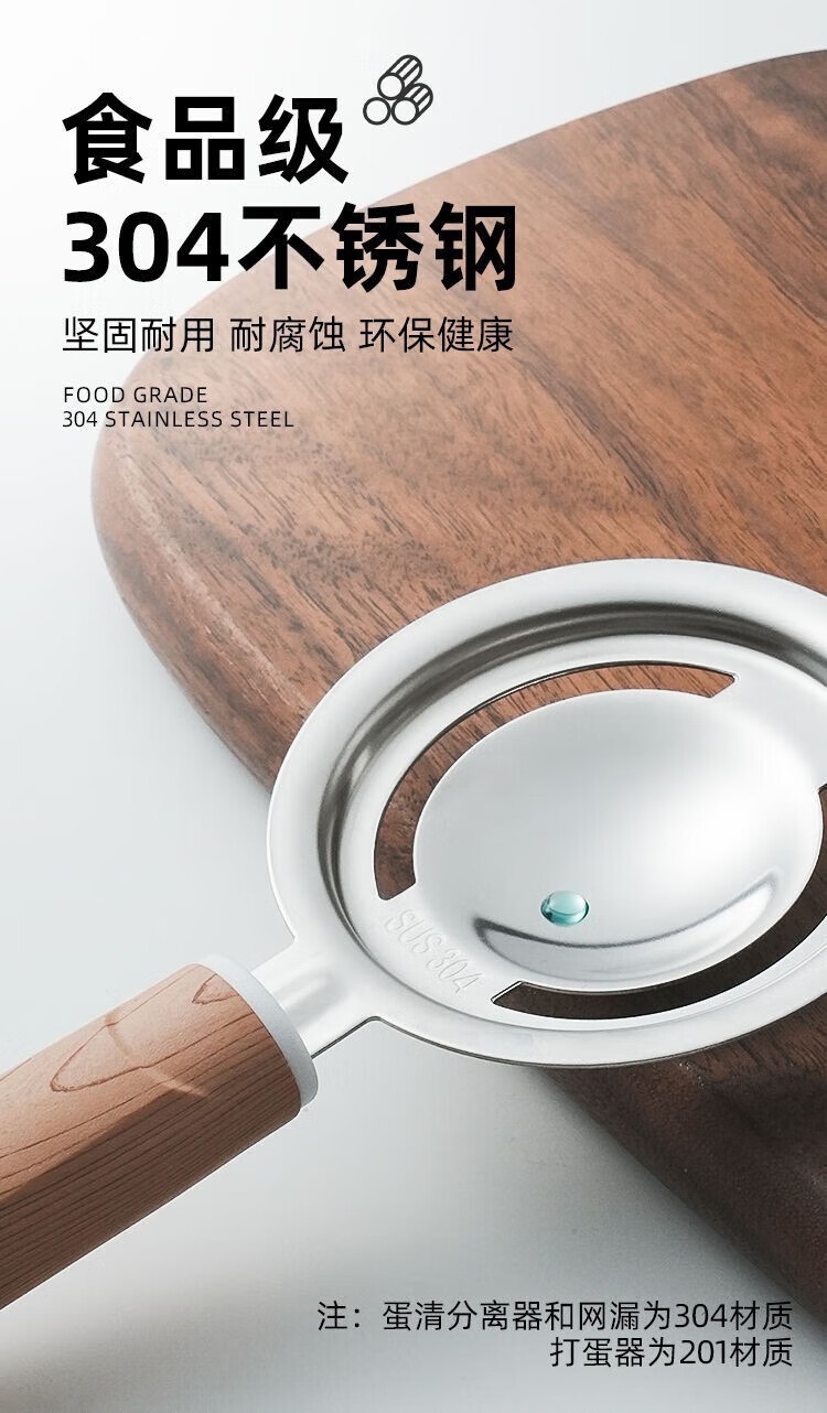 Baige 304 stainless steel egg beater, mesh colander, egg white separator, kitchen egg mixer, baking food supplement tool, egg beater + egg white separator + mesh drain