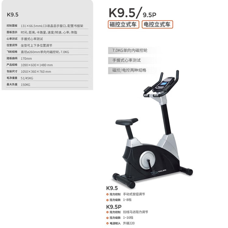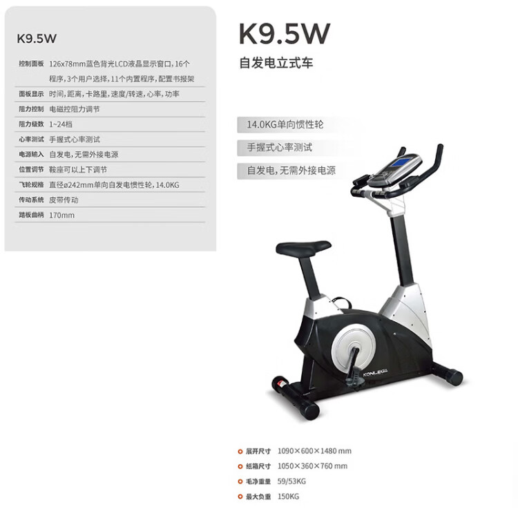 Kang Lejia high-end commercial upright exercise bike magnetically controlled K9.5 gym professional aerobic exercise bike indoor bicycle 24-speed self-powered upright exercise bike K9.5W