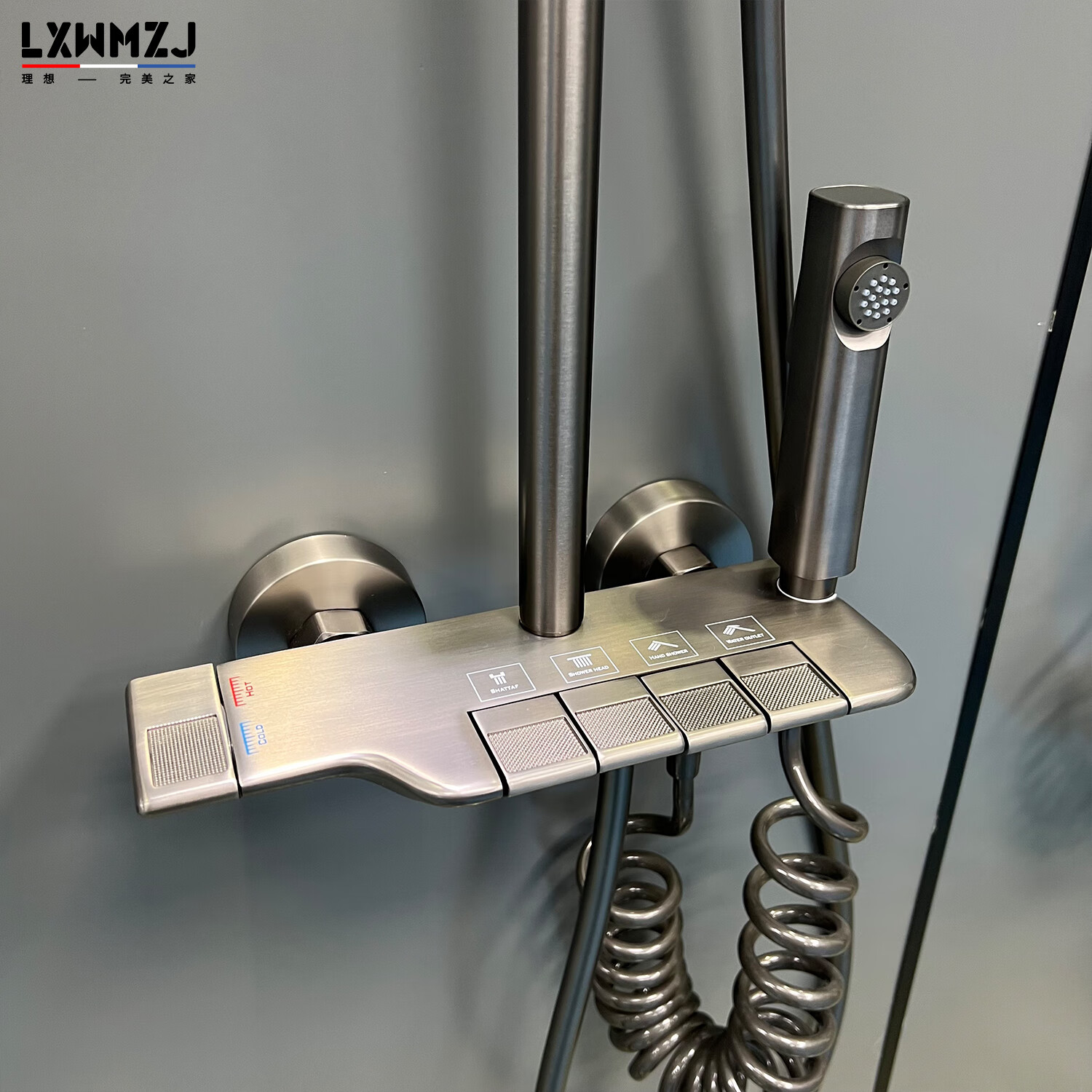 LXWMZJ brand/original minimalist four-function four-outlet piano button design shower head gun gray hot and cold style