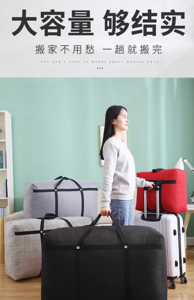 Zhiyu Extra Large Capacity Oxford Cloth Moving Packing Bag Thickened Clothes Quilt Storage Bag Luggage Packing Bag Snakeskin Bag Black-Large Thick Oxford Cloth