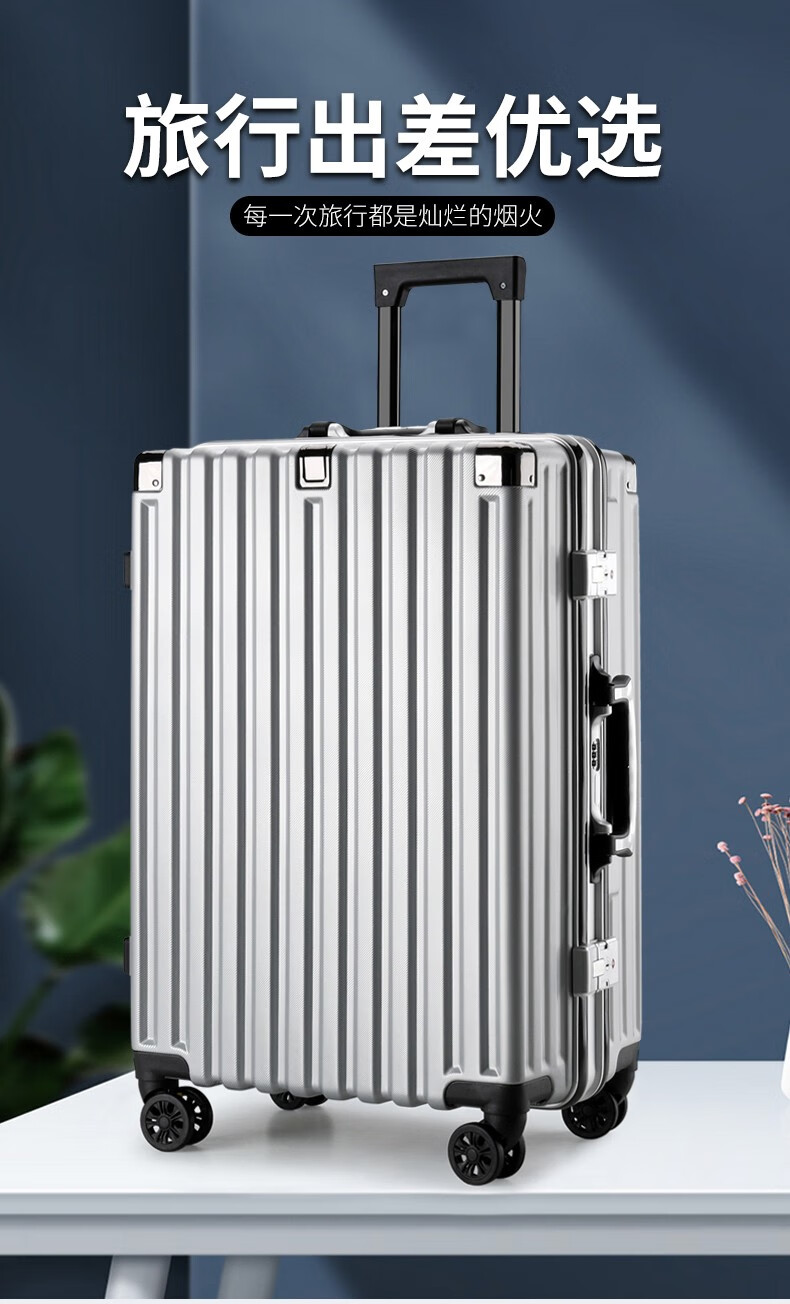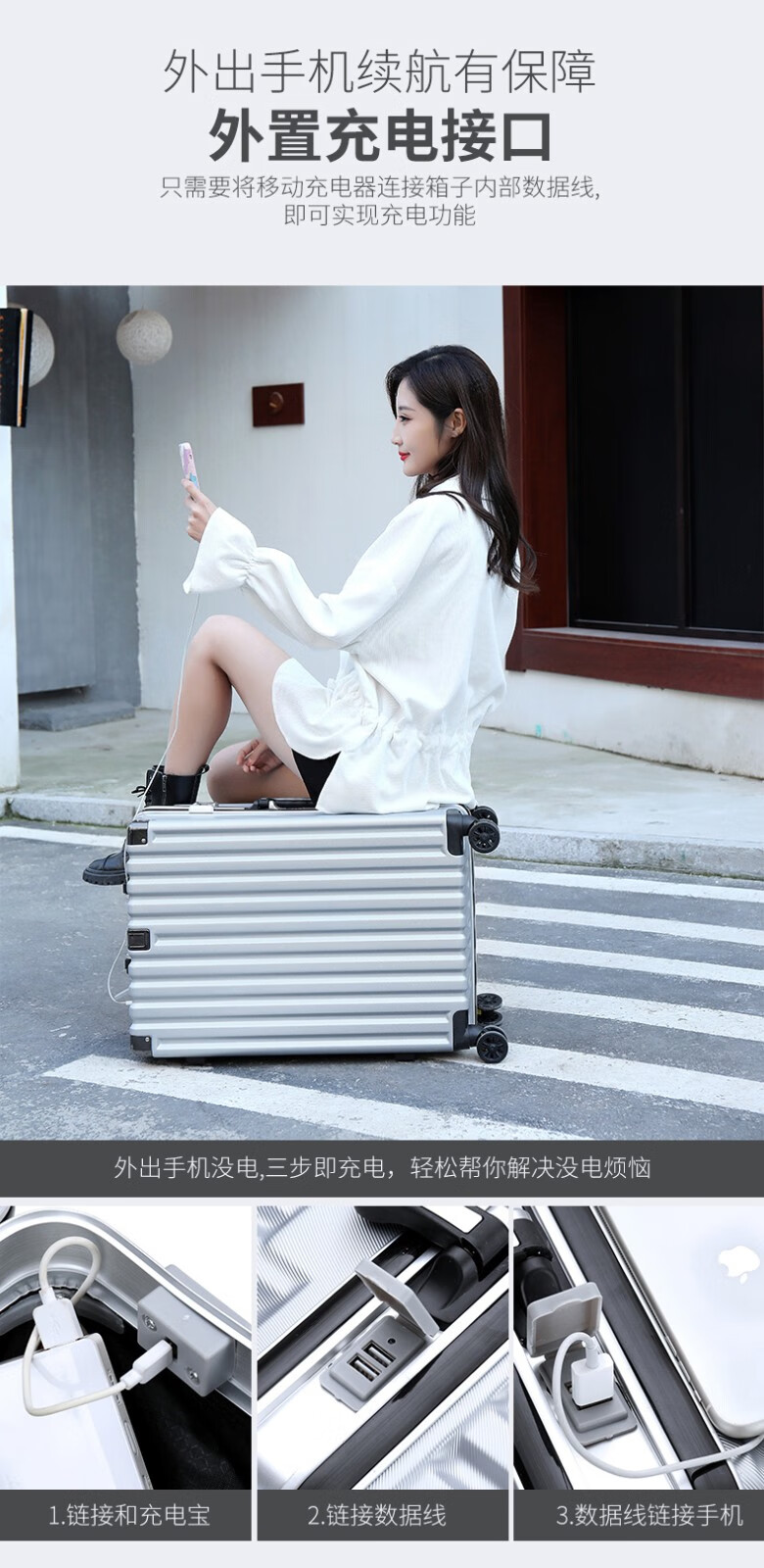 Diston Paul (DISIDUNBAOLUO) suitcase men's large-capacity aluminum frame trolley case thickened student password box high-value suitcase travel boarding case dark night black strong and durable - charging port 26 inches student accommodation