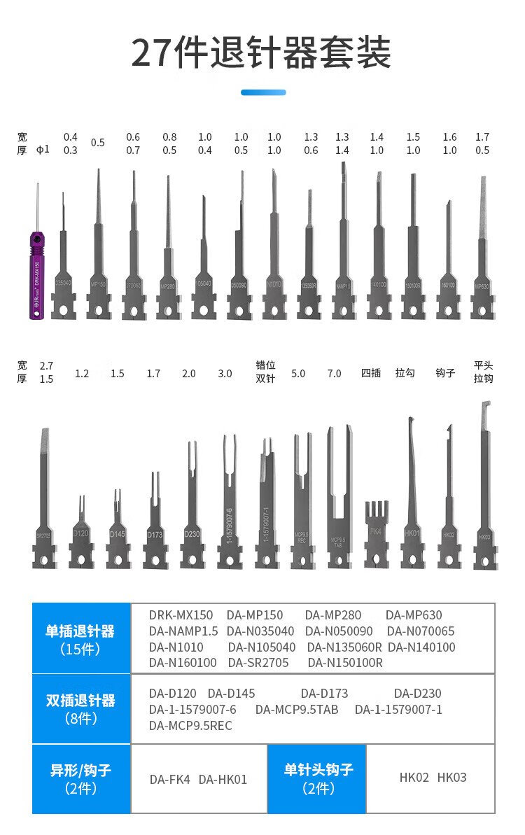 JRready Automotive Wiring Harness Pin Remover Audi Volkswagen Power Plug Terminal Push Pin Connector Pick Pin Removal Repair Tool ST5284-1 27-piece Set Multi-Purpose Needle Remover