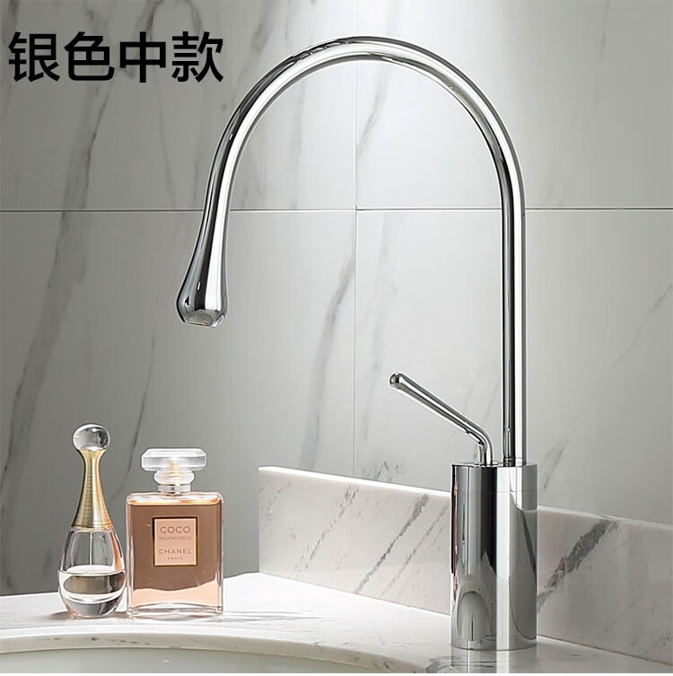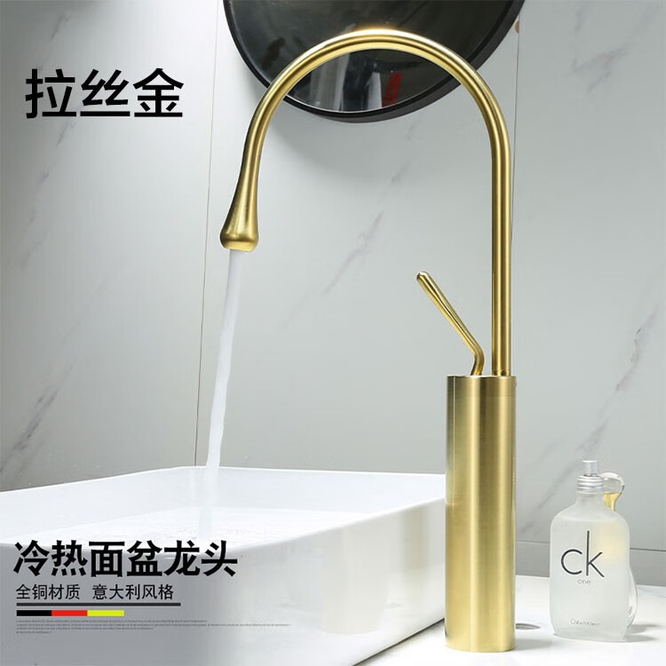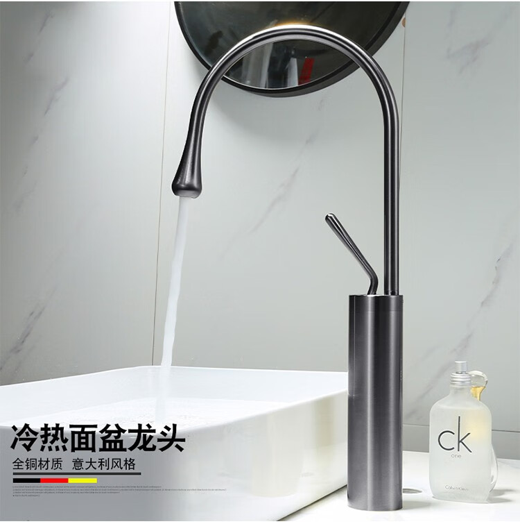Qian Dushan countertop basin heightened faucet gun gray brushed gold all copper hot and cold wash basin wash basin laundry pool water drop all copper light style silver medium style