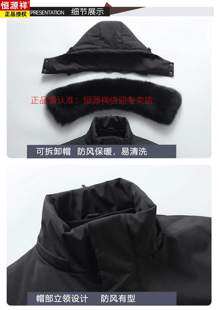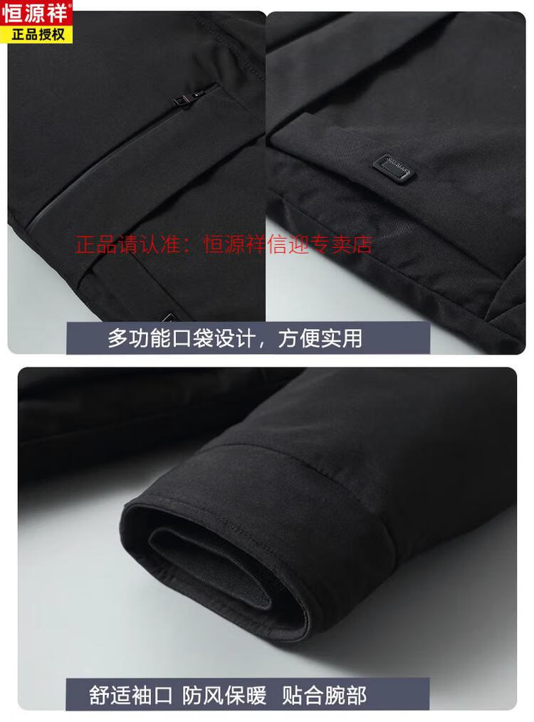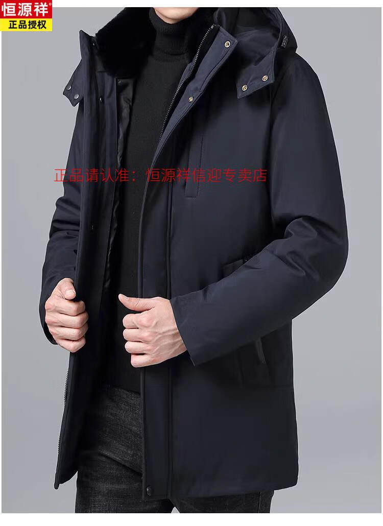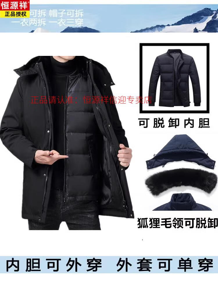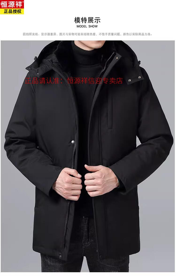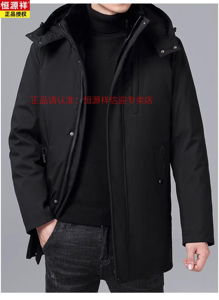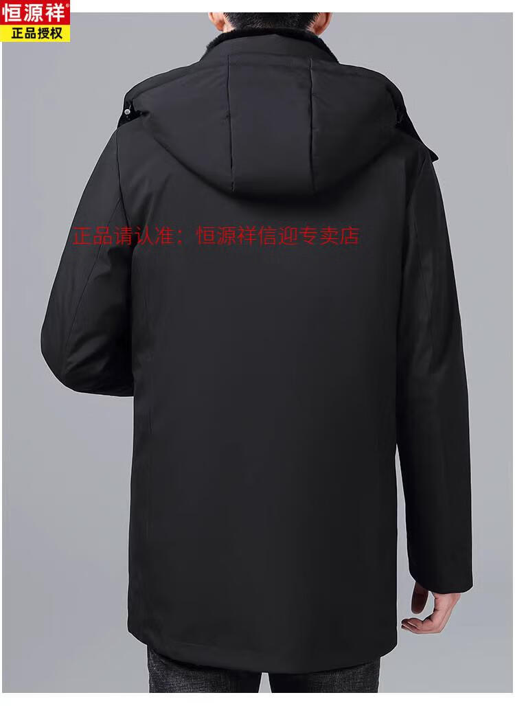 Hengyuanxiang middle-aged and elderly down jacket men's thickened medium-length middle-aged father's removable liner elderly winter jacket black hairless M weight 90-110 catties