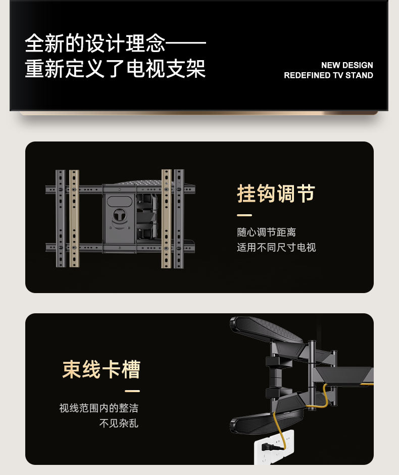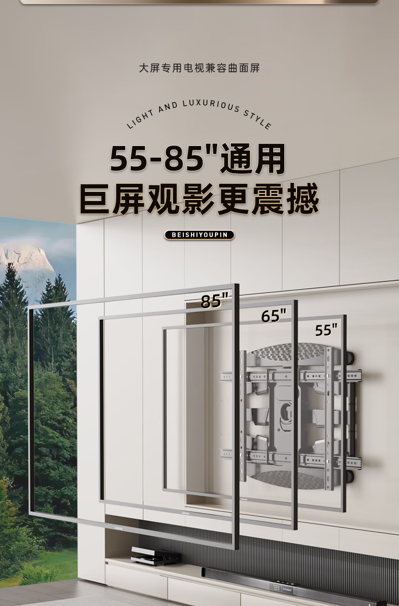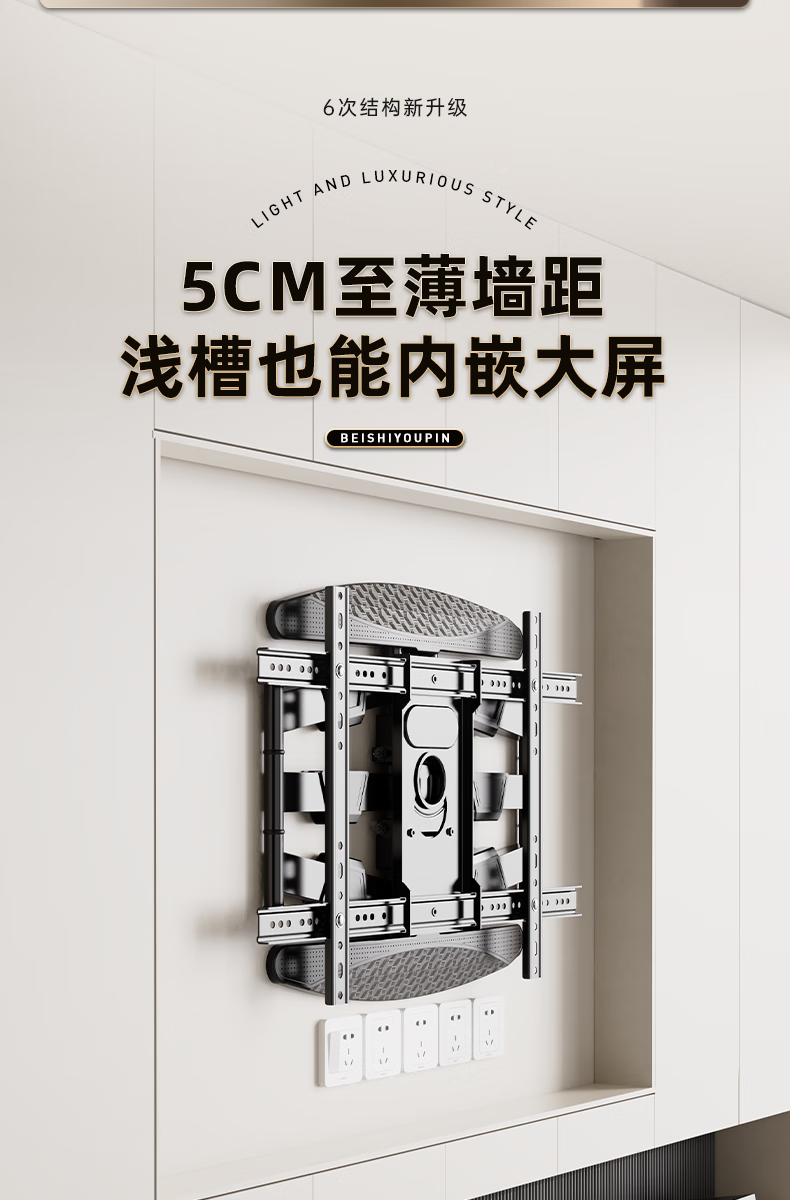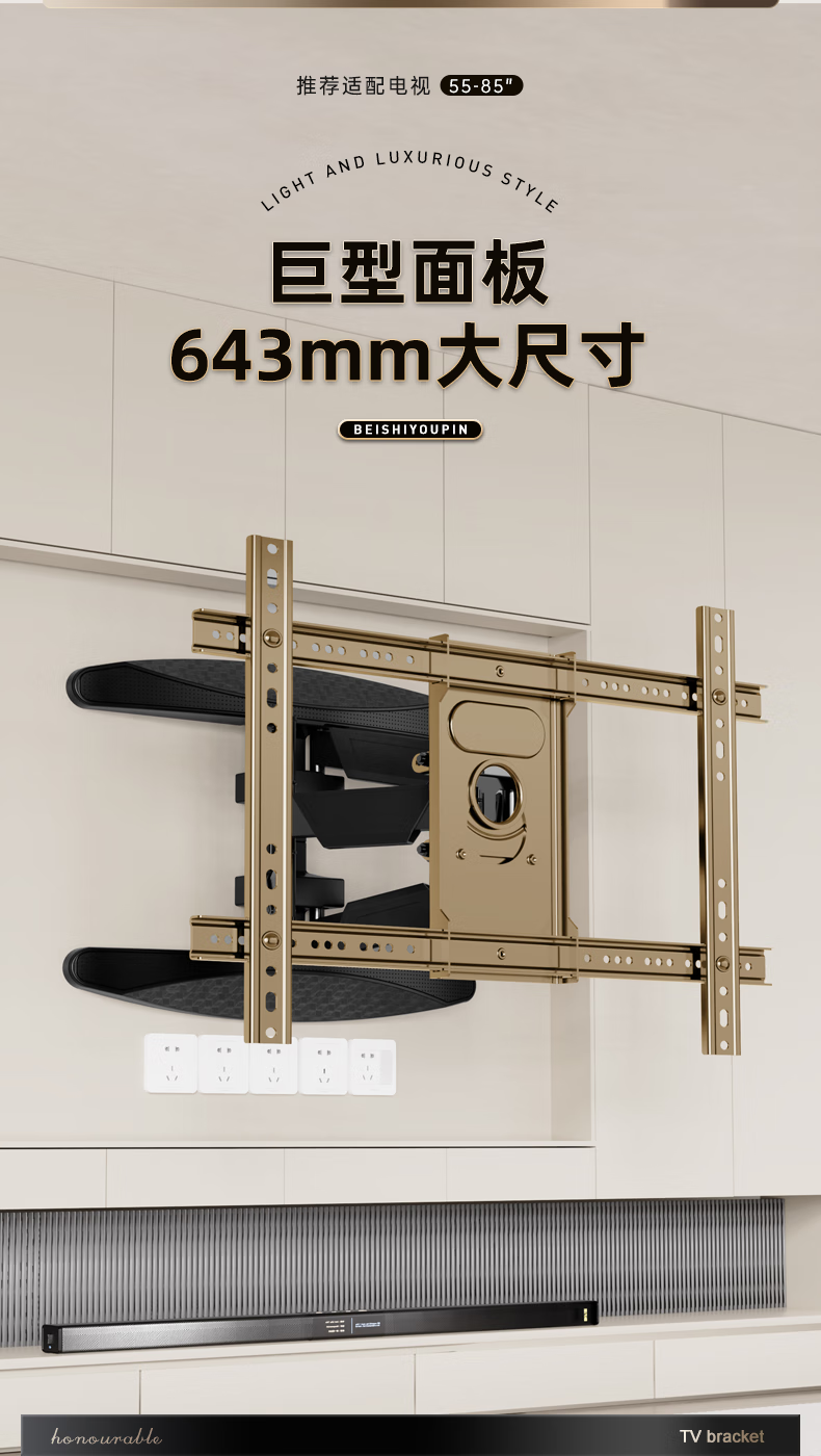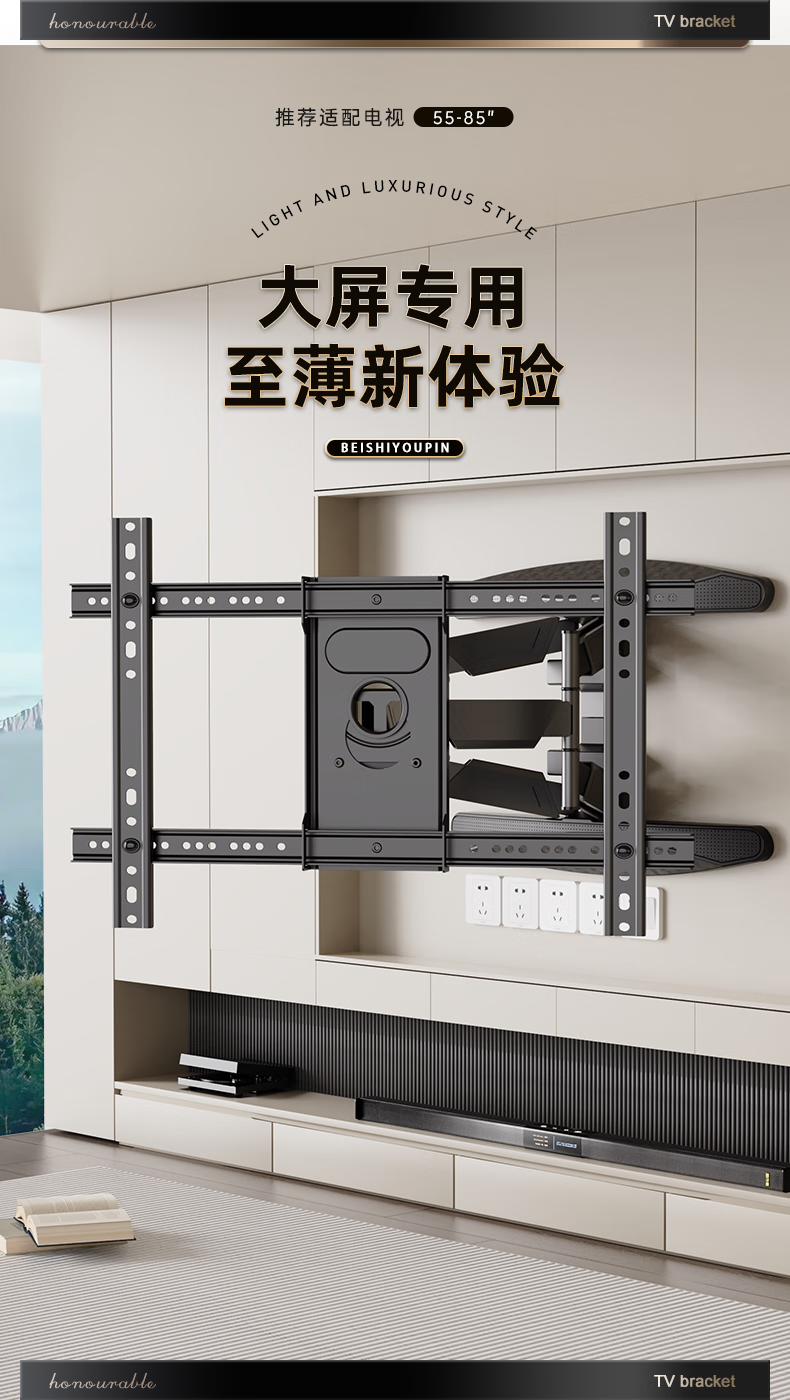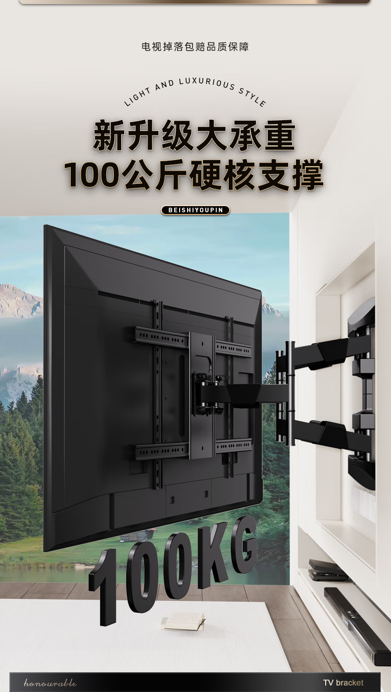 Beishi TV Telescopic Rack Universal TV Bracket TV Rotating Wall Mount Suitable for Konka Changhong Hisense Thunderbird TCL Sony Skyworth Coolkai and other TV racks 55-100 inches eight-arm solid shaft/3.8cm ultra-thin wall mount