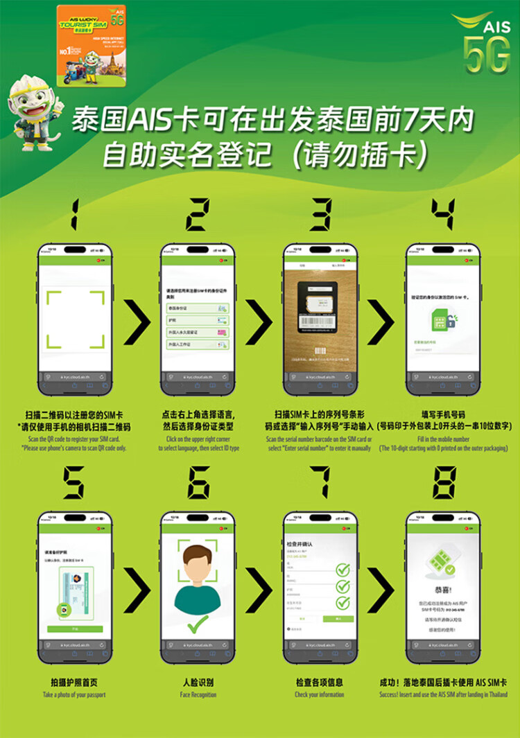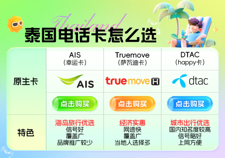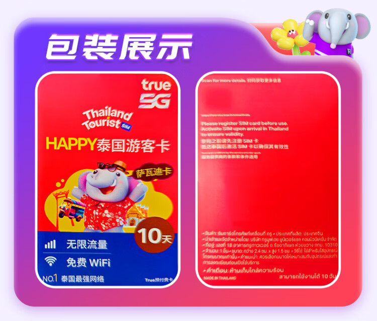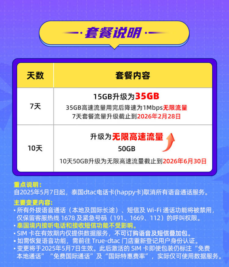 Thailand phone card DTAC/TRUE/AIS/happy card 5G network high-speed Internet card unlimited traffic optional 7-day unlimited traffic + DTAC native Internet card