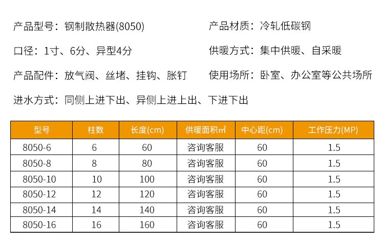 Seaside steel radiator household water heating radiator bathroom wall-mounted vertical exposed central heating natural radiator thickened internal anti-corrosion 4 columns long 0.405 meters 0.8m