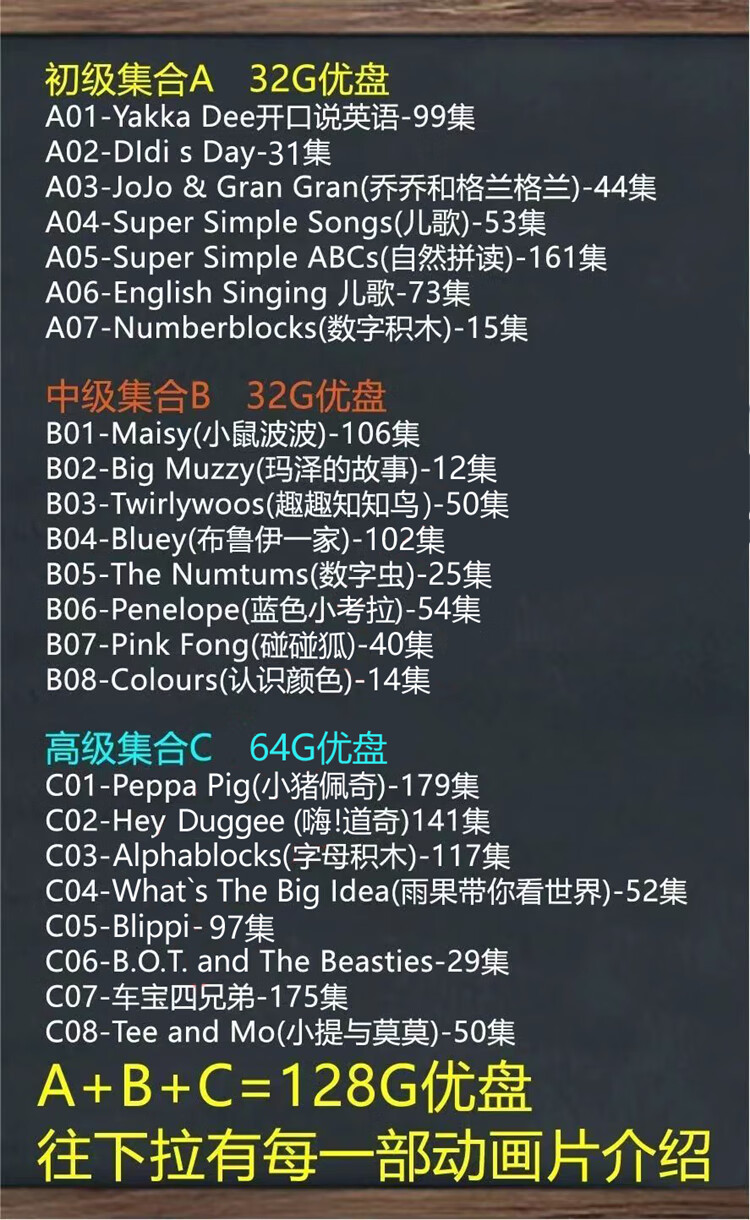 English enlightenment cartoon U disk for children to learn English from scratch Momo speaks English Yakka Dee 128G-A+B+C set U disk