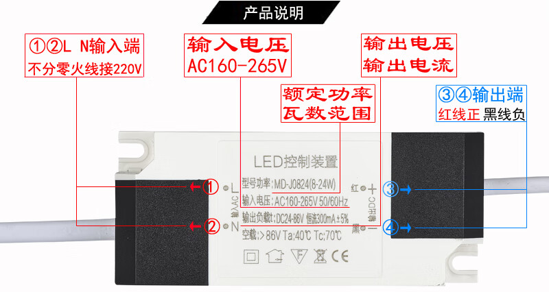 LED lamp power driver constant current driver ballast transformer rectifier controller 8W24W36W50W 8-36w plastic case male terminal