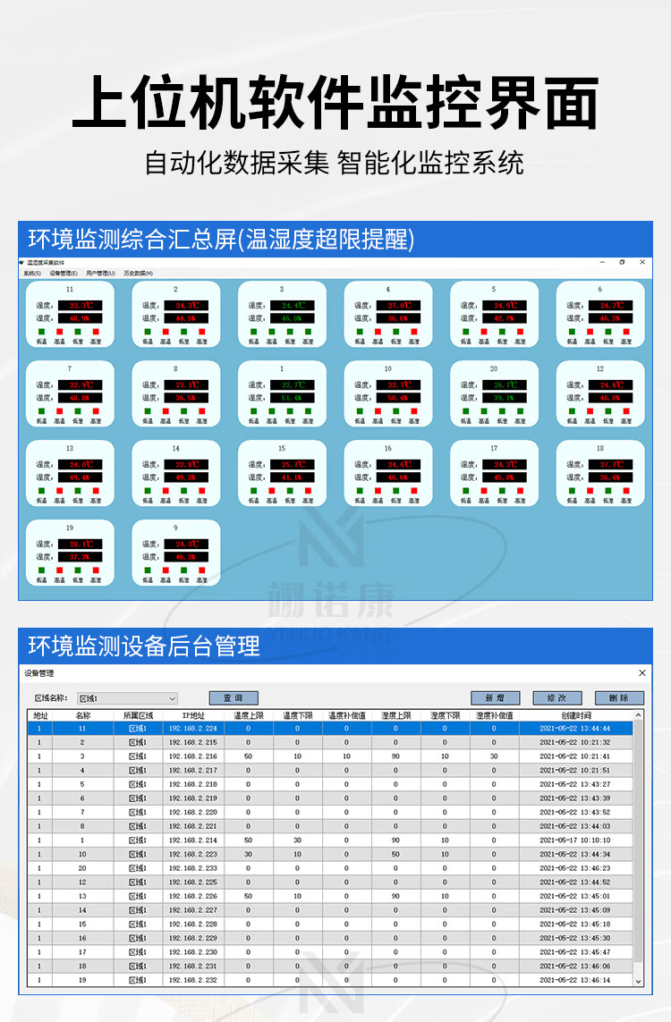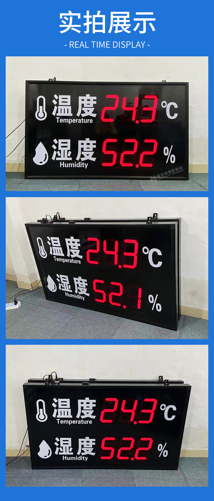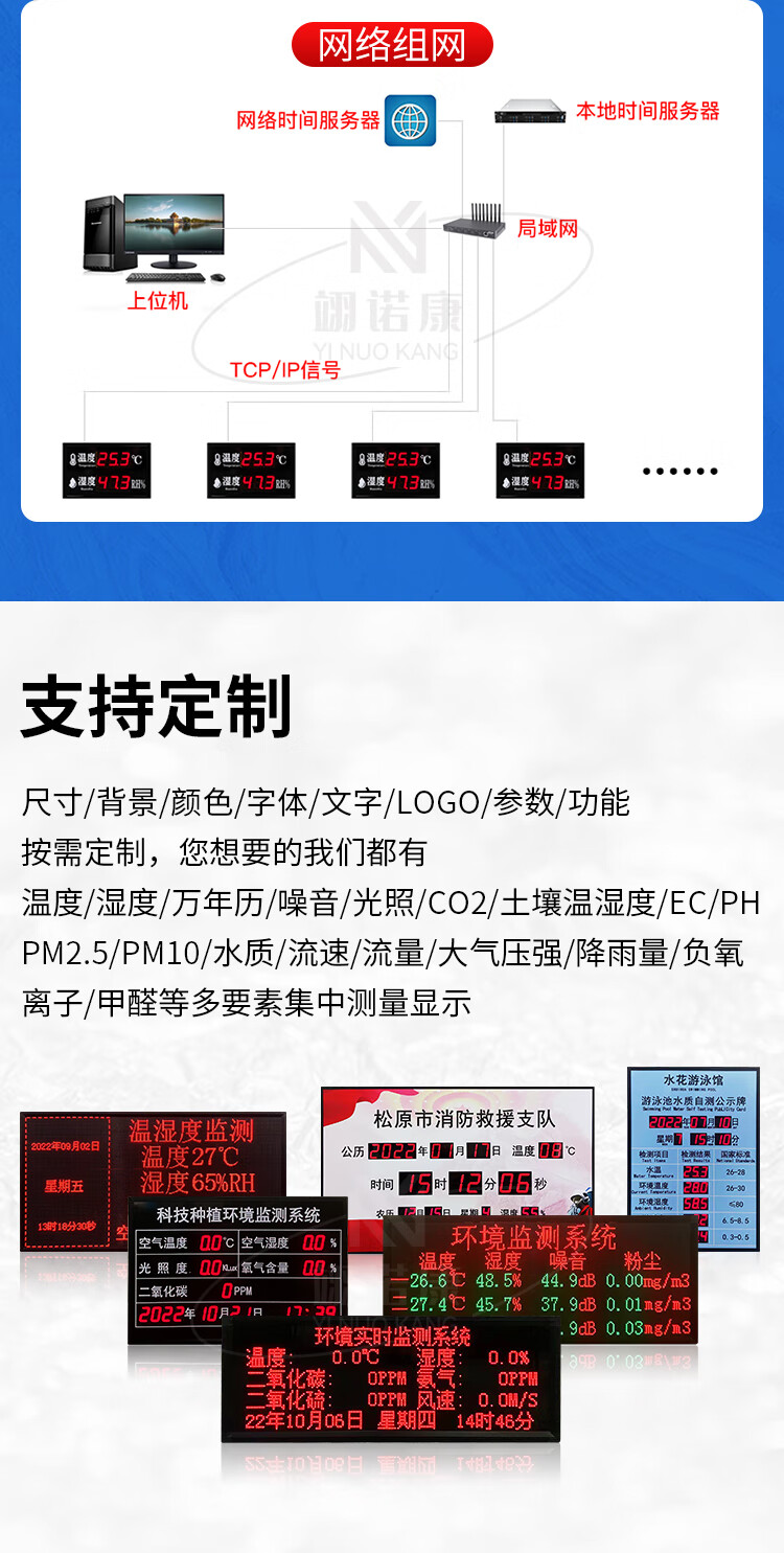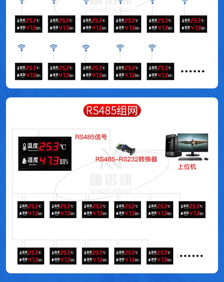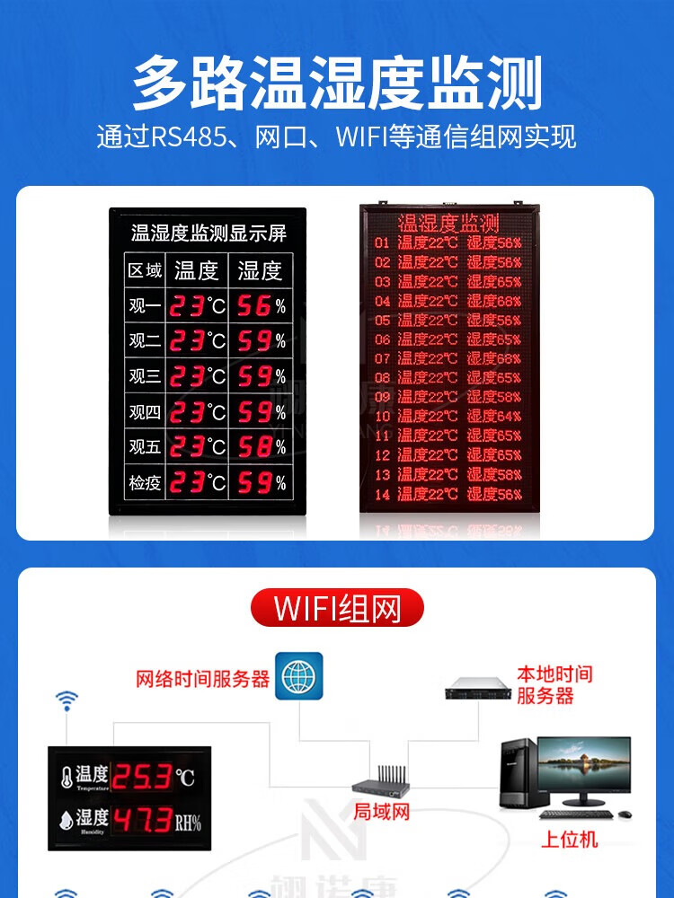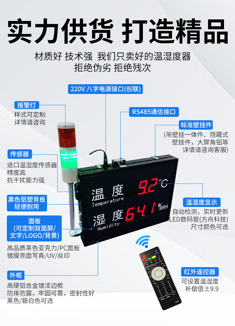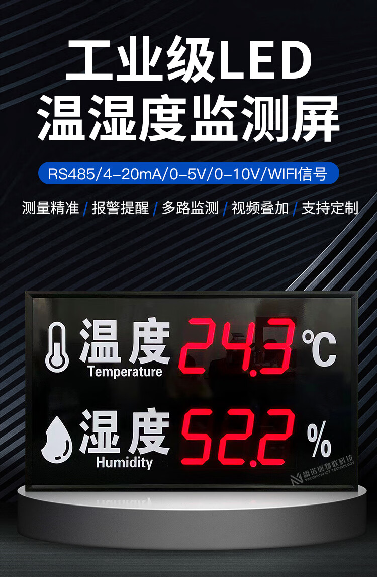 Industrial temperature and humidity meter alarm electronic signage indoor 485LED display high-precision recorder customized 30*20CM air temperature and humidity