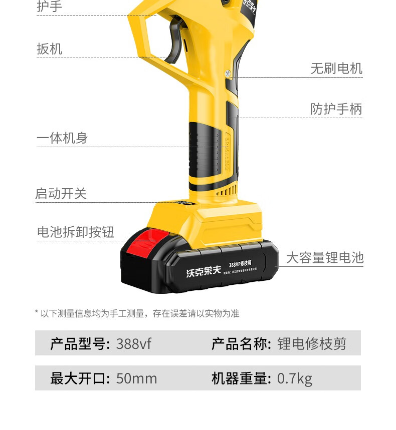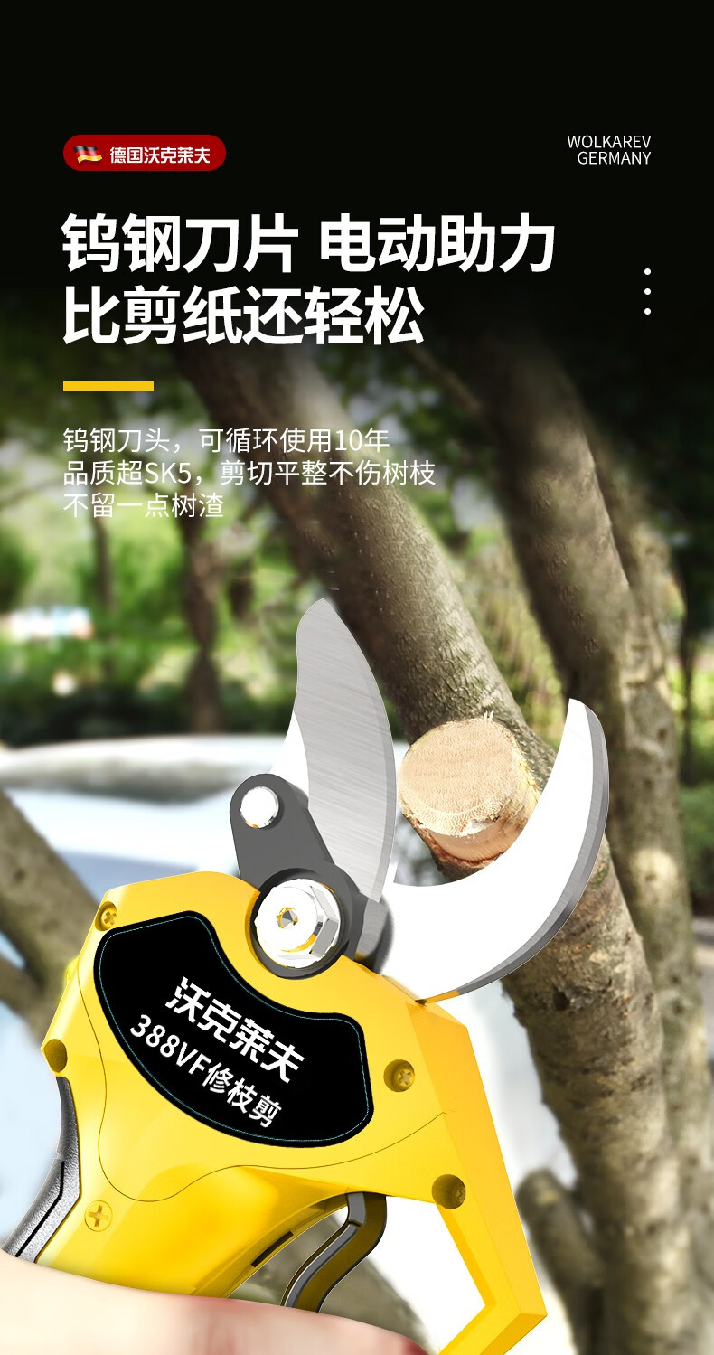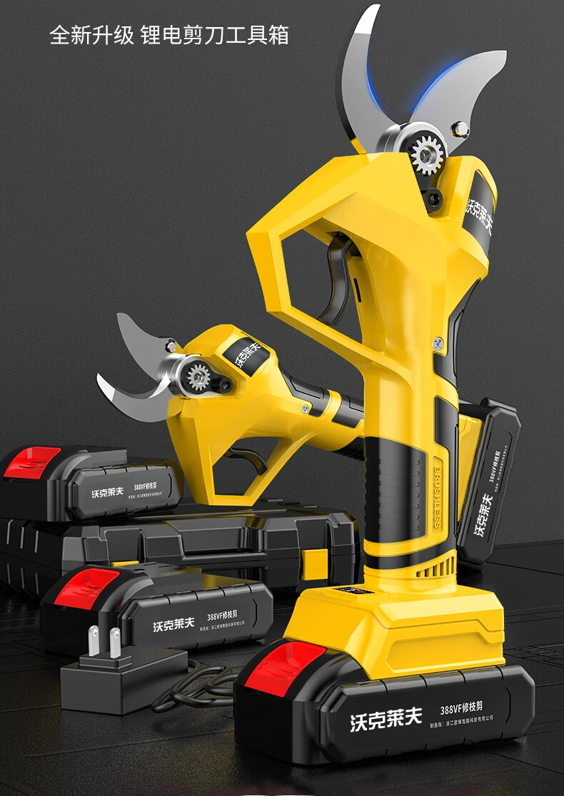 Walkerlive's new brushless gardening lithium-ion rechargeable electric scissors tool box for cutting branches, garden pruning, electric agricultural tools, brushless model, dual battery + blade, about 5cm opening