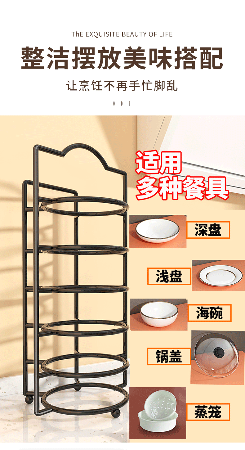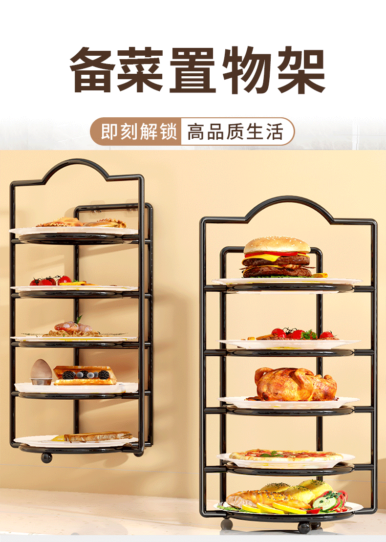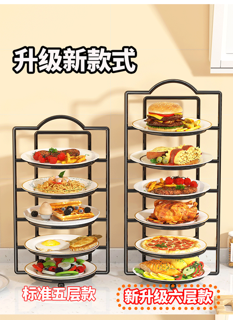 All racks, trays, leftovers, plates, storage racks, side dish preparation, storage racks, dish racks, hot pot kitchen shelves, multi-functional multi-layer white six-layer