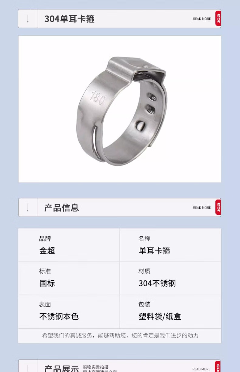 Jinchao 304 stainless steel single-ear stepless clamp strong clamp pipe clamp water pipe clamp fastening hose clamp oil pipe buckle 5.3-6.5mm (10 pieces)