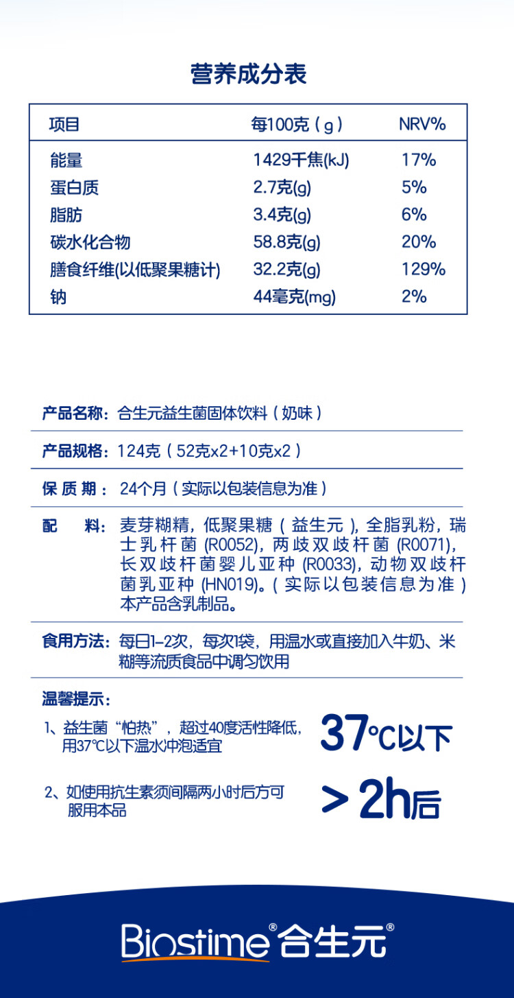 Probiotic solid drink 124g (2g*26 bags*2+2g*5 bags*2) 124g*1 box