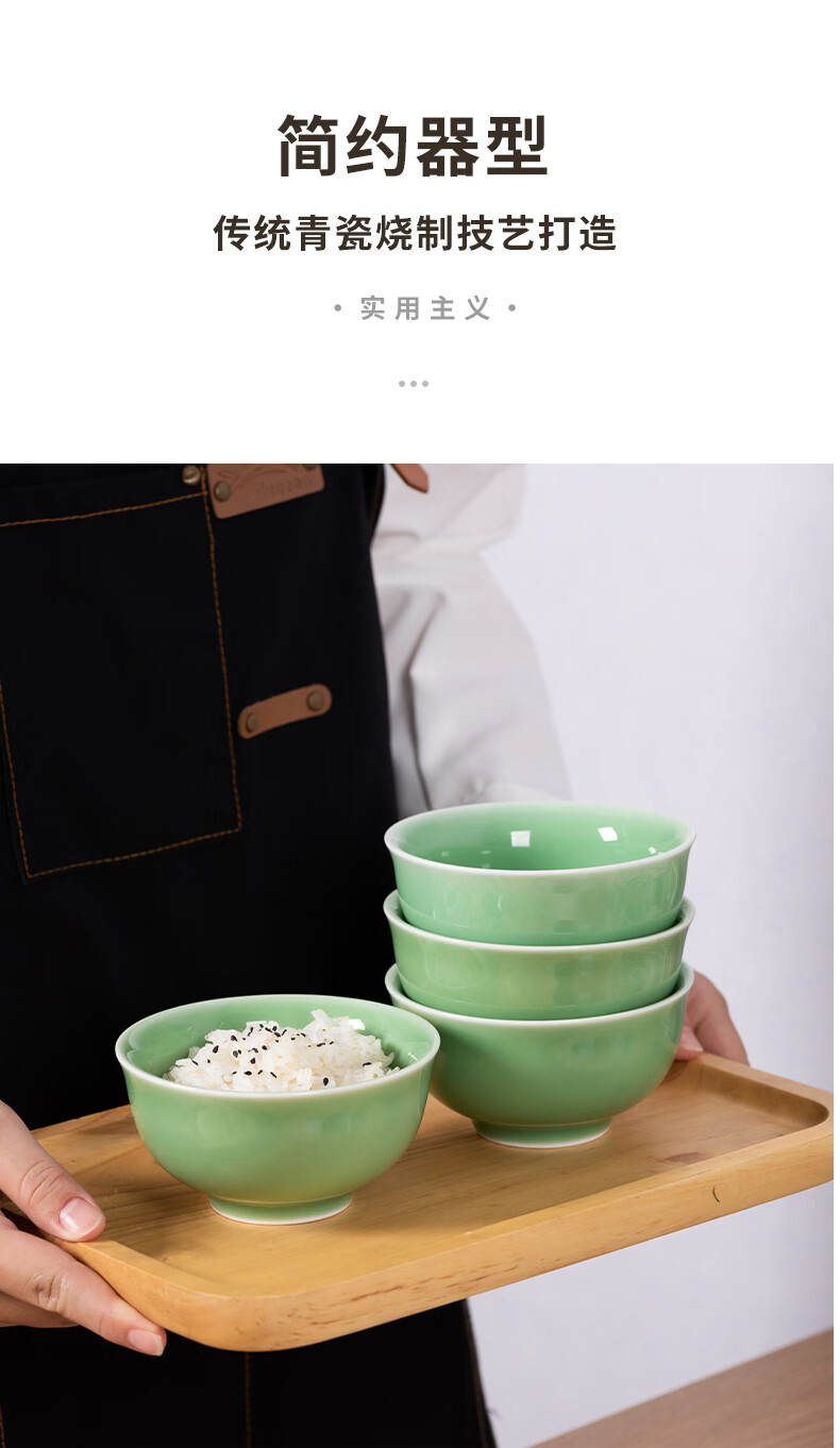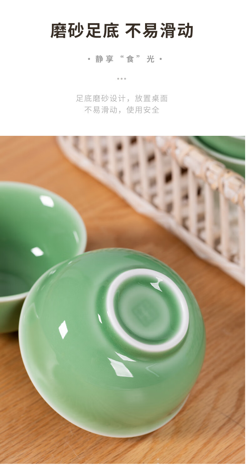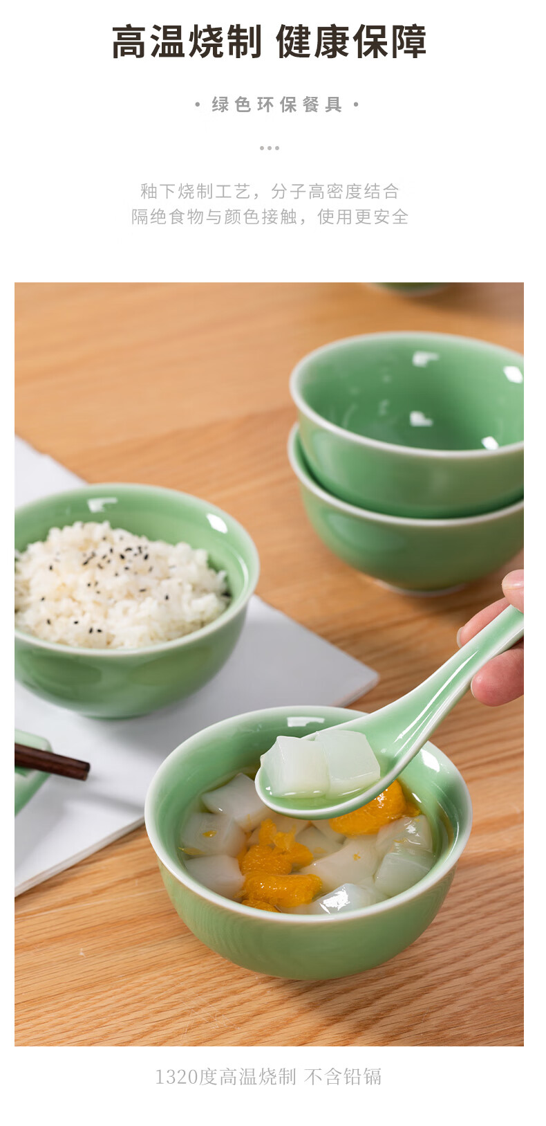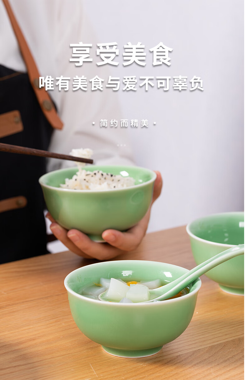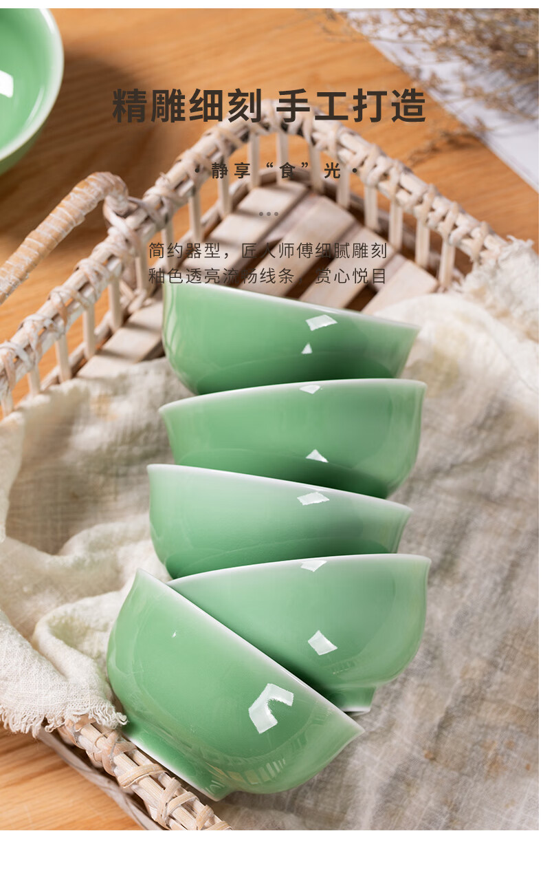 Longquan celadon rice bowl ceramic new creative Chinese tableware household thickened eating bowl large noodle soup bowl porridge bowl small bowl 5.5-inch plum green bowl