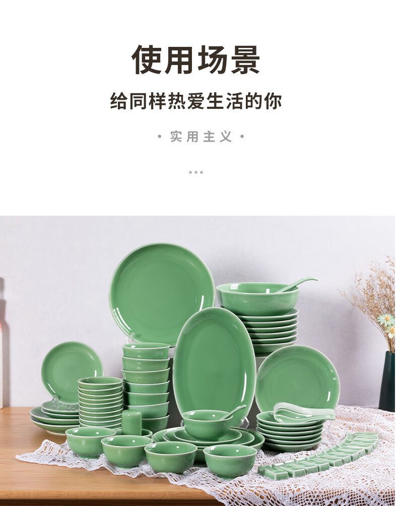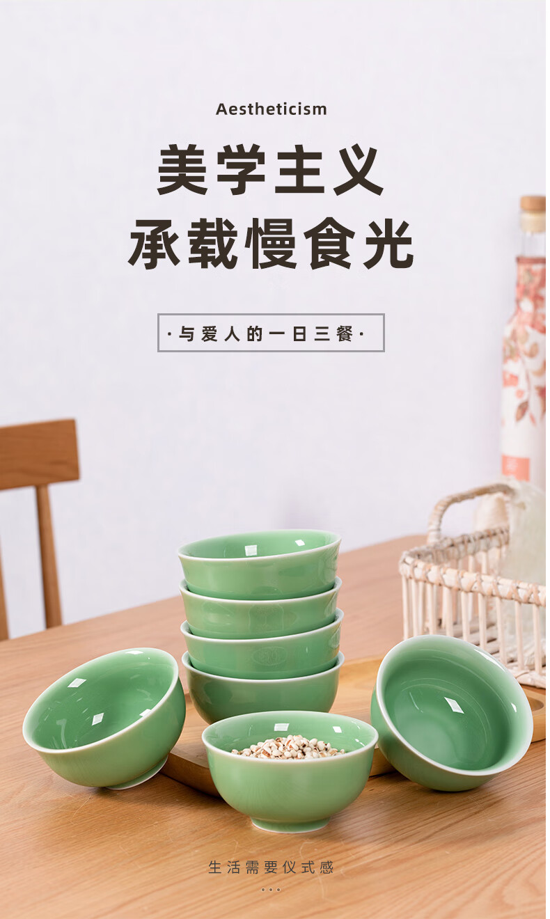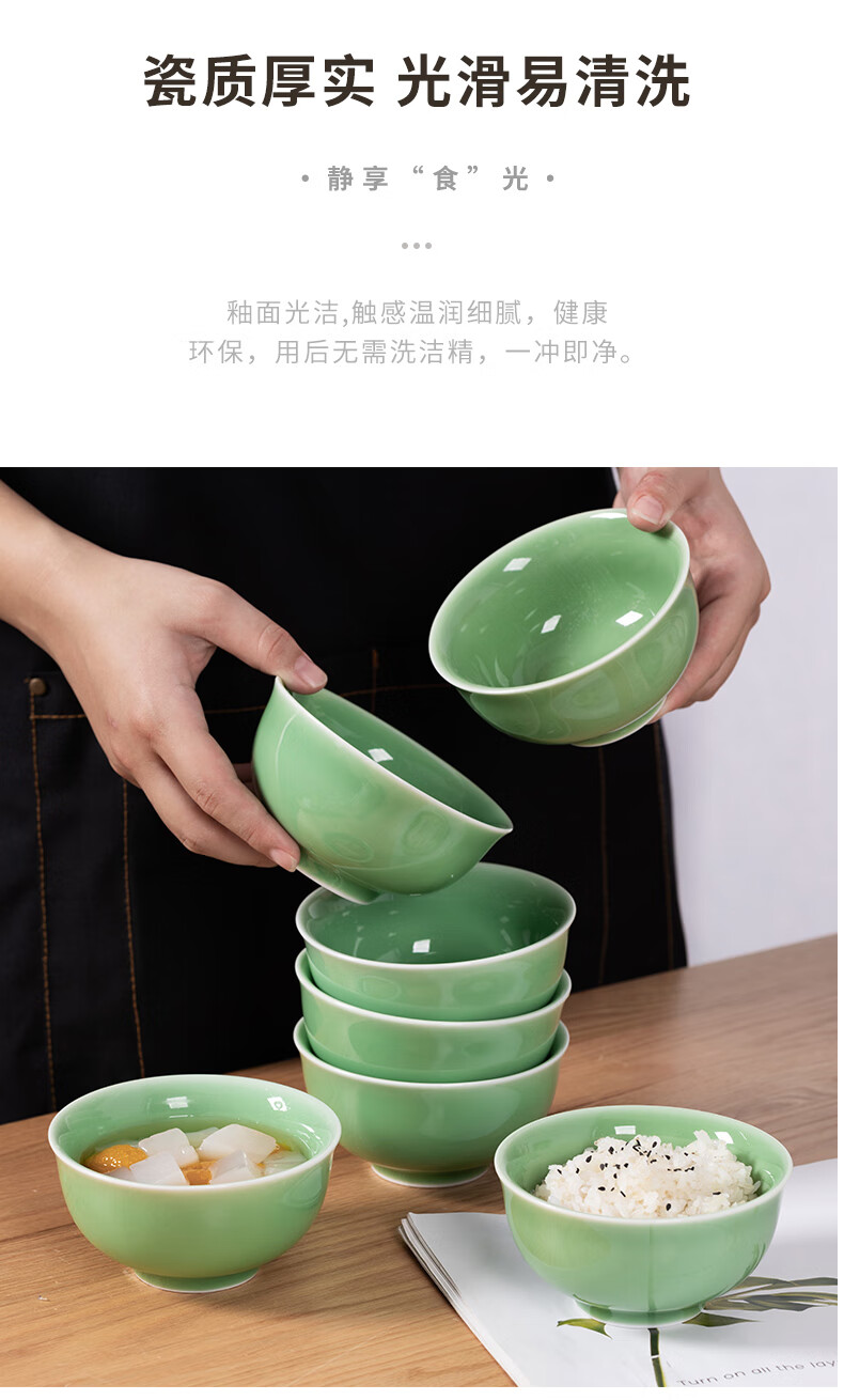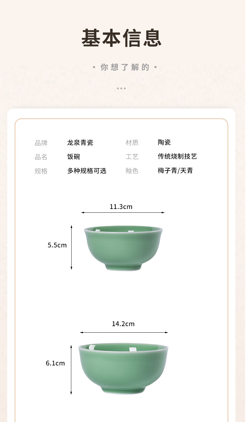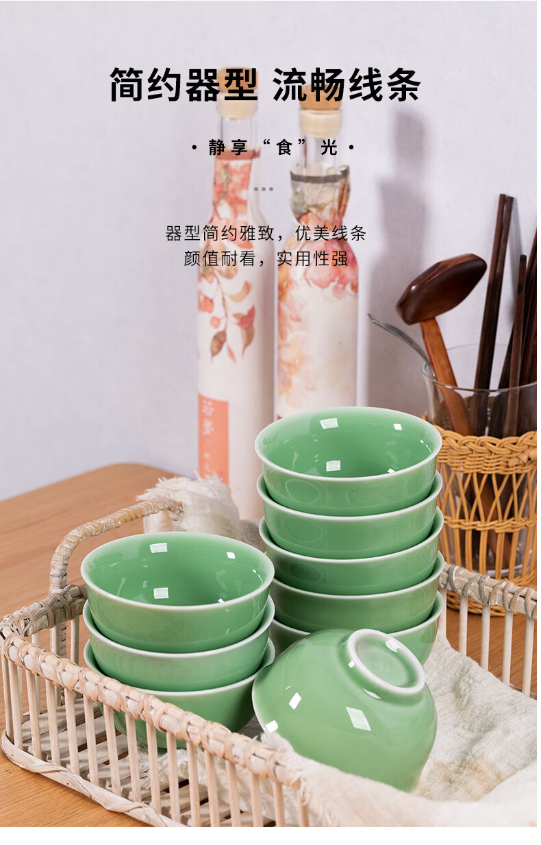 Longquan celadon rice bowl ceramic new creative Chinese tableware household thickened eating bowl large noodle soup bowl porridge bowl small bowl 5.5-inch plum green bowl