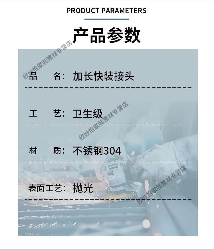 Lingjian Extended Quick Connector Stainless Steel 304/316L Sanitary Quick Connect Chuck End Clamp Joint Automatic Welding 204*Wall Thickness 3*Length 50mm Chuck 217 304