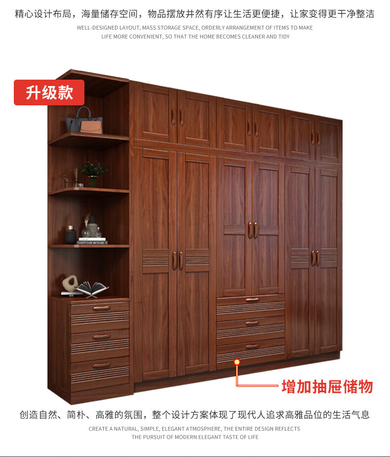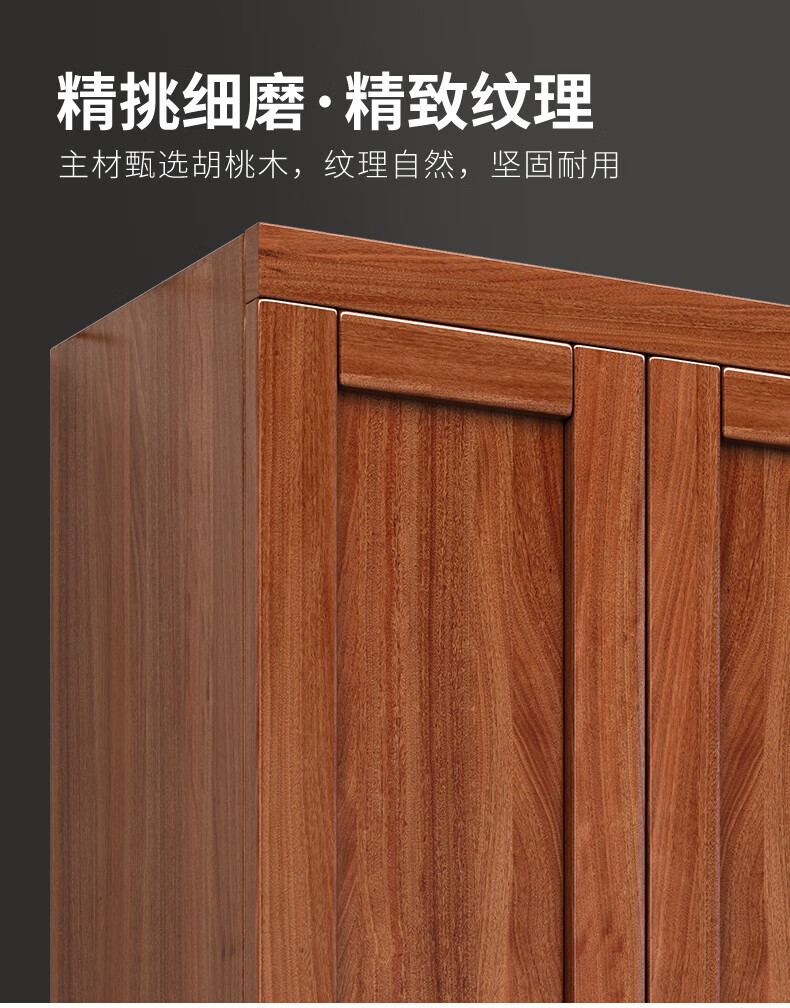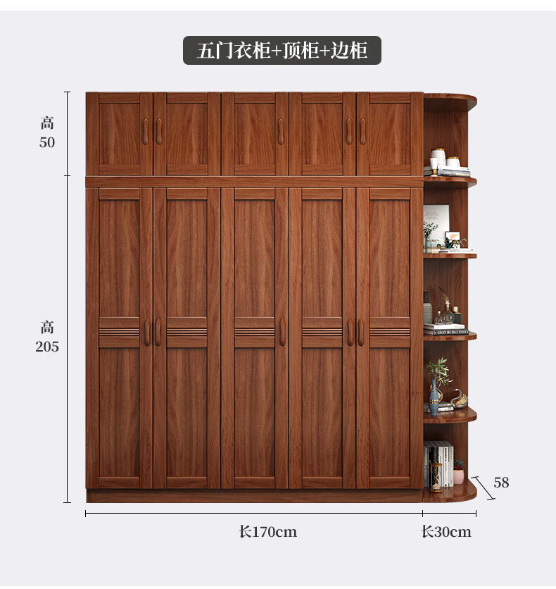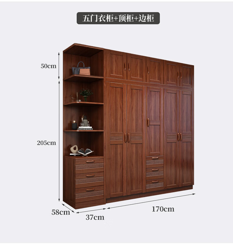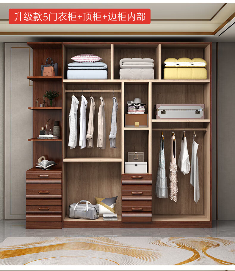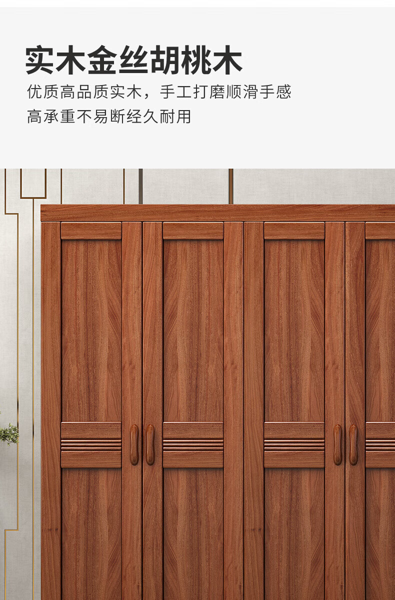 Millennium Shengshi Solid Wood Wardrobe Golden Wire Walnut Wardrobe Bedroom Cabinet Modern Chinese Wardrobe Corner Storage Cabinet Bedroom Furniture Five Doors + Top Cabinet Standard Model Does Not Exclude Center Drawer